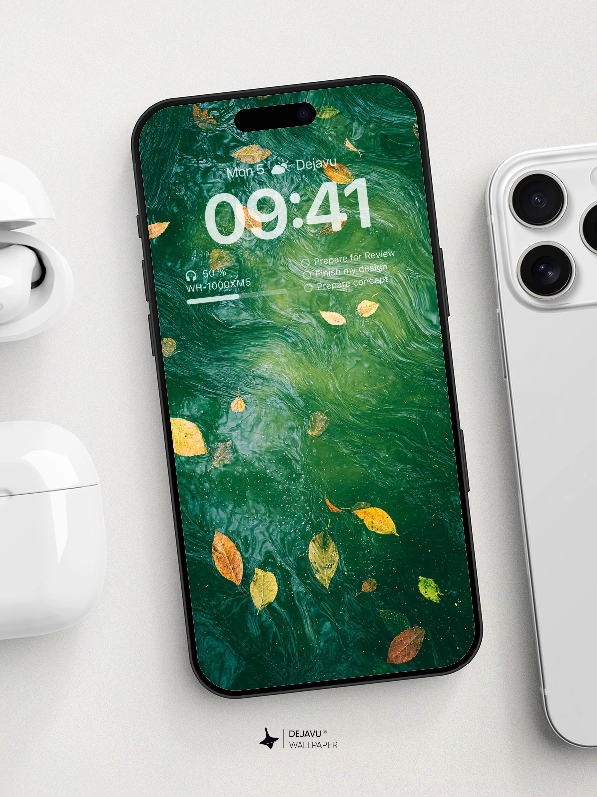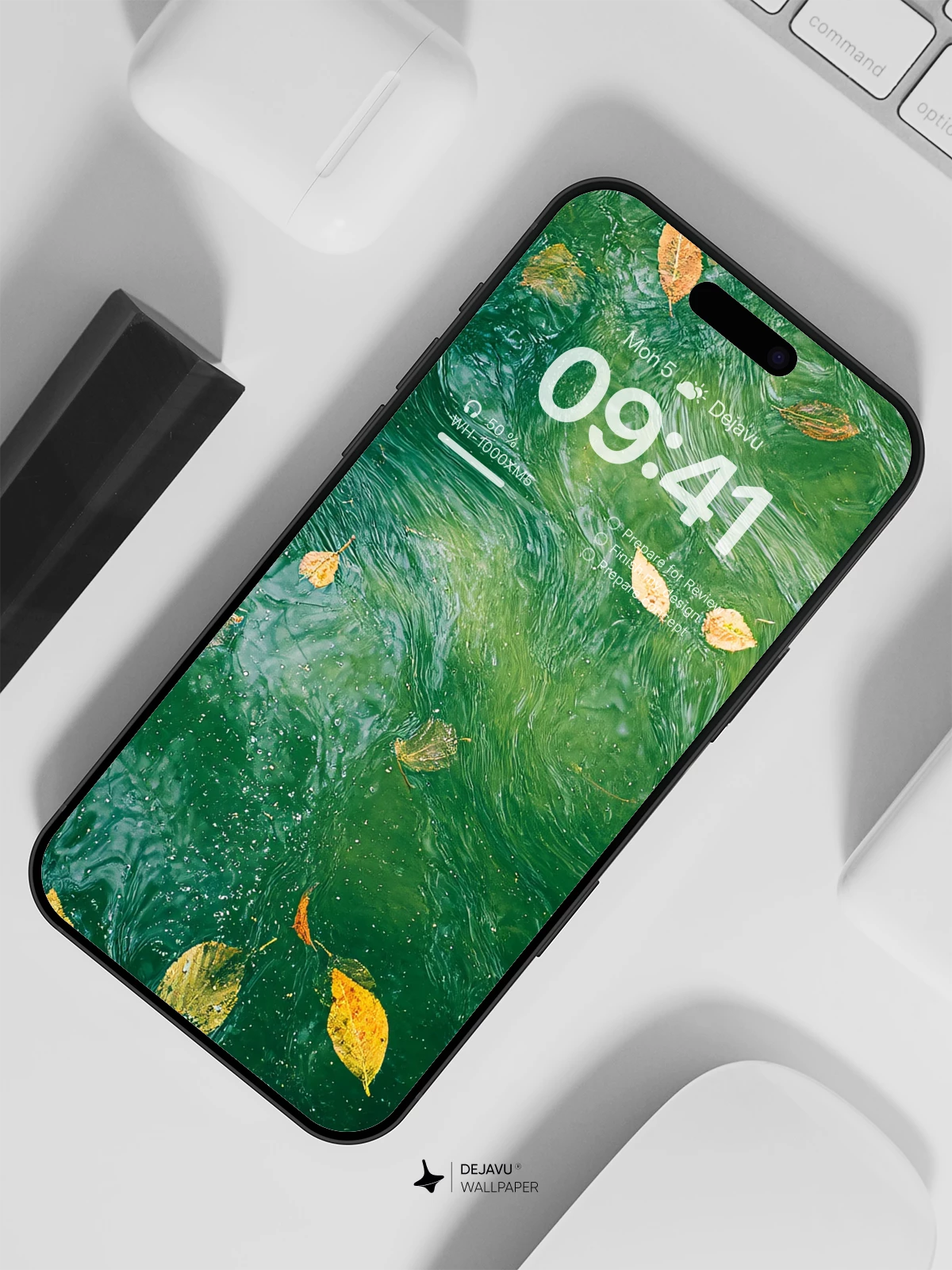 Experience the tranquil essence of nature with this Autumn Leaves On Rippling Water Wallpaper 8K. The image captures the gentle dance of golden and amber leaves on a vibrant, emerald-green water surface, evoking a sense of peace and timeless beauty. Ideal for enhancing the aesthetic of your iPhone or Android device, this wallpaper brings a touch of natural elegance to your screen. Whether you’re seeking inspiration from the quiet moments of fall or simply admiring the artistry of natural patterns, this design promises a visually soothing and stylish backdrop for all your devices, including tablets.