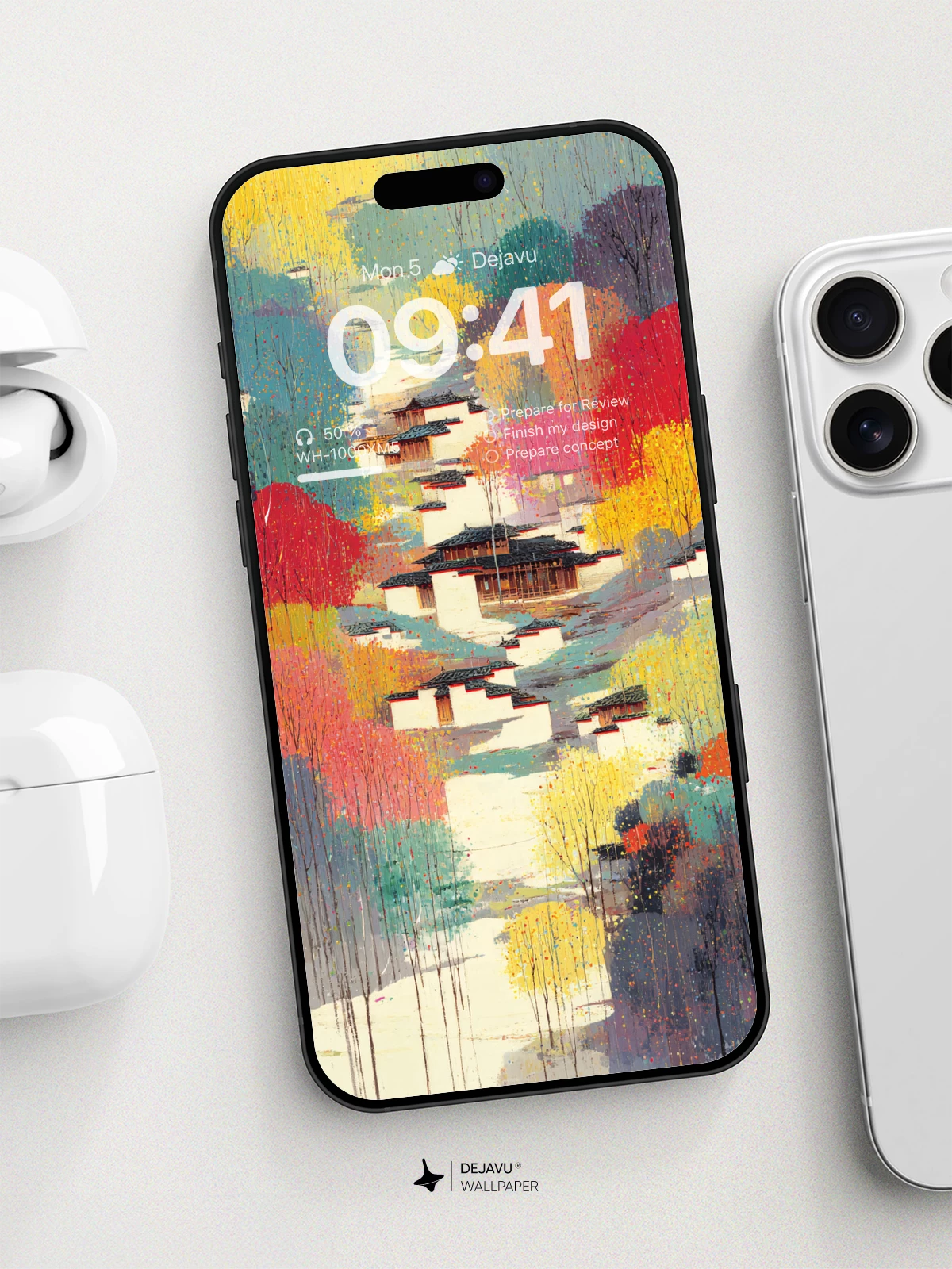 Experience the enchanting allure of an autumnal village fantasy, where vivid hues of red, orange, and yellow paint a serene landscape. This 8K wallpaper, ideal for iPhone and Android devices, captures the timeless beauty of traditional architecture nestled among colorful trees. Inspired by the poetic essence of nature, the design evokes a sense of calm and wonder, making it a perfect backdrop for any screen. Whether you’re seeking inspiration or simply admiring artistry, this wallpaper transforms your device into a portal to a mystical world.