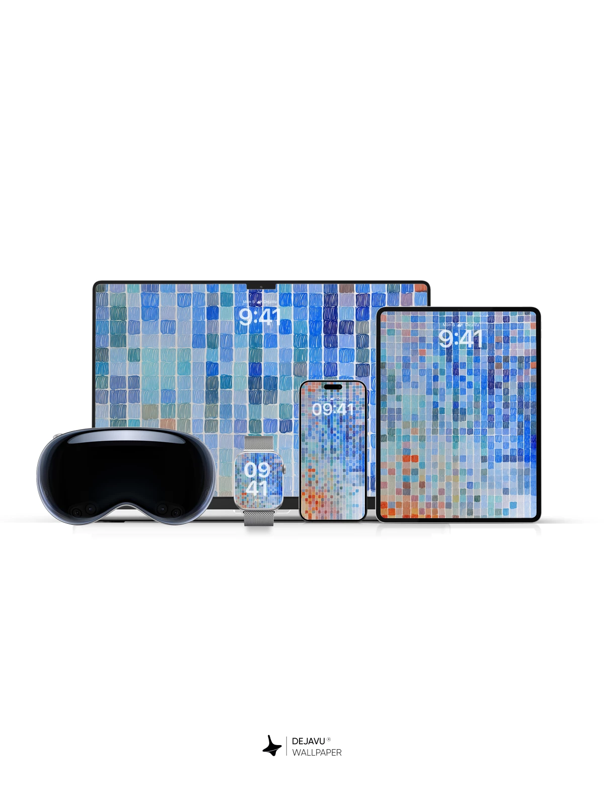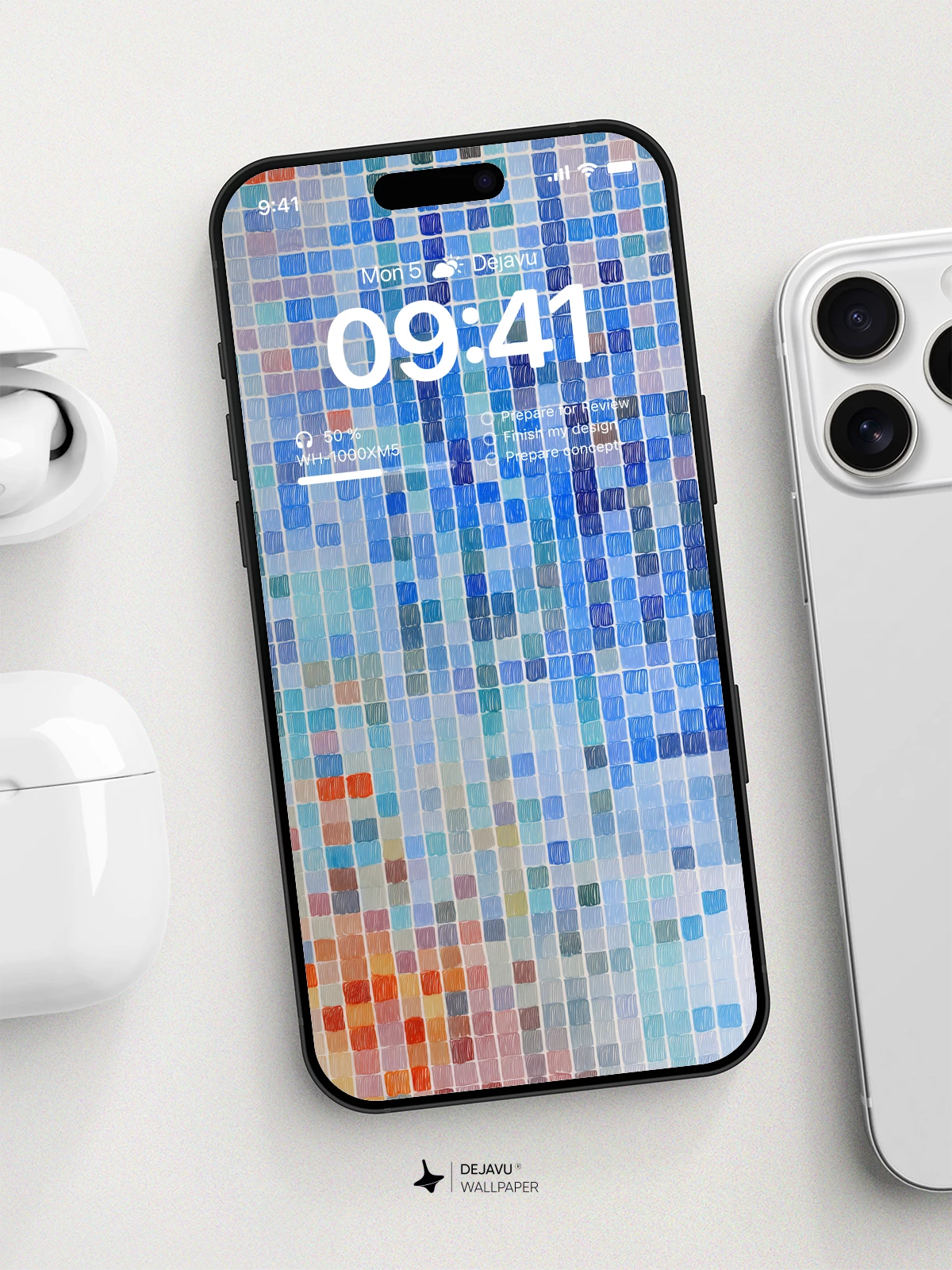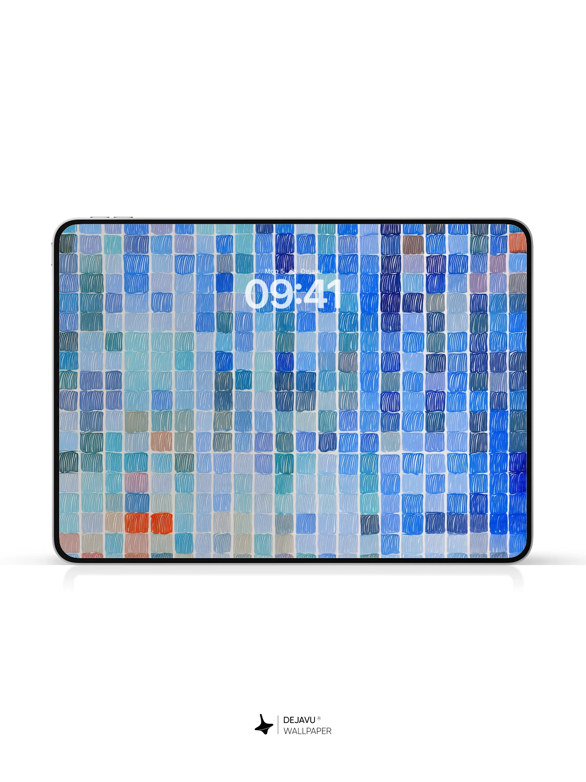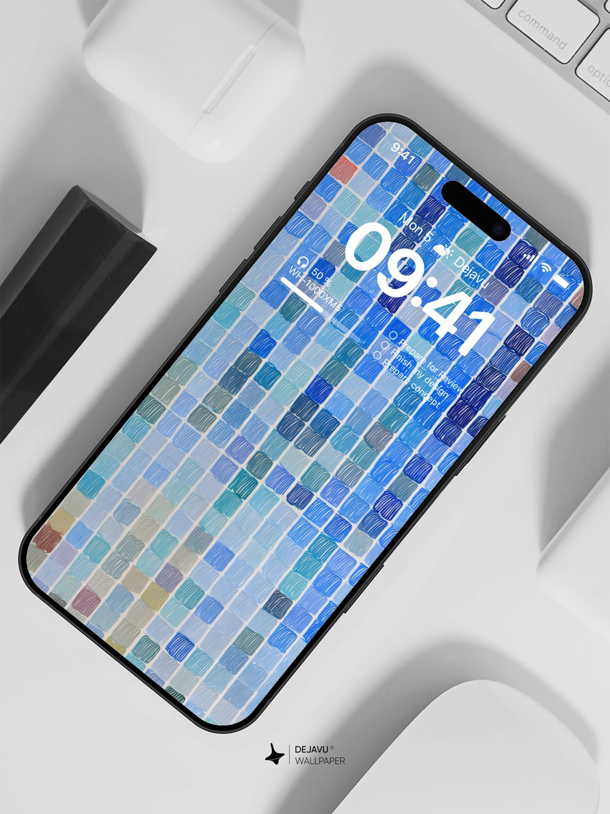 This 8K wallpaper features a captivating mosaic design with a grid of blue tiles, creating a visually appealing and modern aesthetic. The varying shades of blue add depth and texture, making it an ideal choice for enhancing the look of your iPhone, Android, or tablet screen.