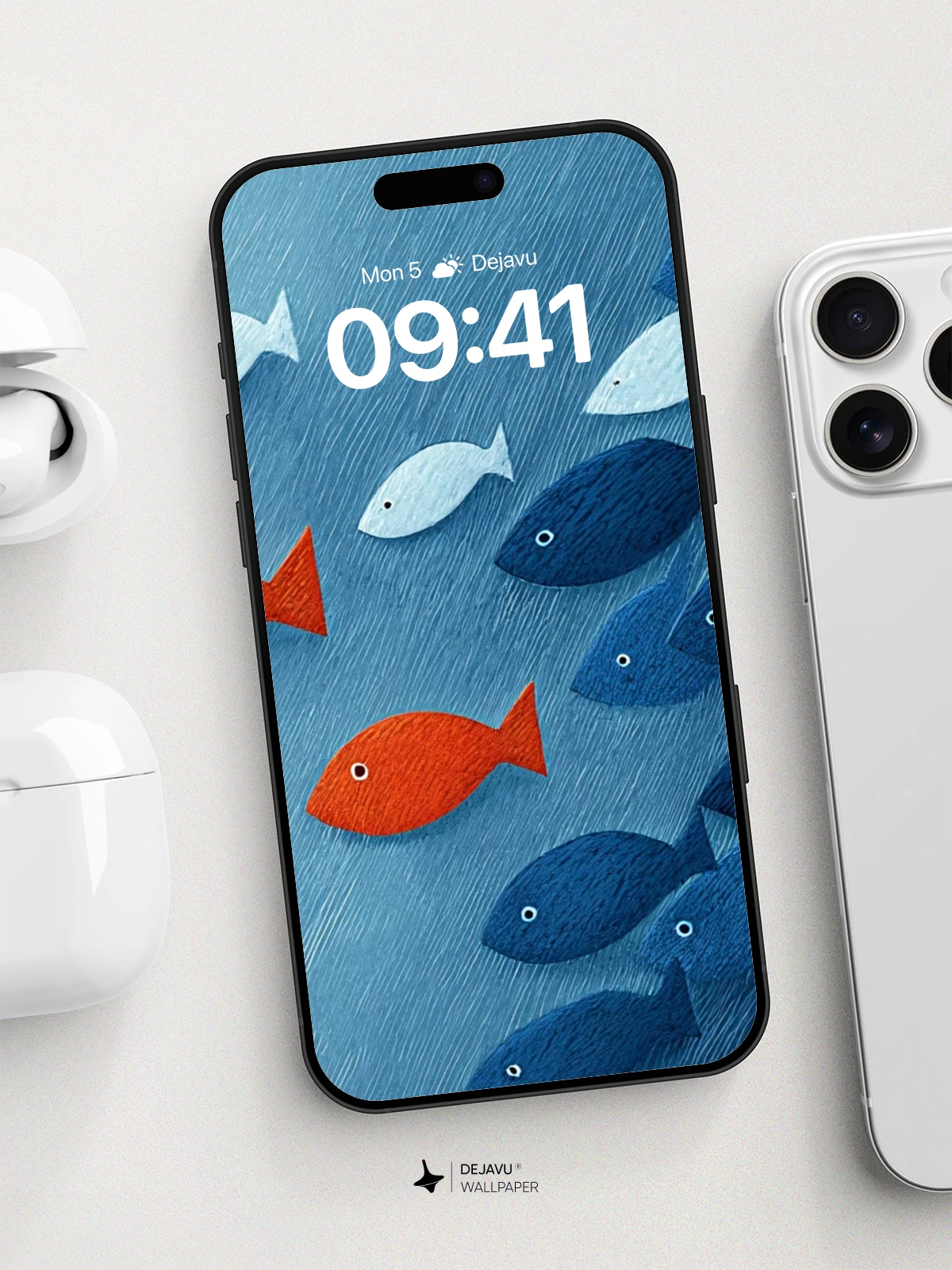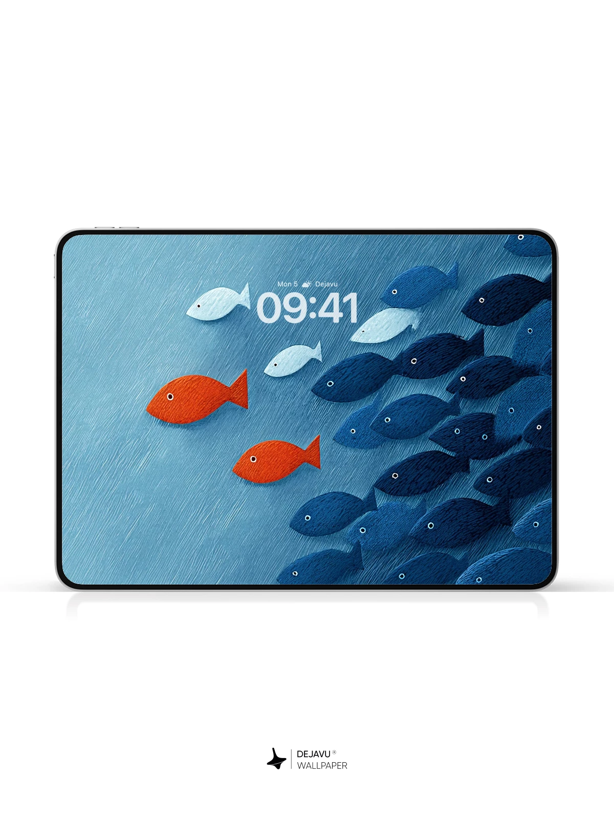 In this visually compelling 8K wallpaper, two vibrant orange fish swim defiantly against a tightly knit school of dark blue fish, symbolizing individuality and courage. The clean, graphic style evokes modern minimalism with emotional depth, making it ideal for iPhone, Android, or tablet screens. Its high-resolution detail and bold color contrast create a powerful statement piece that stands out on any mobile device.