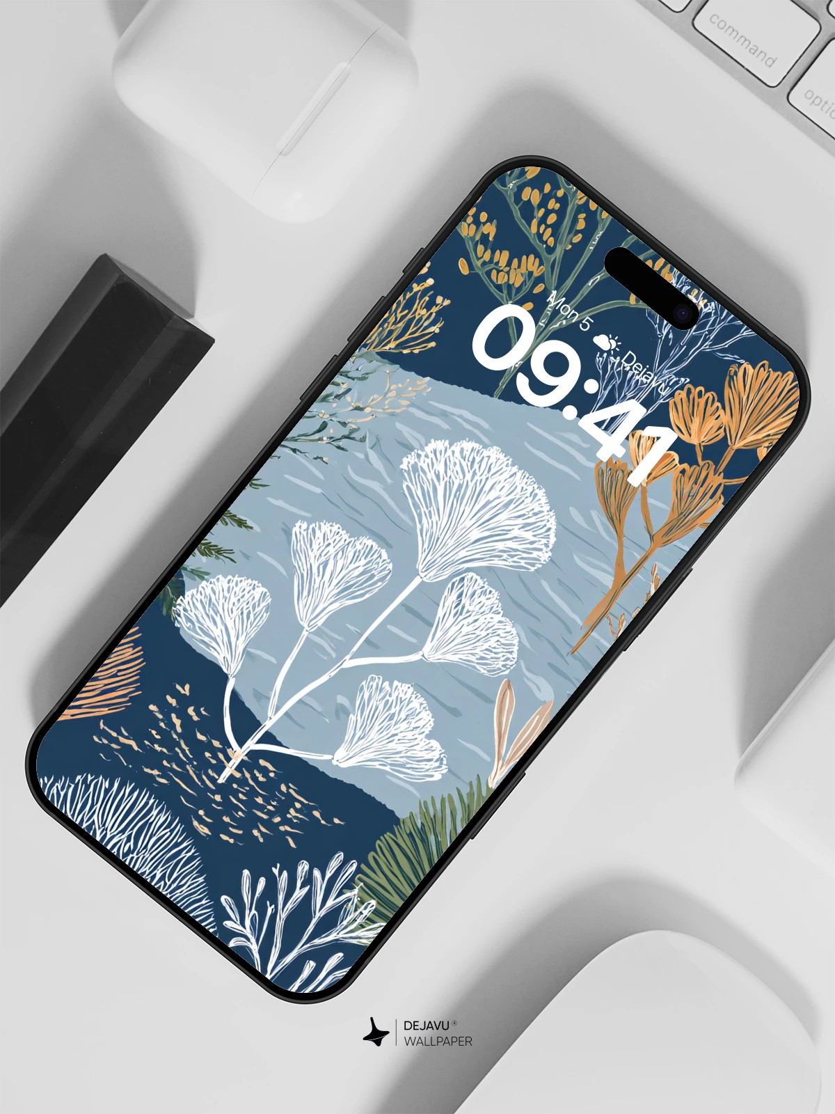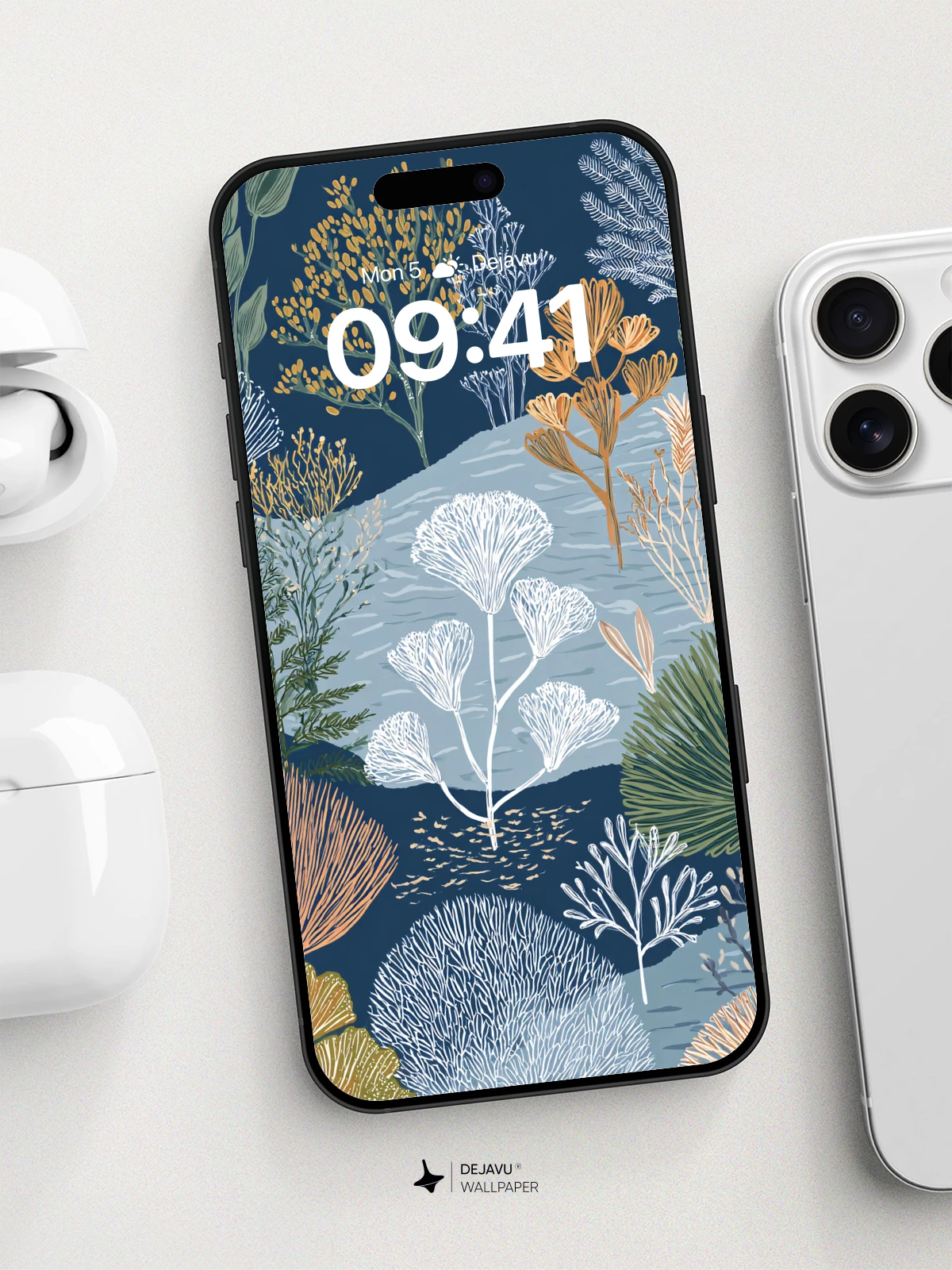 This enchanting botanical dreamscape blends delicate plant forms in soothing hues of navy, sage, and golden amber, evoking the quiet beauty of a twilight garden. Inspired by naturalistic illustration styles, the artwork features stylized ferns, dandelion-like blooms, and textured foliage that create depth and rhythm across the composition. Ideal as an 8K wallpaper for iPhone, Android, or tablet screens, it brings a calming, earthy elegance to your digital environment—perfect for those who cherish nature’s subtle artistry in everyday life.