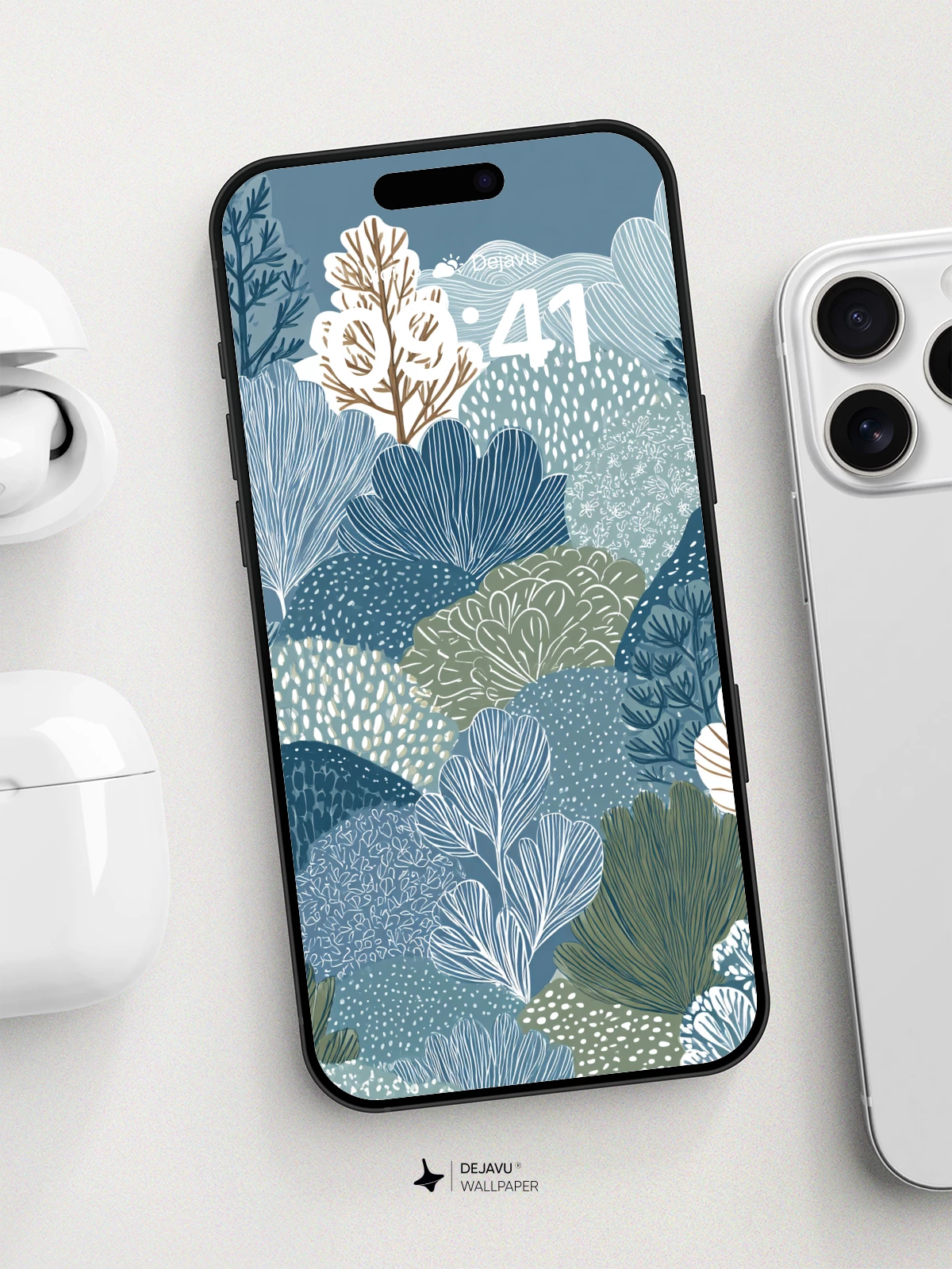 This tranquil botanical dreamscape merges stylized trees, layered ferns, and textured hills in a harmonious blend of indigo, sage, and cream tones. Inspired by modern illustrative design, it evokes a quiet woodland retreat, ideal for calming your digital space. With its intricate details and painterly textures, this 8K wallpaper enhances any iPhone, Android, or tablet screen, bringing the serenity of nature into your daily routine.
