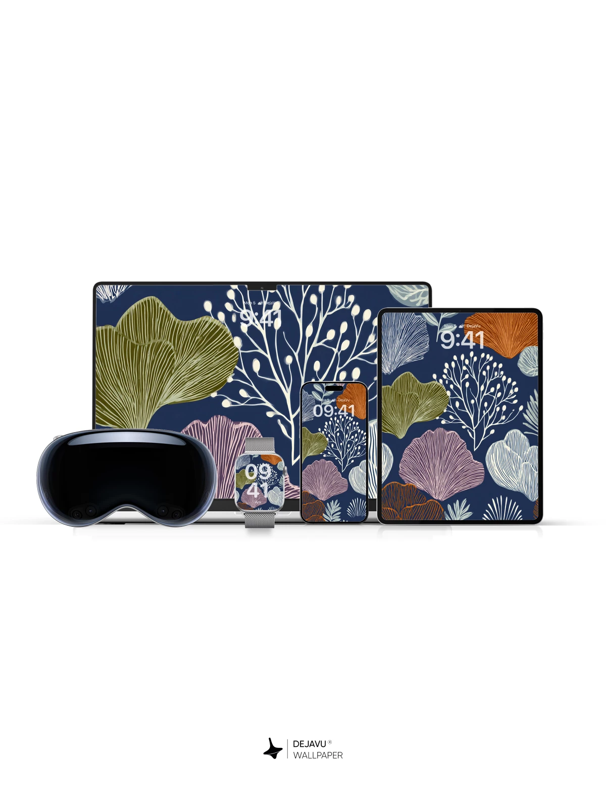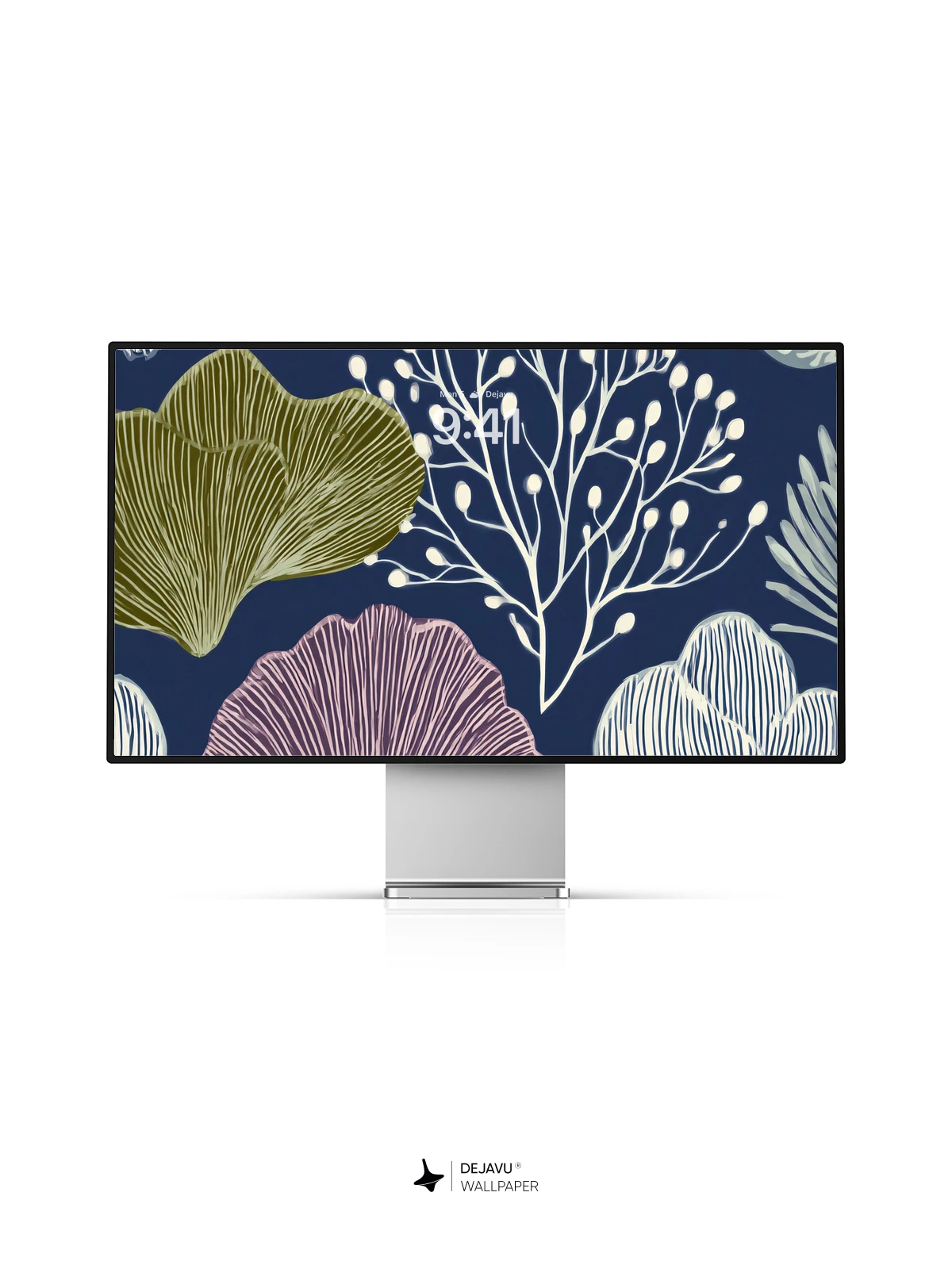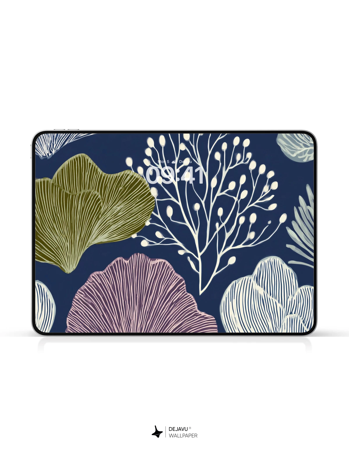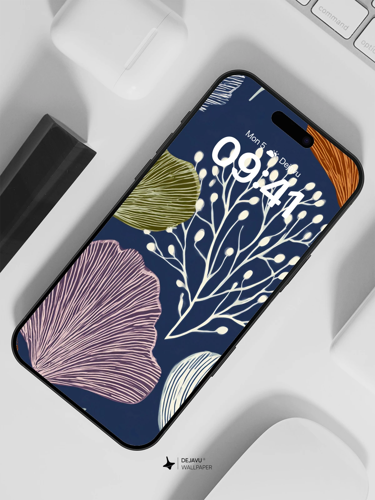 This beautifully crafted botanical wallpaper brings nature’s elegance to your device with intricate leaf designs and soft color contrasts against a rich navy backdrop. Inspired by hand-drawn linocut artistry, the pattern blends earthy tones and minimalist details for a serene, timeless aesthetic. Ideal for iPhone, Android, and tablets, it enhances your screen with a touch of natural sophistication and creative design.