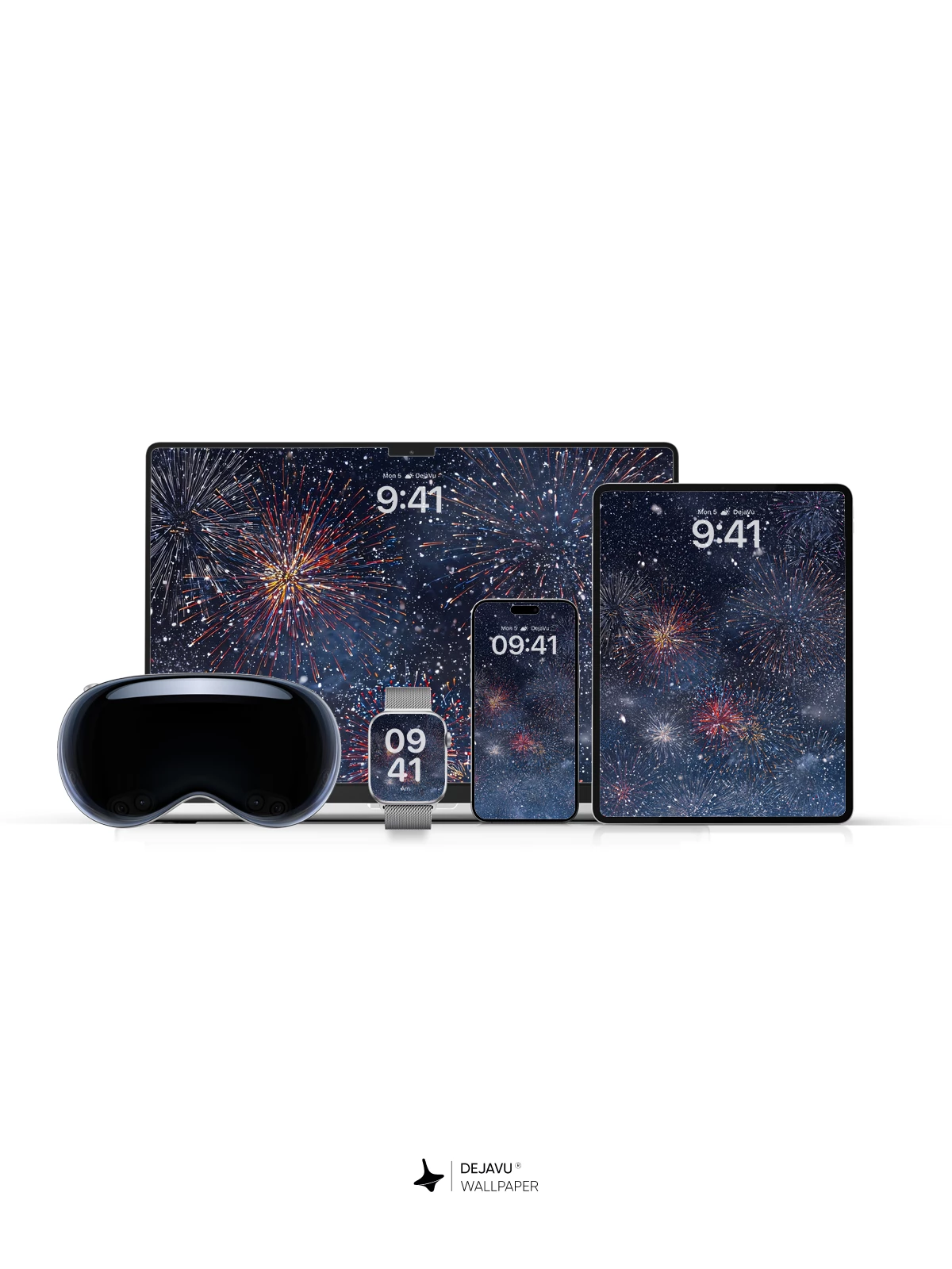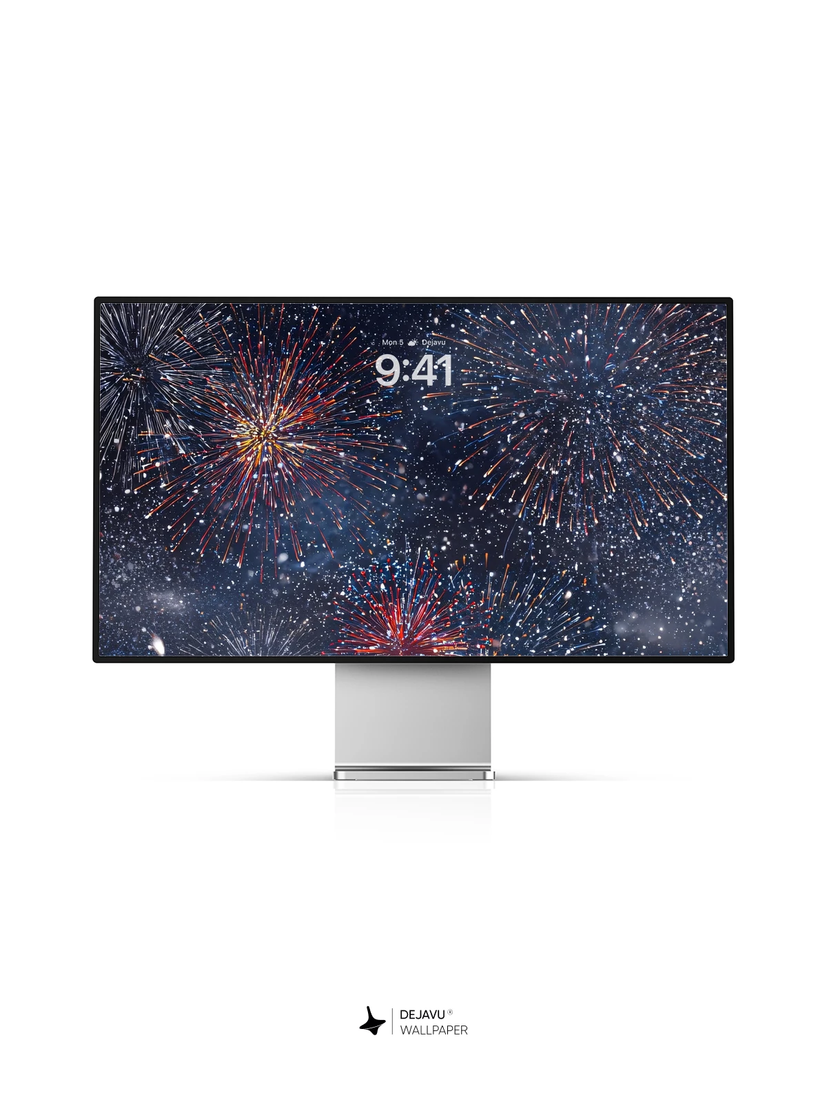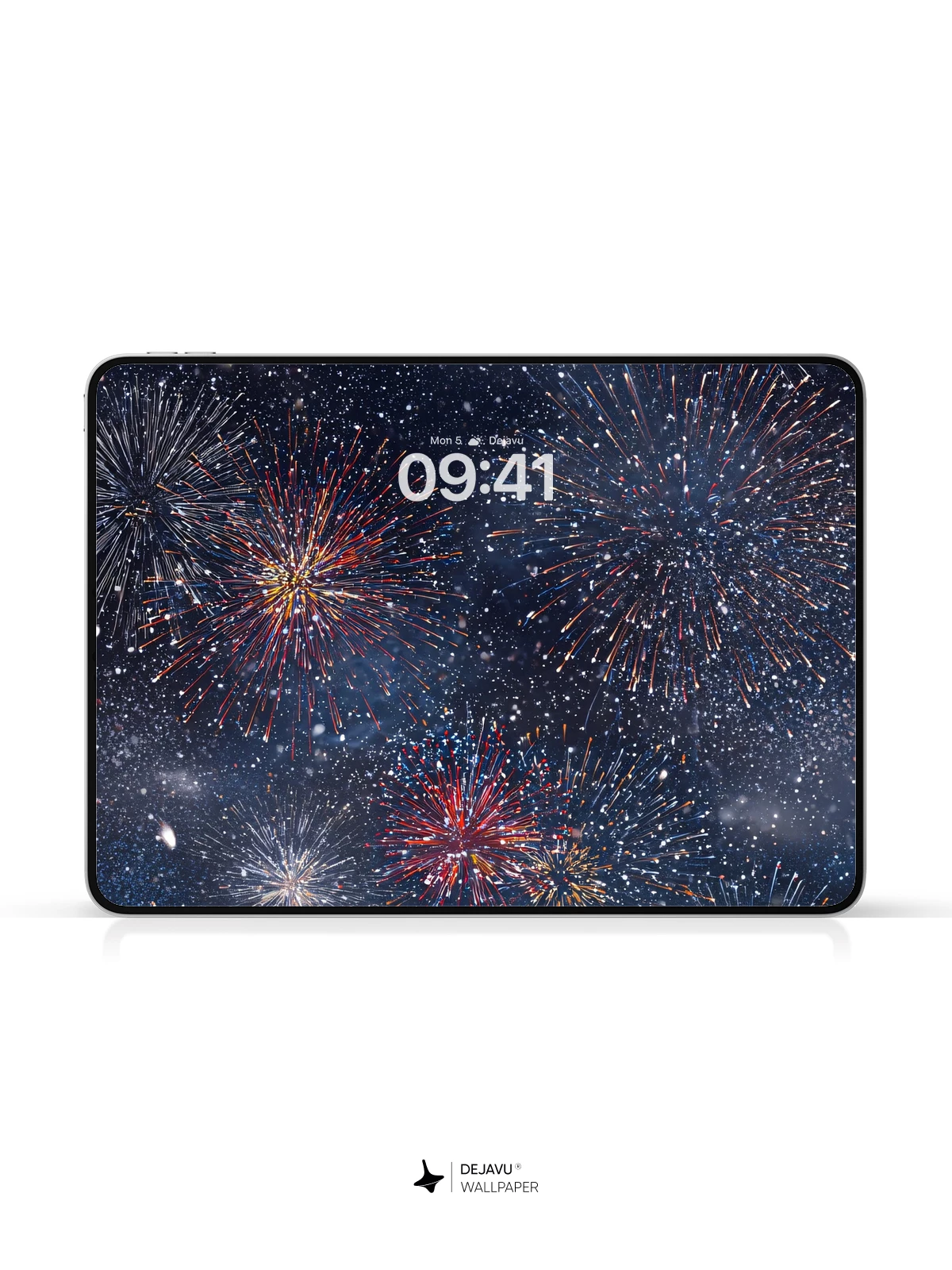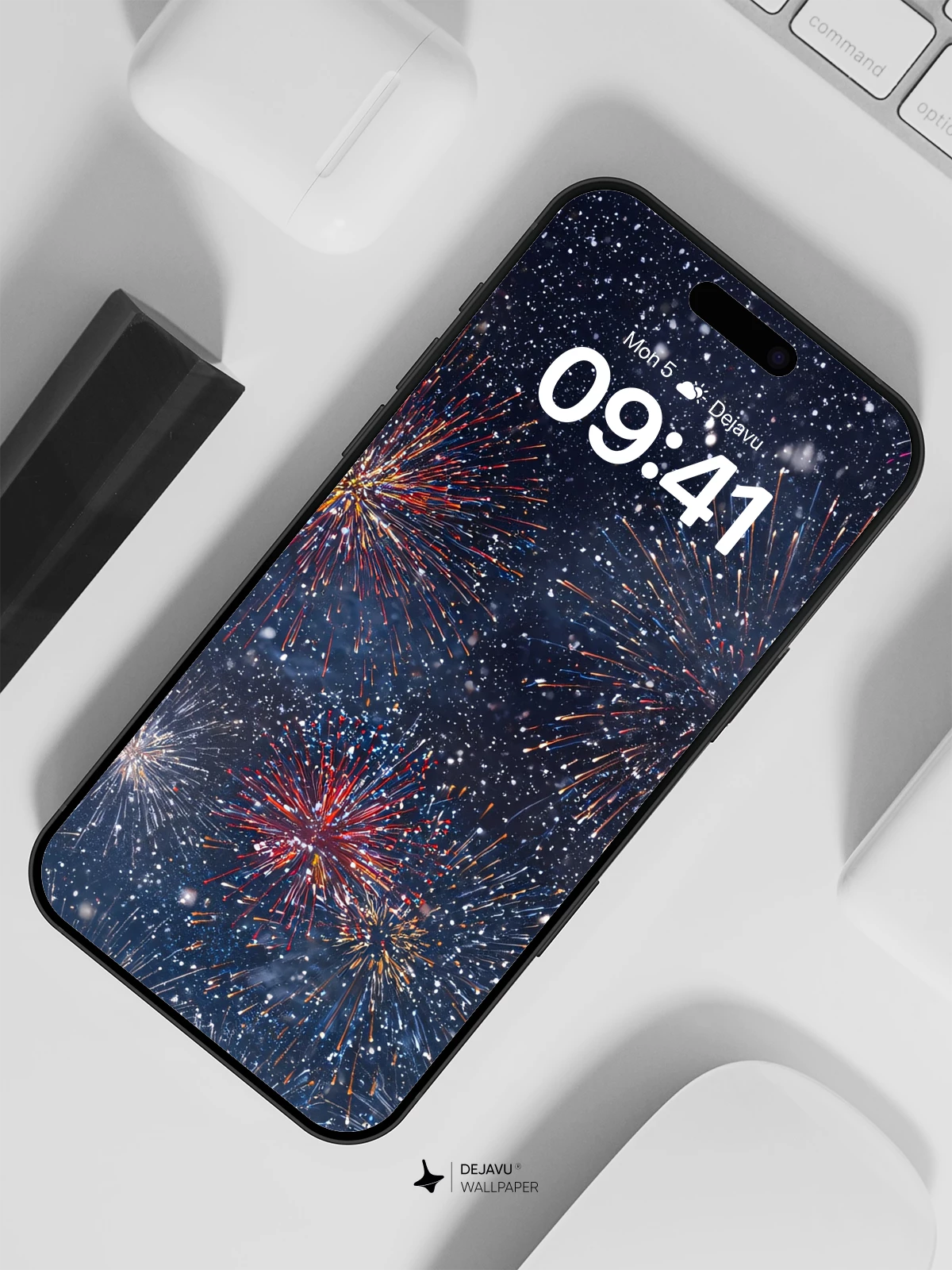 This breathtaking 8K wallpaper captures a magical moment where colorful fireworks explode across a starry night sky, intertwined with gentle snowfall. The vivid display of reds, golds, and blues creates a dreamlike celebration under the cosmos, evoking joy and wonder. Ideal for iPhone, Android, and tablets, this high-resolution design transforms any device into a canvas of celestial festivity. Perfect for holiday seasons or anyone who loves dynamic, emotive visuals.