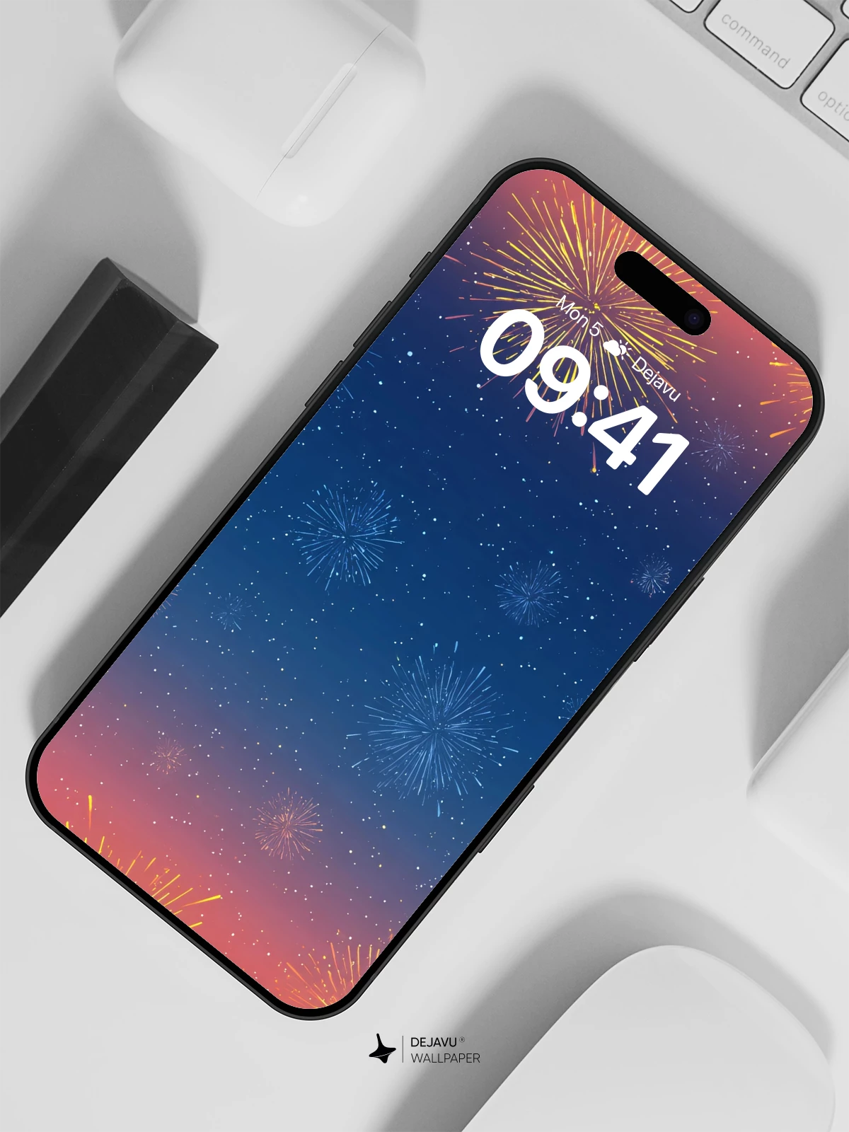 This mesmerizing 8K wallpaper captures the dazzling beauty of fireworks exploding in a deep blue twilight sky, blending warm golds and cool blues in a celestial display. Inspired by dreamlike nightscapes, it evokes wonder and celebration, making it ideal for iPhone, Android, and tablet screens. The intricate sparkles and radiant bursts create a dynamic yet serene atmosphere, perfect for elevating your mobile device’s aesthetic with a touch of cosmic magic.