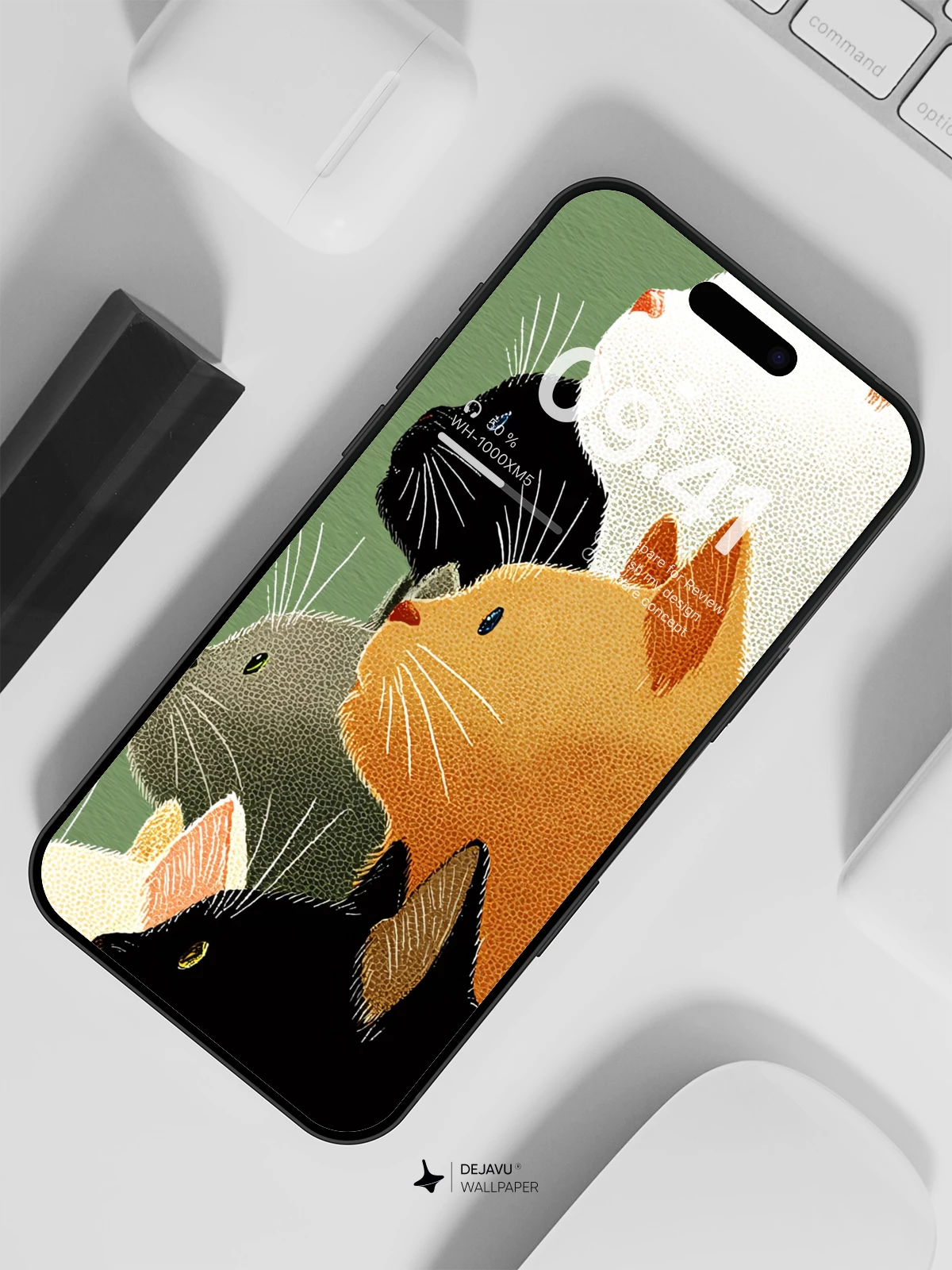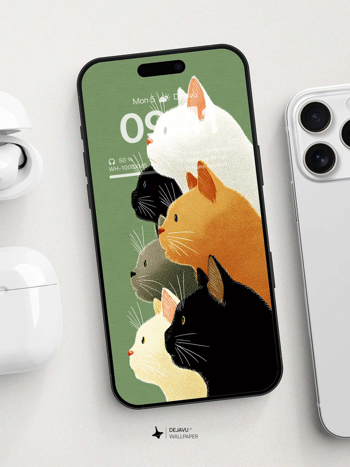 This captivating 8K wallpaper features a delightful lineup of cats in various soft hues, each with a unique charm that brings warmth and joy to any screen. The minimalist yet expressive design, inspired by modern illustration techniques, makes it a perfect fit for both iPhone and Android devices. Whether you’re looking to add a touch of whimsy to your mobile or tablet, this wallpaper’s clean lines and gentle colors evoke a sense of calm and companionship. Let these adorable felines brighten your digital space with their timeless appeal and playful spirit.