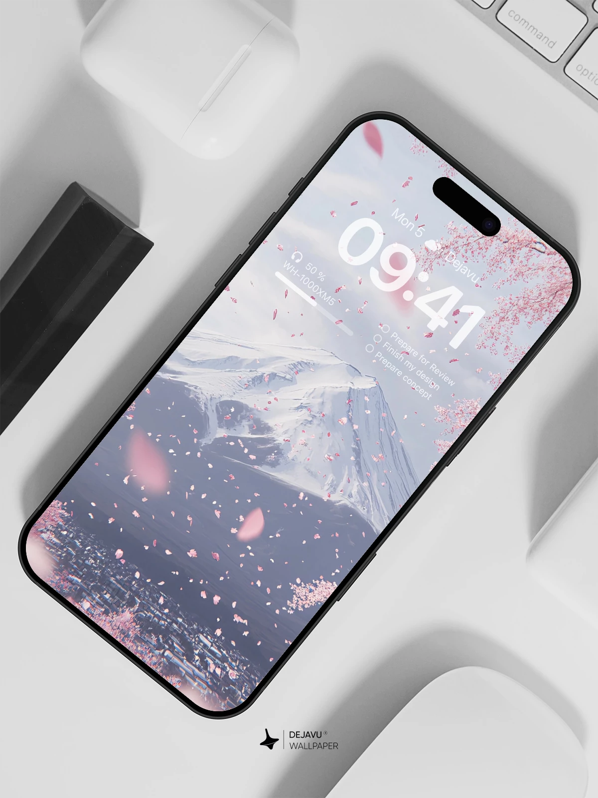 Immerse yourself in the tranquil elegance of Cherry Blossom Serenity Wallpaper 8K, where delicate pink petals frame the majestic Mount Fuji. This visually captivating design evokes a sense of timeless beauty and peace, ideal for enhancing the aesthetic of your iPhone or Android device. The harmonious blend of nature’s soft hues with the iconic mountain creates a serene atmosphere, making it a perfect choice for those who appreciate artistic and high-resolution wallpapers. Whether viewed on a phone, tablet, or any screen, this wallpaper promises to bring a touch of natural grace and calm into your daily life.