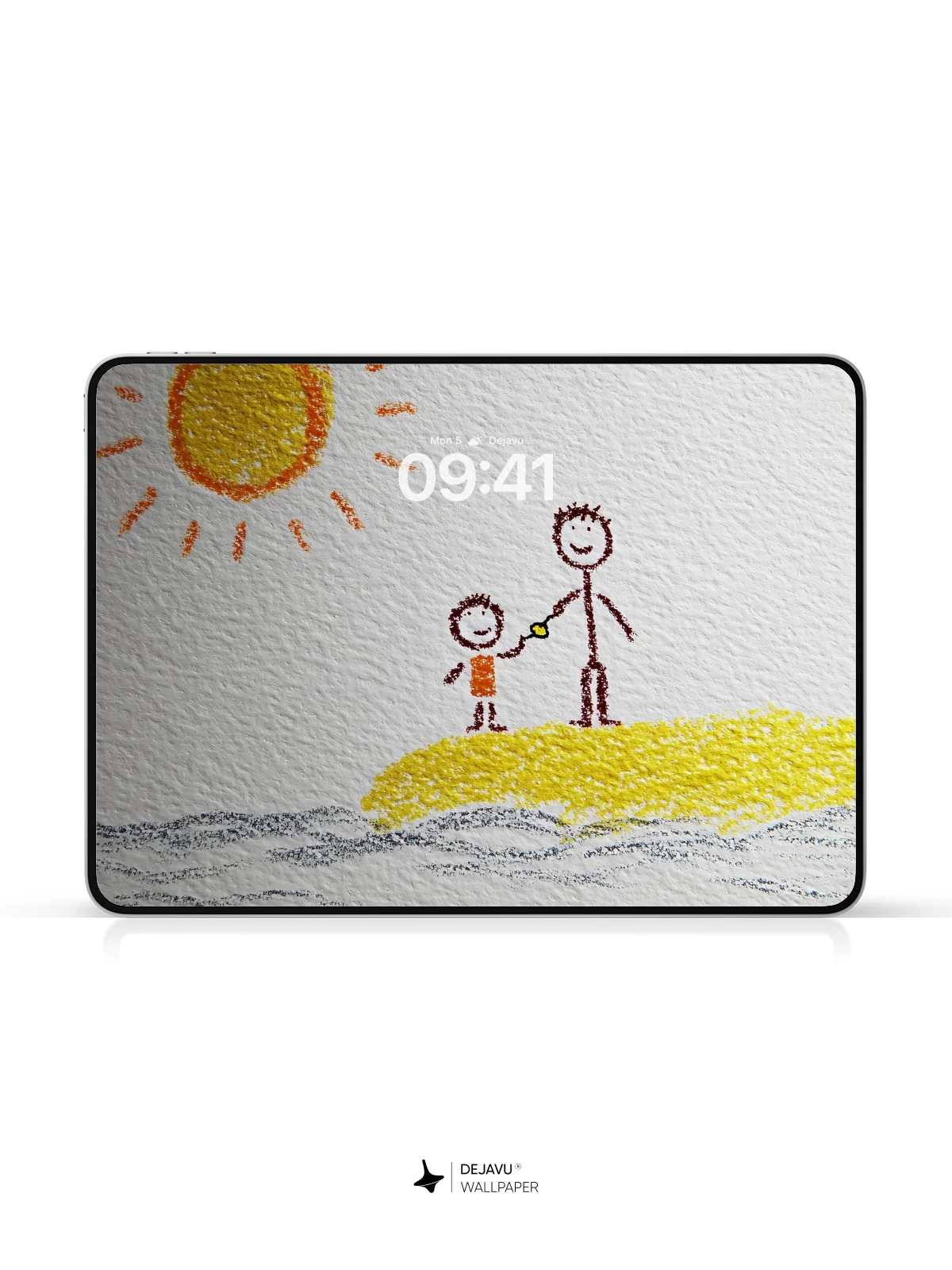 This tender, hand-drawn illustration captures a joyful moment between a parent and child on a sunlit beach, rendered in a nostalgic, childlike style. The bright yellow sun, soft waves, and cheerful figures evoke feelings of love, simplicity, and carefree summer days. Ideal as a calming and uplifting 8K wallpaper for iPhone, Android, or any mobile device, this artwork brings warmth and emotional resonance to your screen.