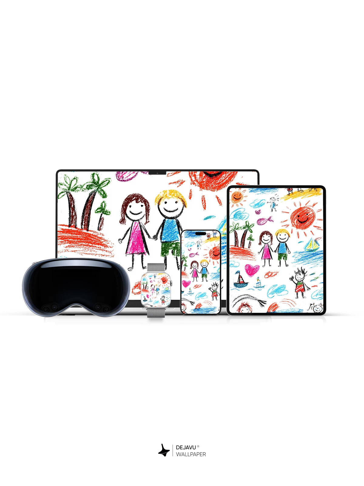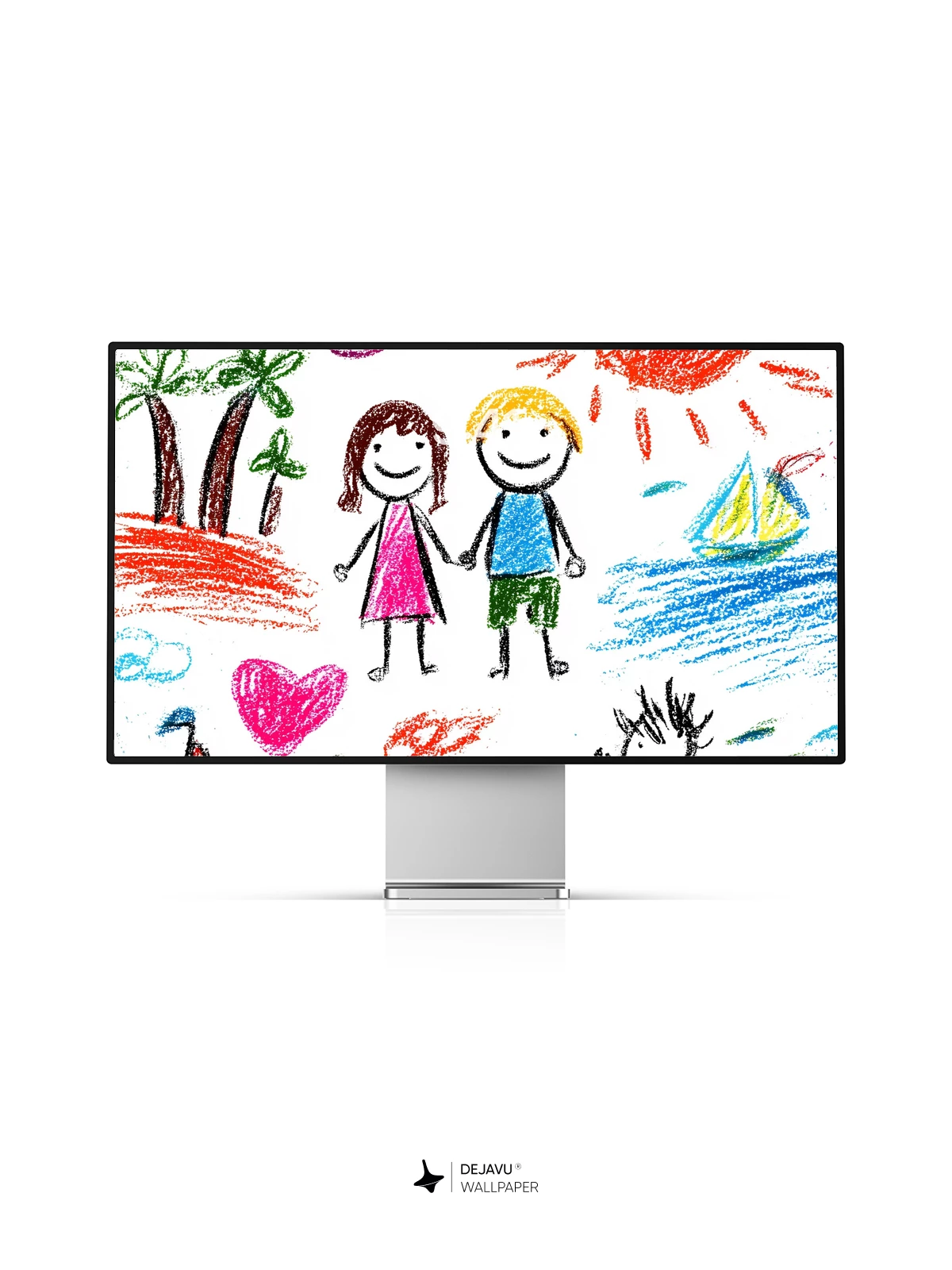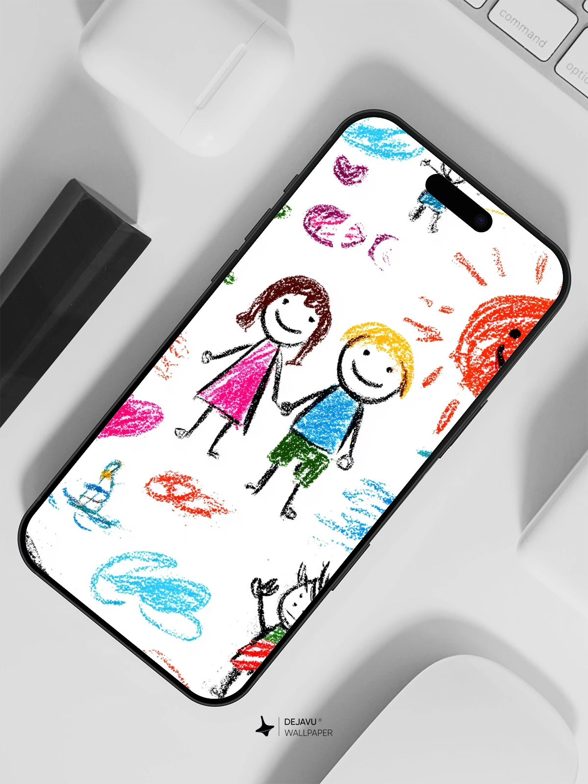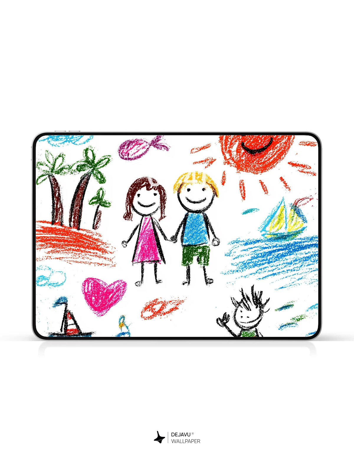 This cheerful, childlike illustration captures the magic of a sunny day at the beach, featuring stick-figure families, colorful boats, and radiant suns—all drawn with crayon-like charm. The vibrant palette and simple lines evoke pure joy and nostalgia, making it an ideal 8K wallpaper for iPhone, Android, or tablet screens. Inspired by the innocent creativity of children’s drawings, this design brings warmth and playfulness to any device, turning everyday tech into a canvas of happiness.