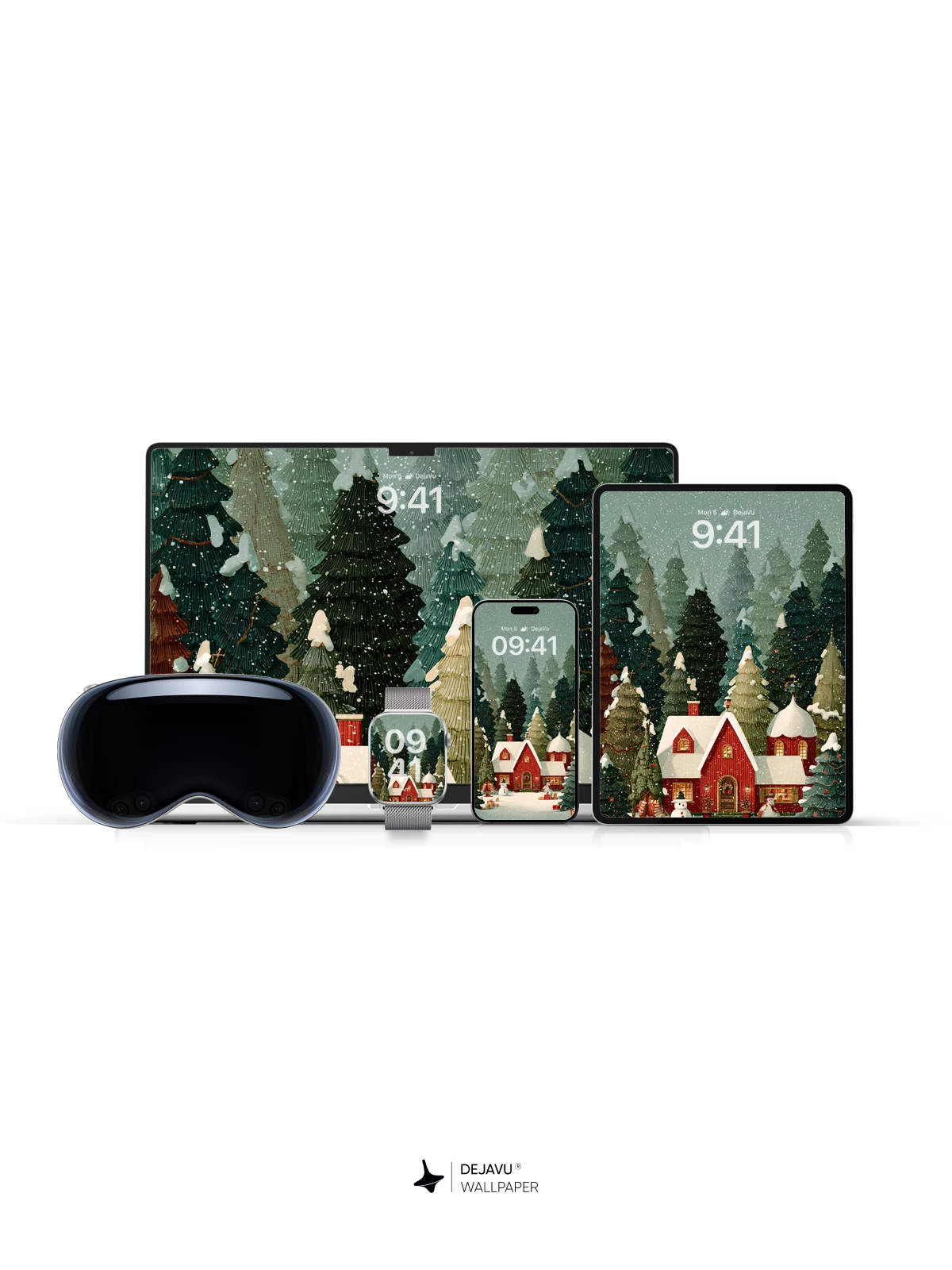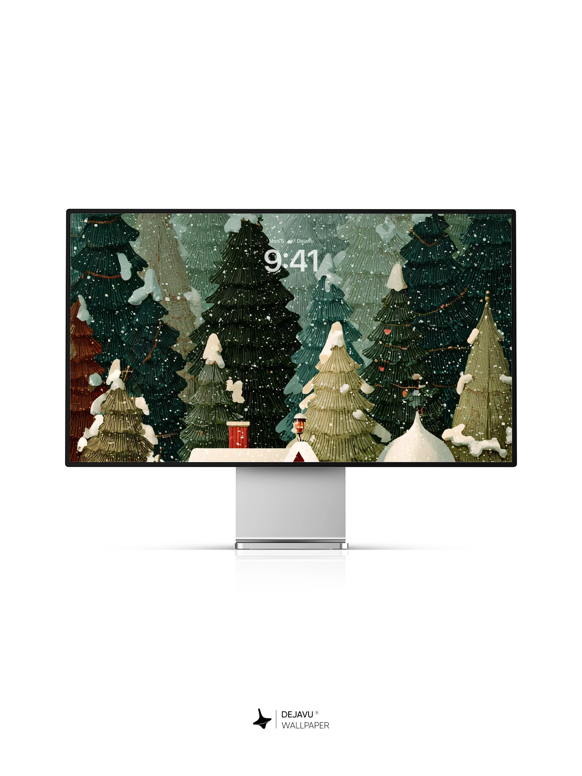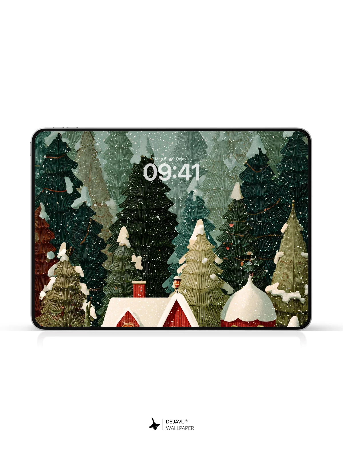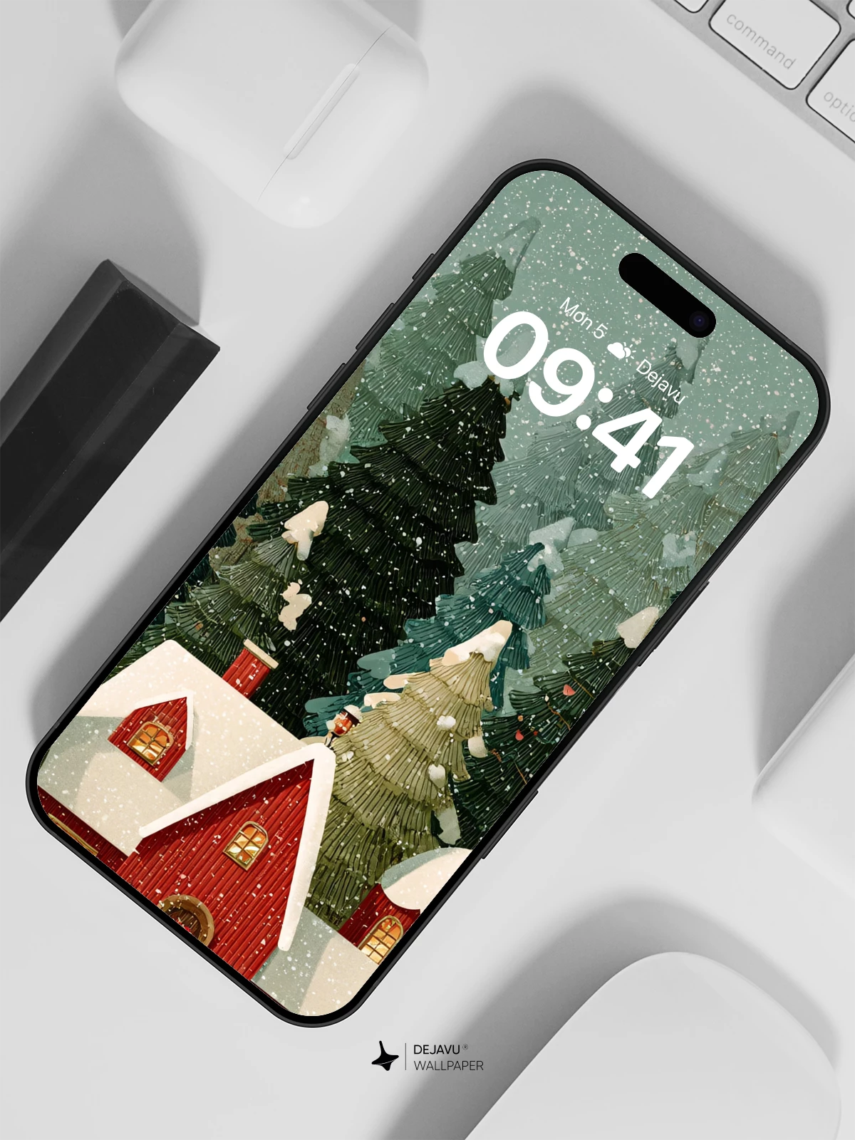 Step into a dreamy Christmas wonderland with this enchanting 8K wallpaper featuring a charming red cottage nestled among snow-dusted evergreens, glowing warmly under a gentle snowfall. Festive decorations, gift boxes, and cheerful snowmen add holiday magic to the serene landscape. Inspired by classic illustrated winter scenes, this artwork evokes nostalgia and peace, making it ideal for iPhone, Android, and tablet screens during the festive season. Let the timeless beauty of a snowy forest bring joy to your mobile background.