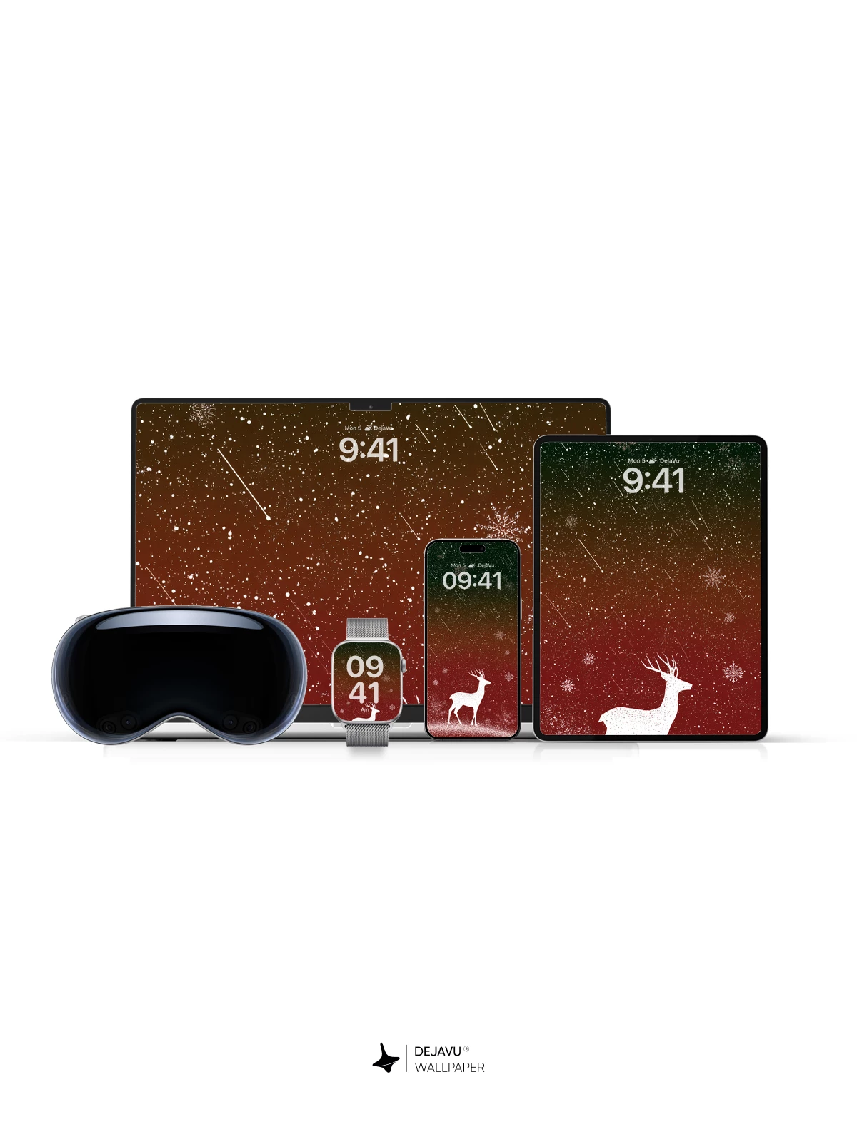 This enchanting 8K wallpaper captures the quiet magic of a snowy night, with a luminous deer standing proudly against a gradient sky that shifts from deep emerald to rich crimson. Delicate snowflakes drift gently, blending with celestial streaks to evoke a dreamlike winter wonderland. The minimalist yet evocative design brings timeless holiday beauty to your iPhone, Android, or tablet, making it ideal for those who cherish poetic imagery and seasonal serenity.
