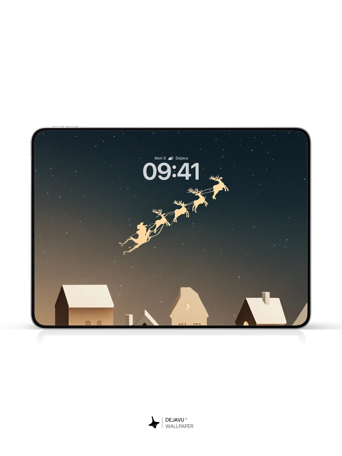 Under a serene, star-dusted sky, Santa’s golden sleigh soars above a charming snow-covered village, its warm windows glowing like lanterns in the cold night. This festive 8K wallpaper captures the wonder of Christmas Eve with delicate silhouettes and soft lighting, evoking nostalgia and joy. Ideal for iPhone, Android, and tablets, it brings holiday magic to your screen with stunning clarity and timeless charm.