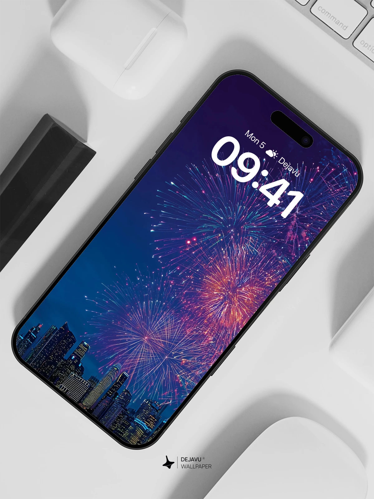 This stunning 8K wallpaper captures the magic of a nighttime cityscape illuminated by a burst of colorful fireworks, their radiant hues mirrored in the still water below. The blend of urban architecture and celebratory pyrotechnics evokes joy, wonder, and cinematic grandeur. Ideal for iPhone, Android, and tablet screens, this high-resolution image delivers immersive beauty with every glance.