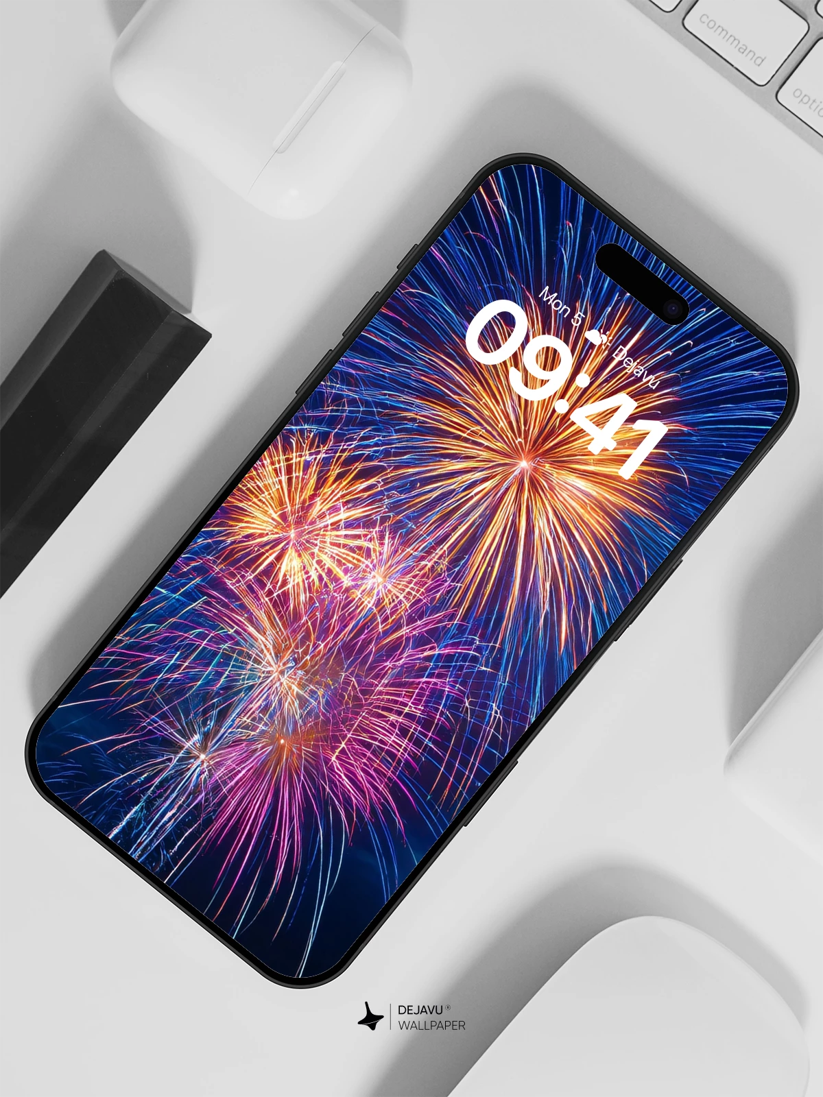 This breathtaking 8K wallpaper captures a spectacular fireworks display bursting with radiant colors—vivid blues, fiery oranges, and glowing pinks—illuminating the dark sky in a moment of pure celebration. The intricate trails and radiant bursts create a sense of wonder and joy, making it an ideal choice for iPhone, Android, and tablet users seeking high-resolution, visually striking backgrounds. Perfect for enhancing any device with a festive and energetic aesthetic.
