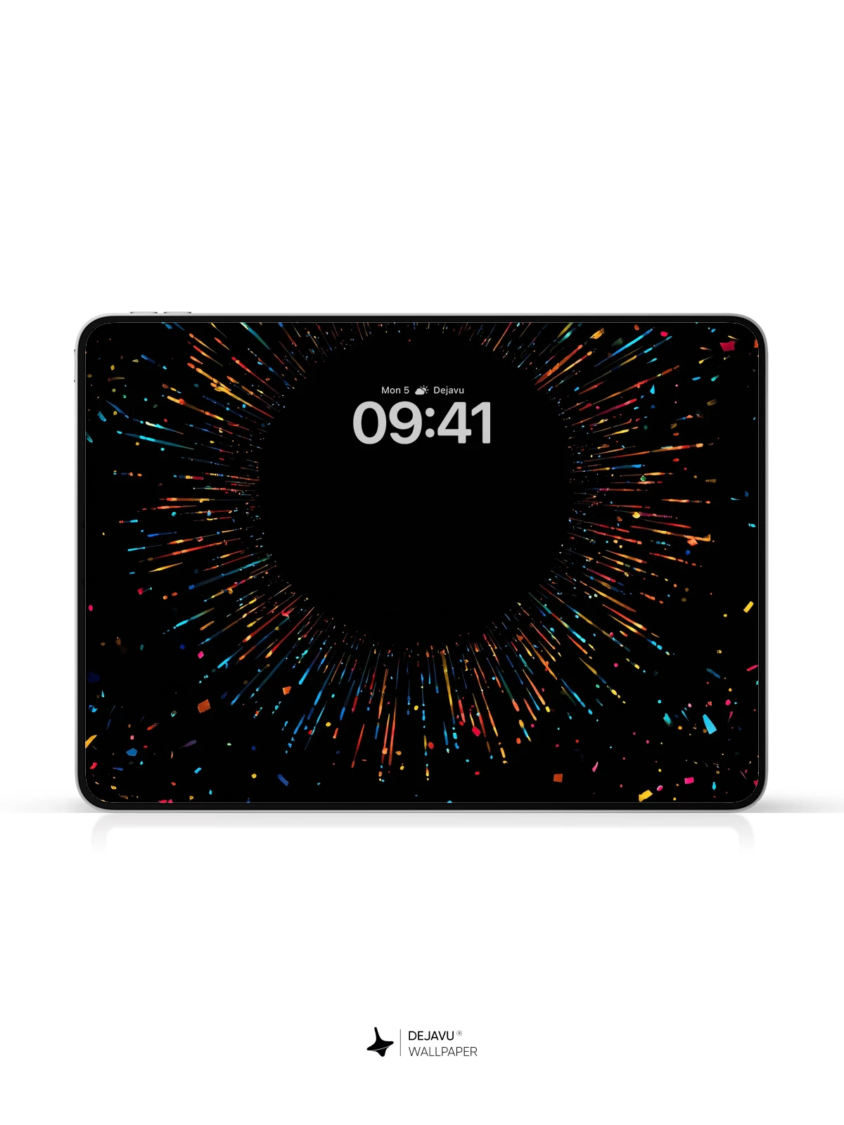 This stunning digital artwork captures the explosive beauty of a celestial event, with vibrant streaks of light and confetti-like fragments bursting outward into the darkness. The symmetrical design and rich color palette evoke a sense of wonder and energy, making it ideal for high-resolution displays on iPhone, Android, and tablets. Perfect for those who love dynamic, modern wallpapers with a touch of cosmic magic.