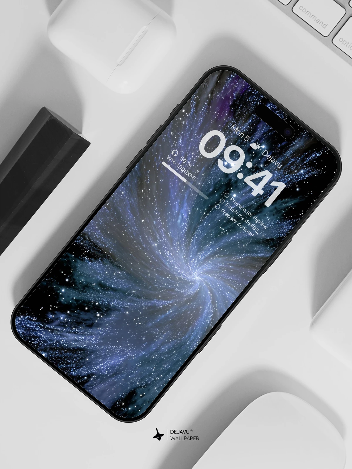 Experience the awe-inspiring beauty of a cosmic whirlpool with this 8K wallpaper. The swirling stars and galaxies create a mesmerizing effect, perfect for transforming your iPhone or Android screen into a portal to the universe.