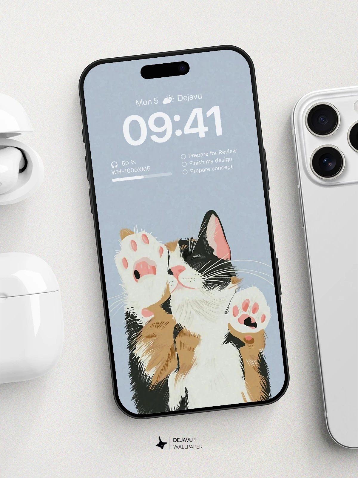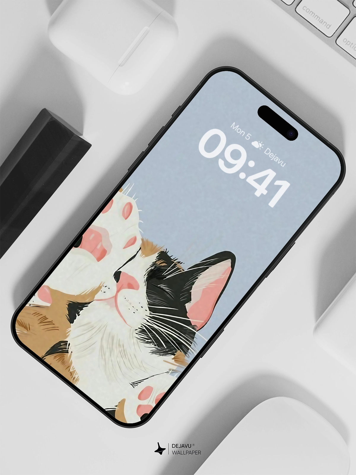 This 8K minimal aesthetic wallpaper features a charming cat illustration that will brighten up your phone screen. The playful pose and soft colors make it perfect for both iPhone and Android devices. Download this cute and funny wallpaper to add a touch of joy to your daily routine.