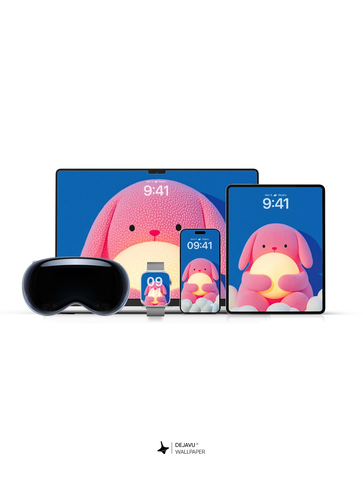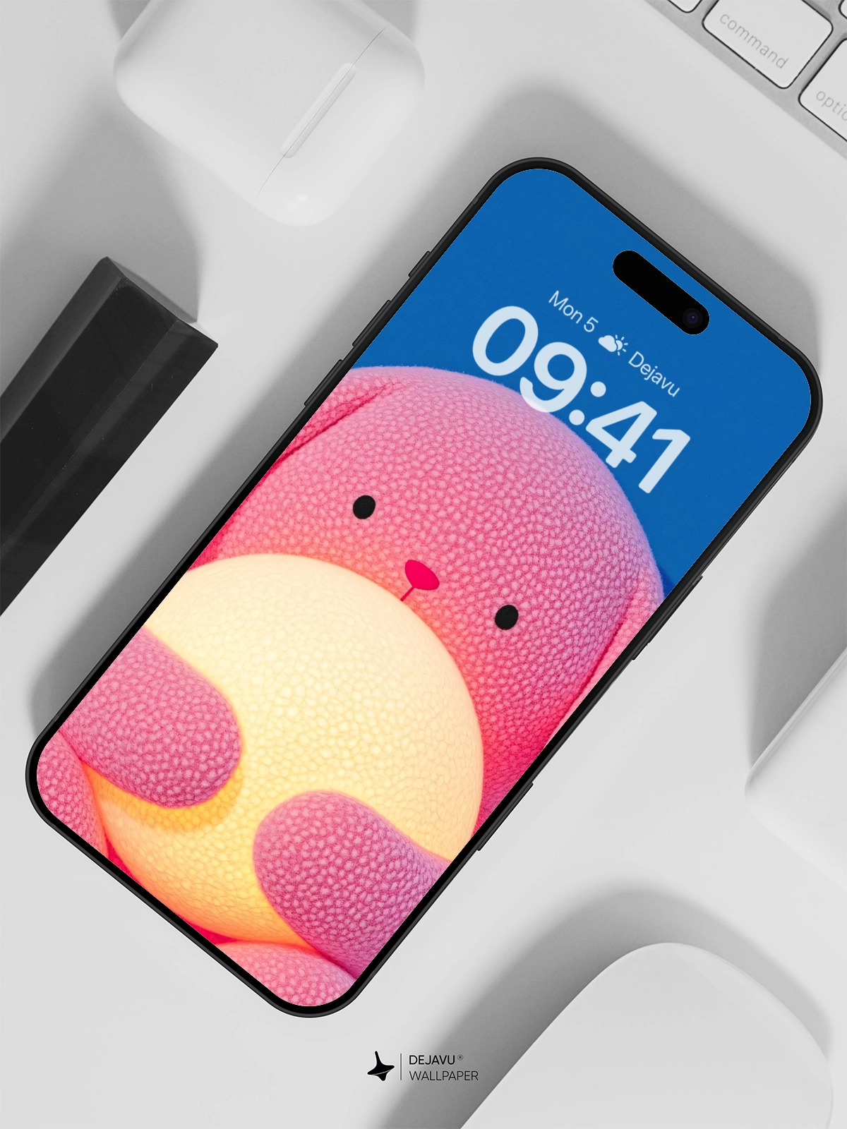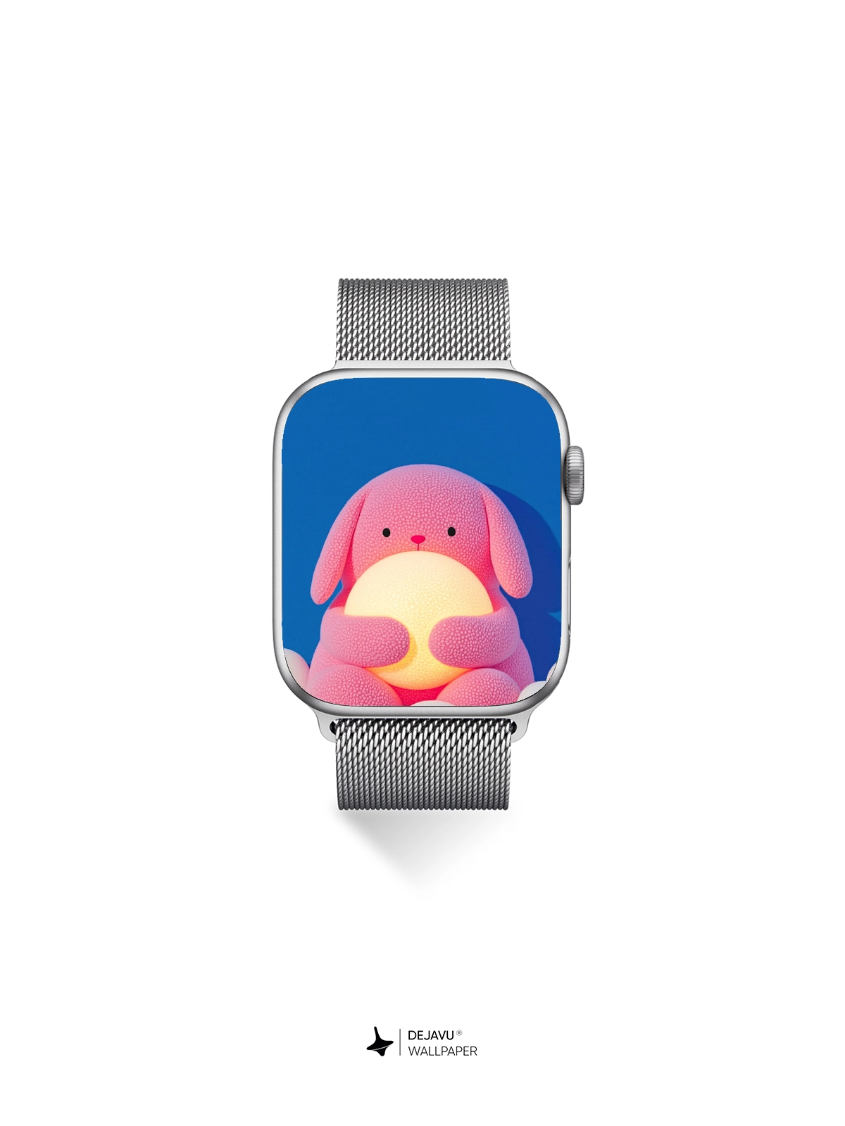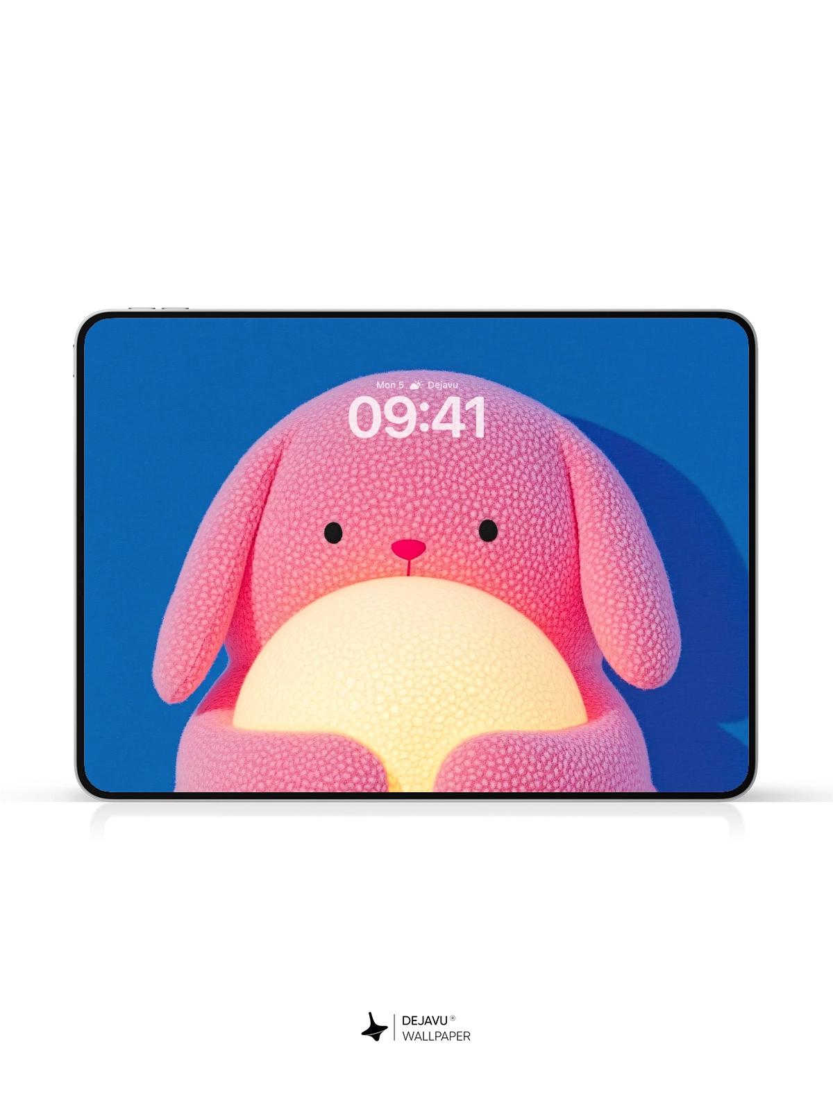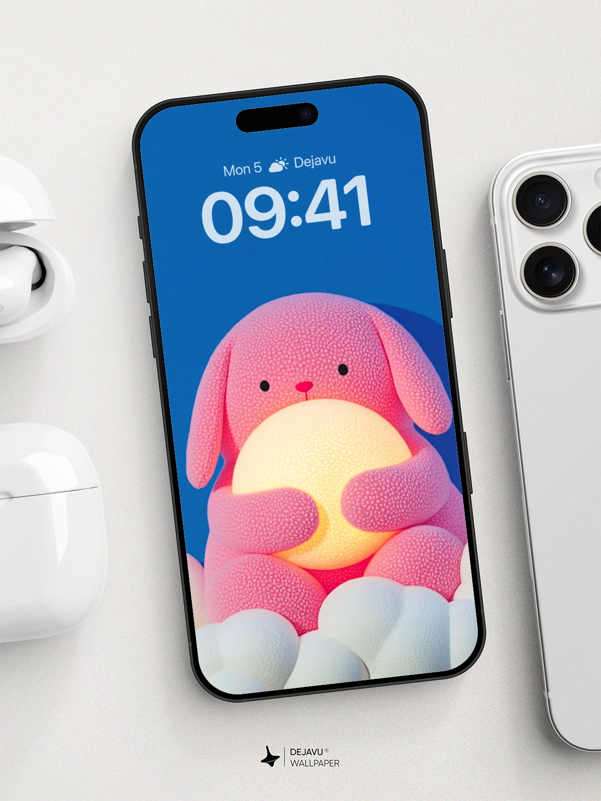 This 8K wallpaper features an adorable pink bunny with a glowing belly, set against a vibrant blue background. The minimal and cute design is perfect for adding a touch of whimsy to your iPhone or Android device. The soft gradient and playful theme make it a delightful choice for anyone looking to brighten up their screen.