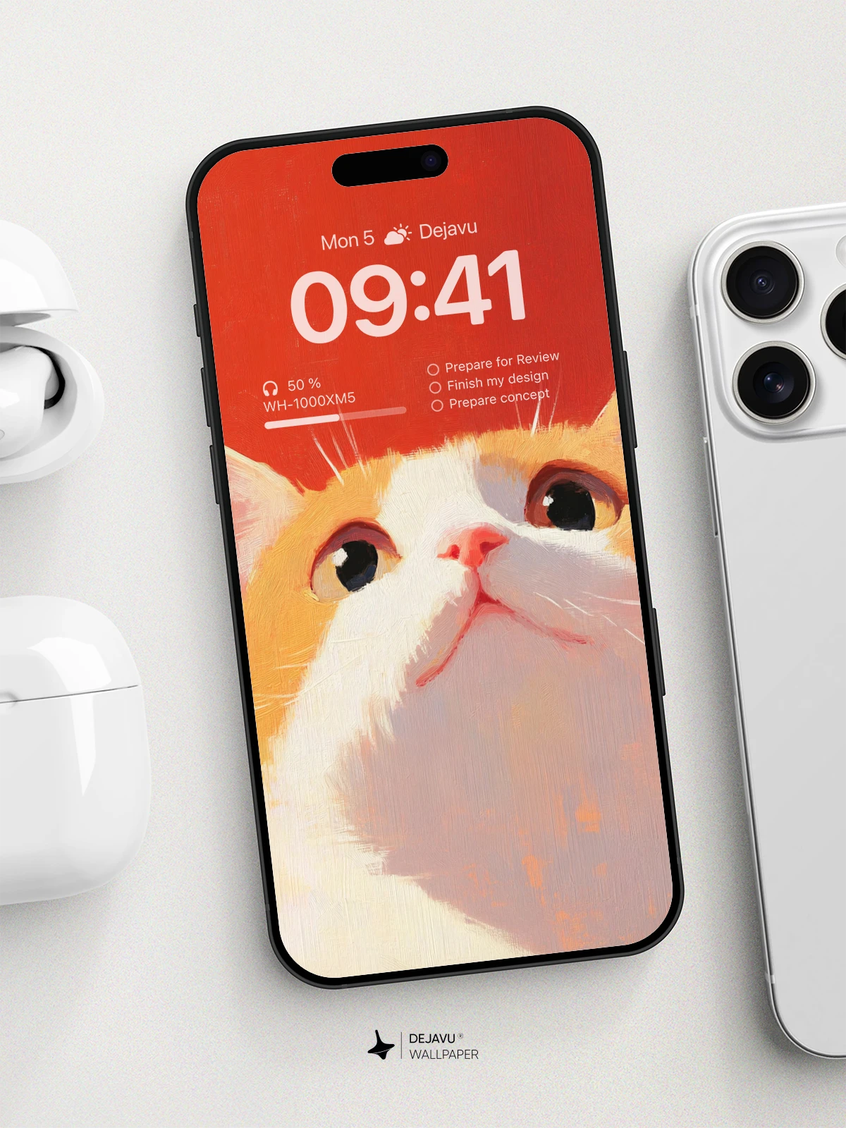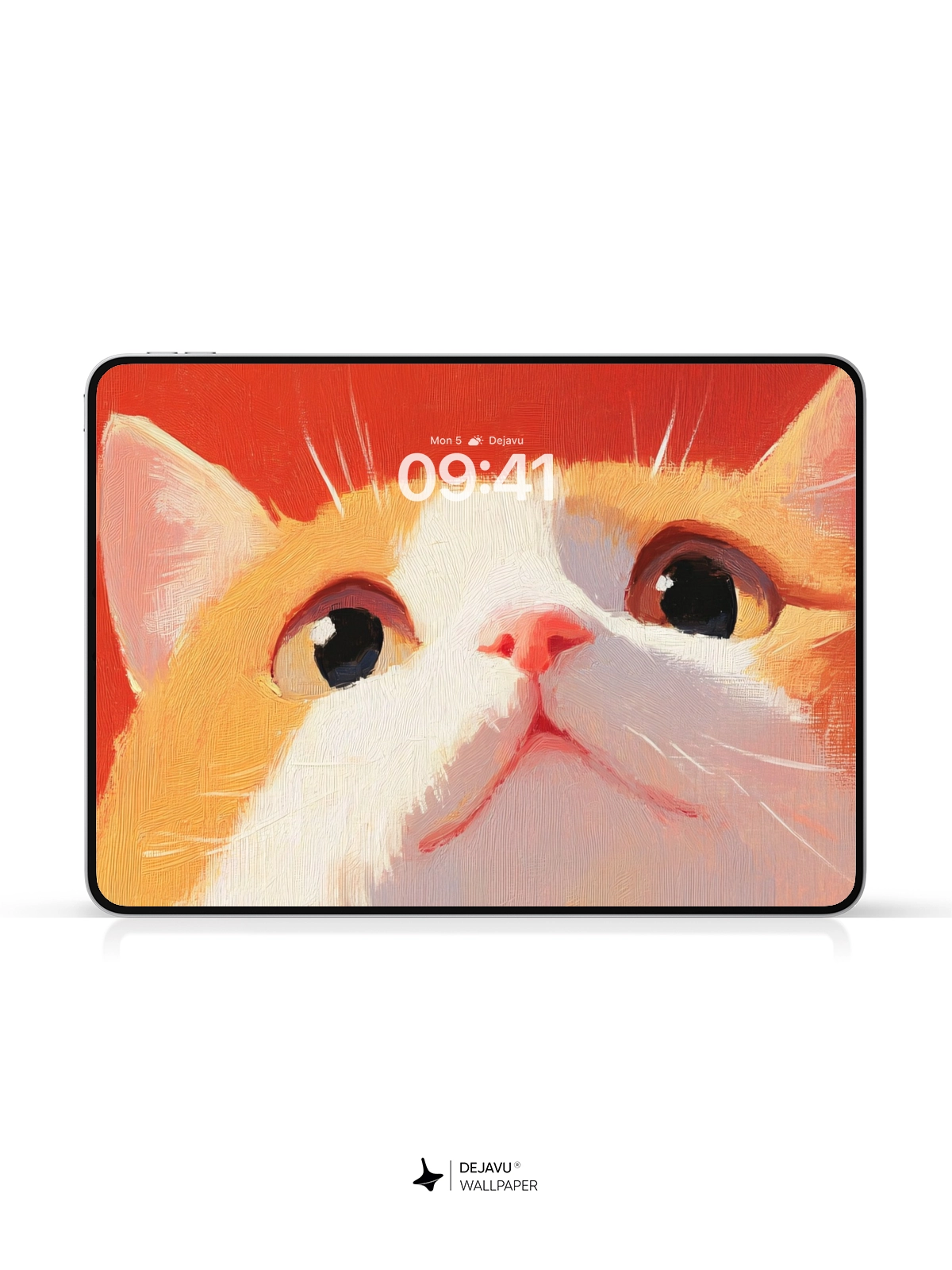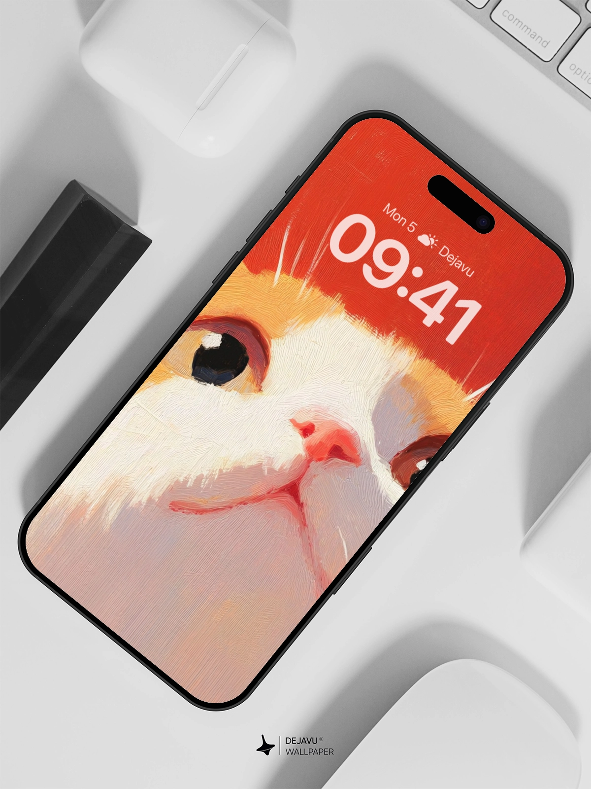 This 8K wallpaper features a charming cat painting with a minimalist design, capturing the essence of cuteness and humor. The vibrant red background contrasts beautifully with the soft, gradient fur, making it an ideal choice for tech enthusiasts. Compatible with iPhone, Android, and tablets, this wallpaper will bring a touch of whimsy to your device.
