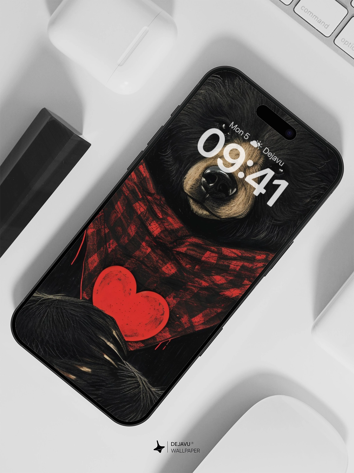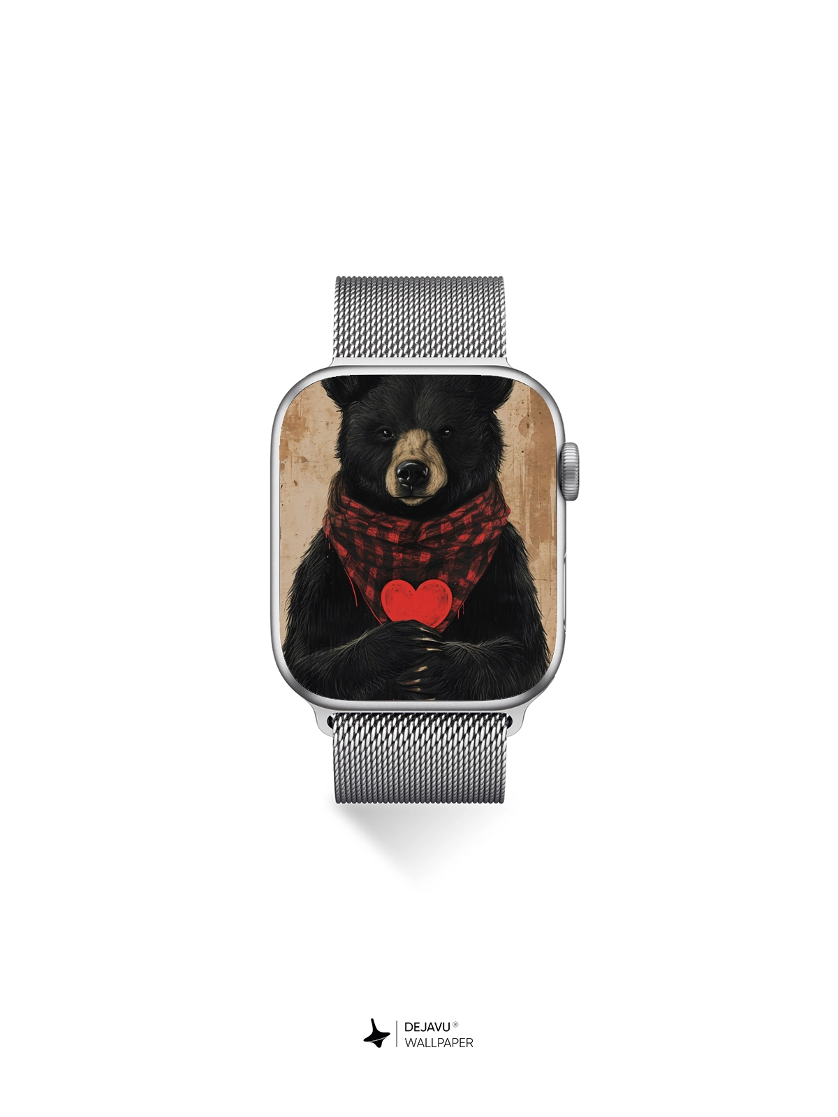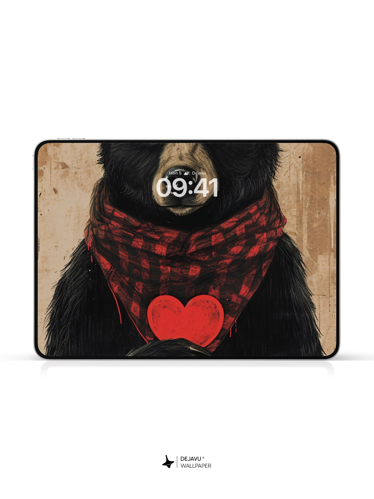 This charming illustration features a cute bear wearing a red plaid scarf and holding a heart, set against a minimalistic background. Perfect for those who love adorable and heartwarming designs. Compatible with iPhone, Android, and tablets.