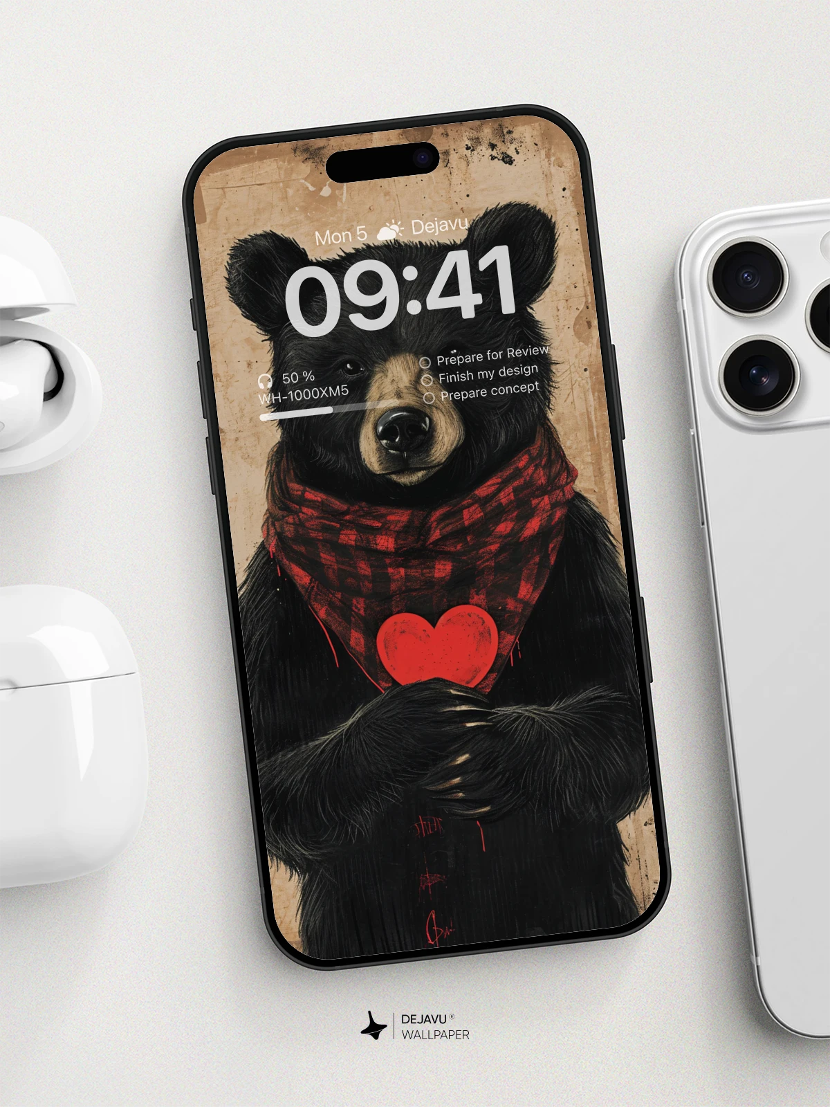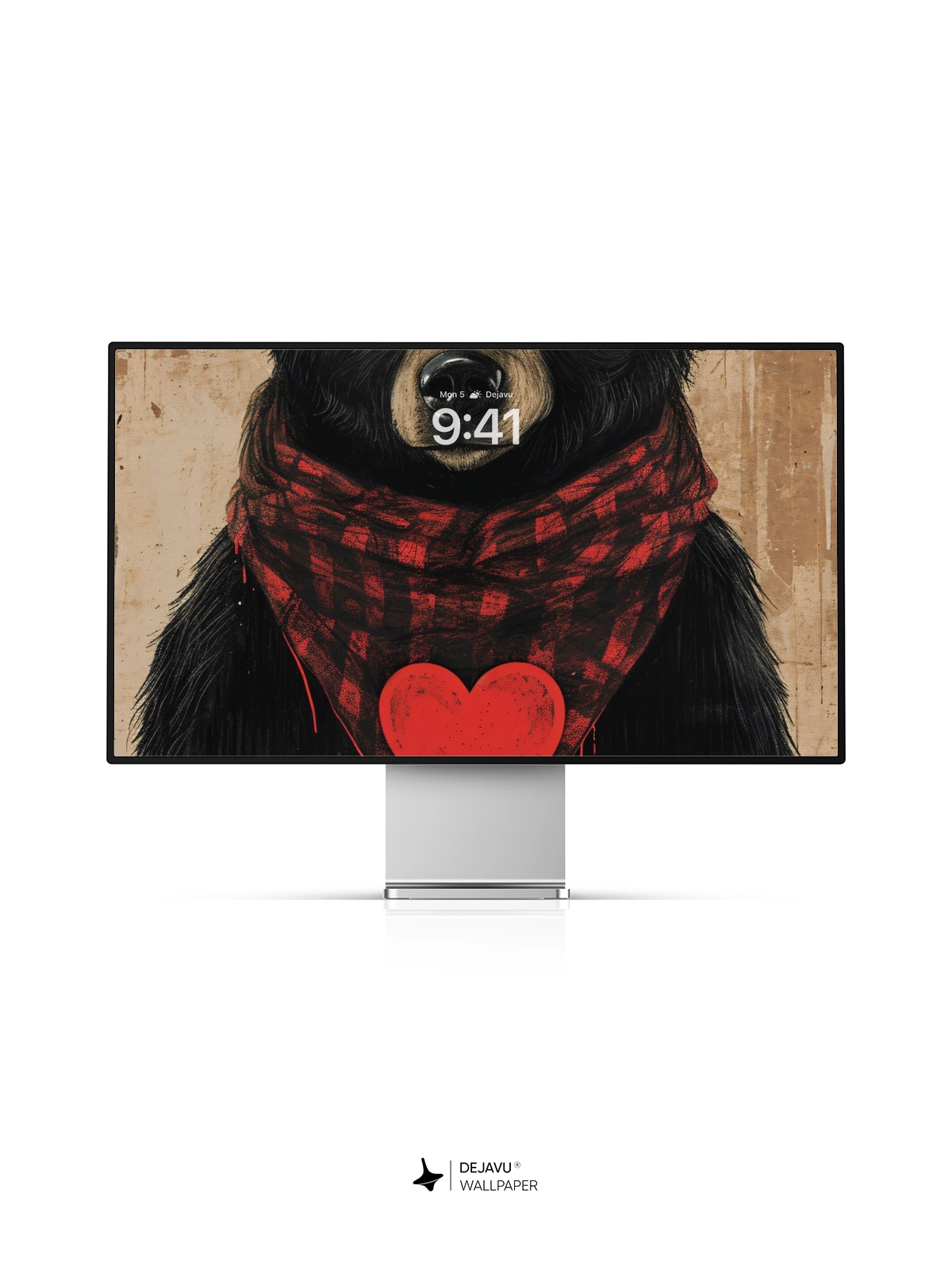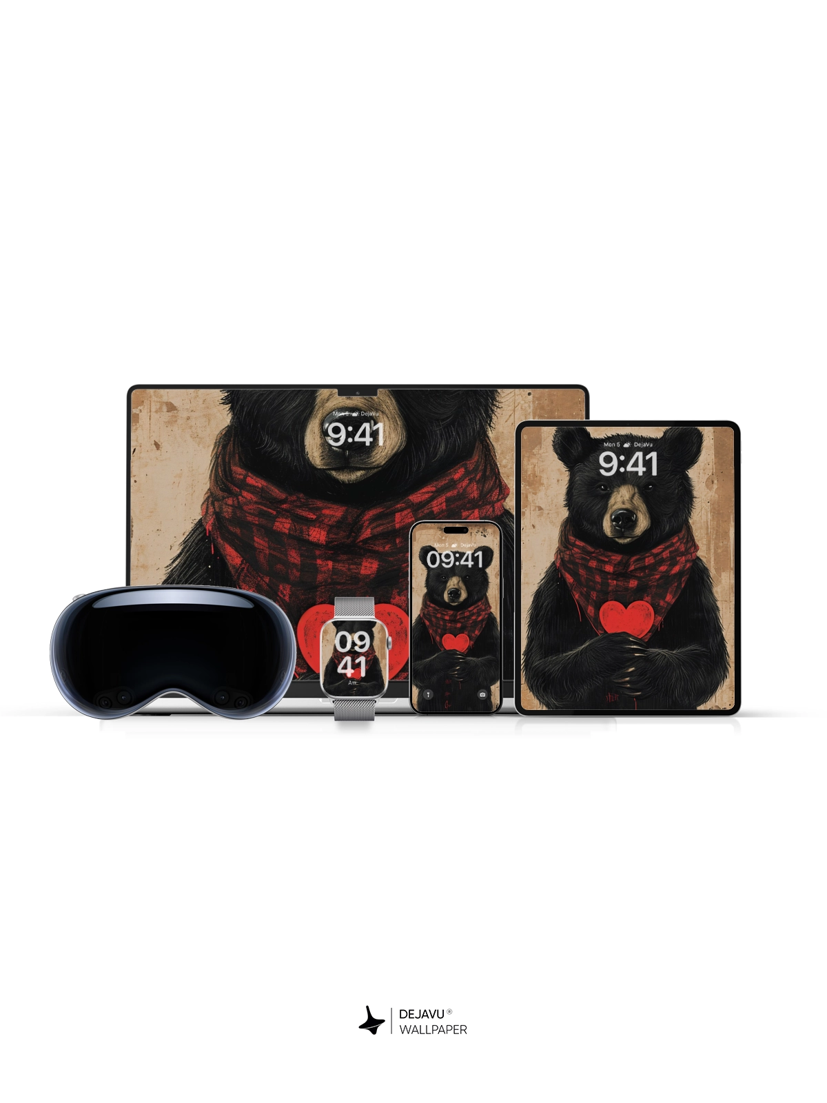 This charming illustration features a cute bear wearing a red plaid scarf and holding a heart, set against a minimalistic background. Perfect for those who love adorable and heartwarming designs. Compatible with iPhone, Android, and tablets.