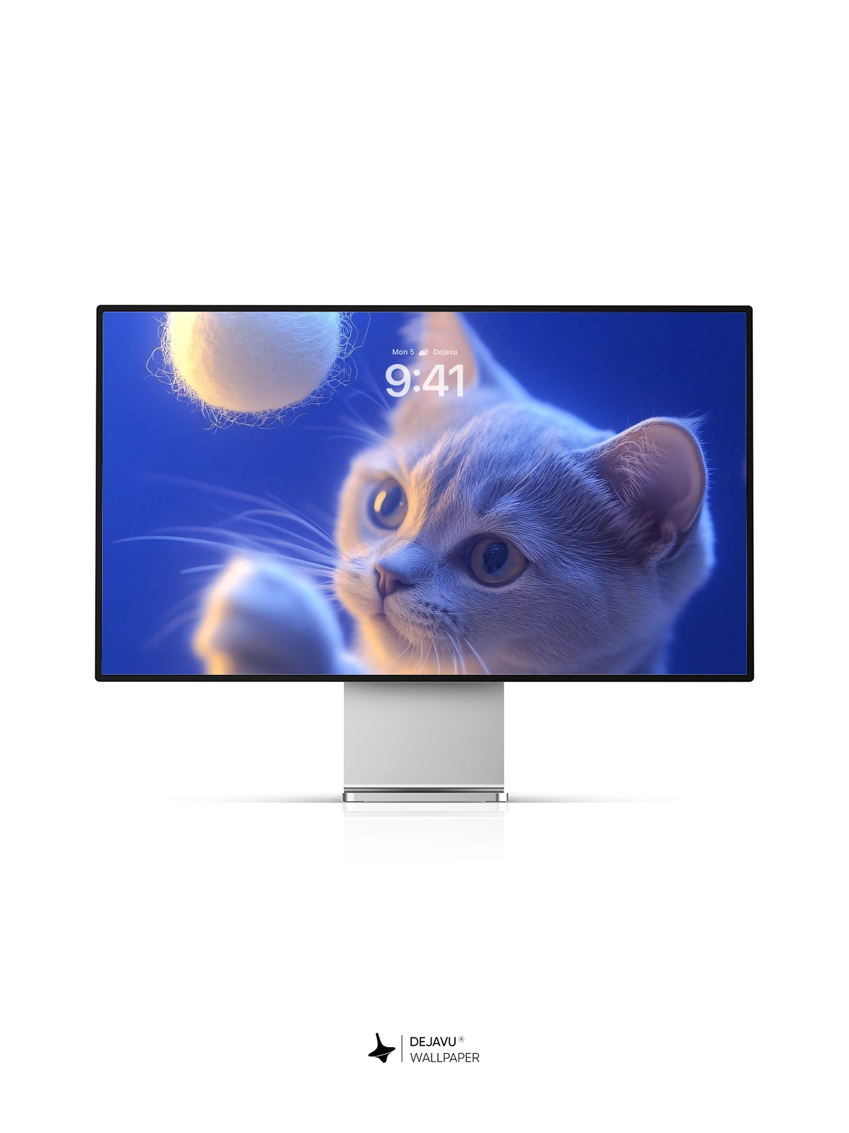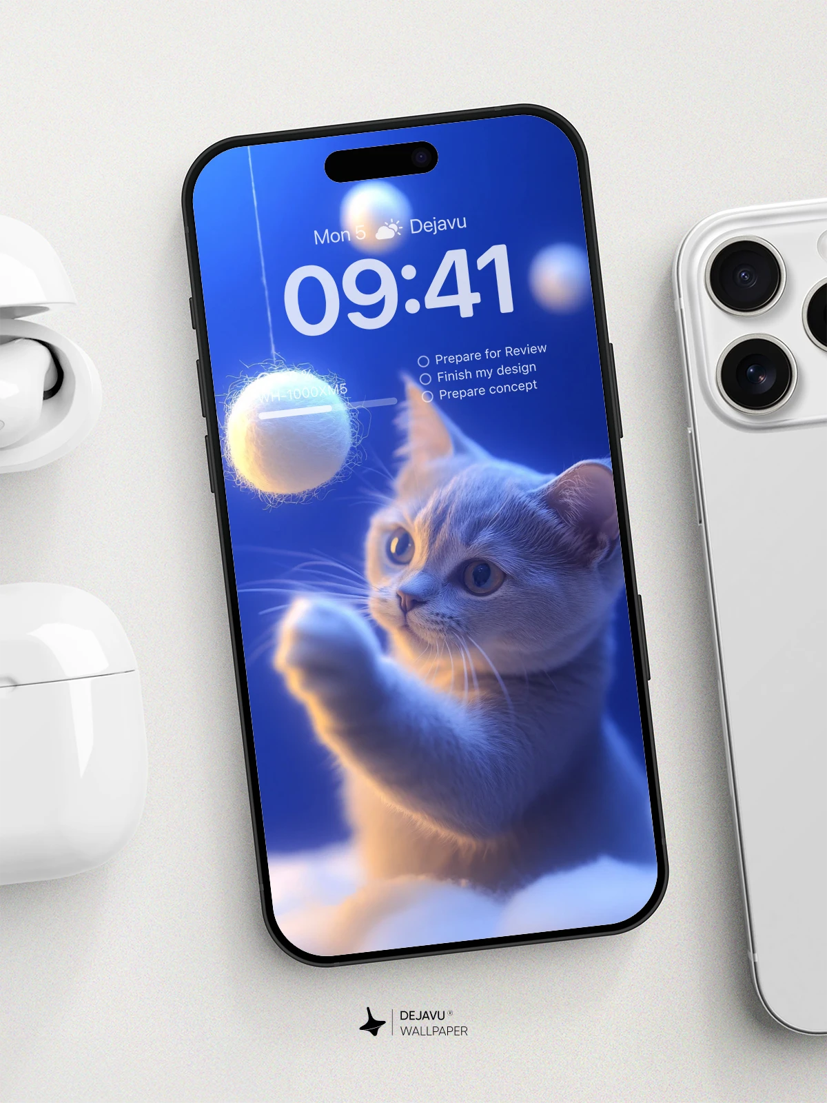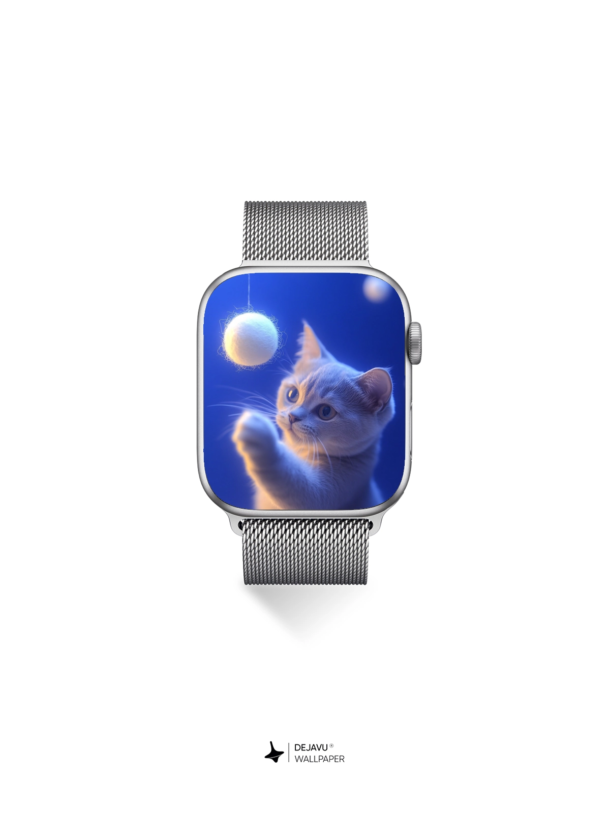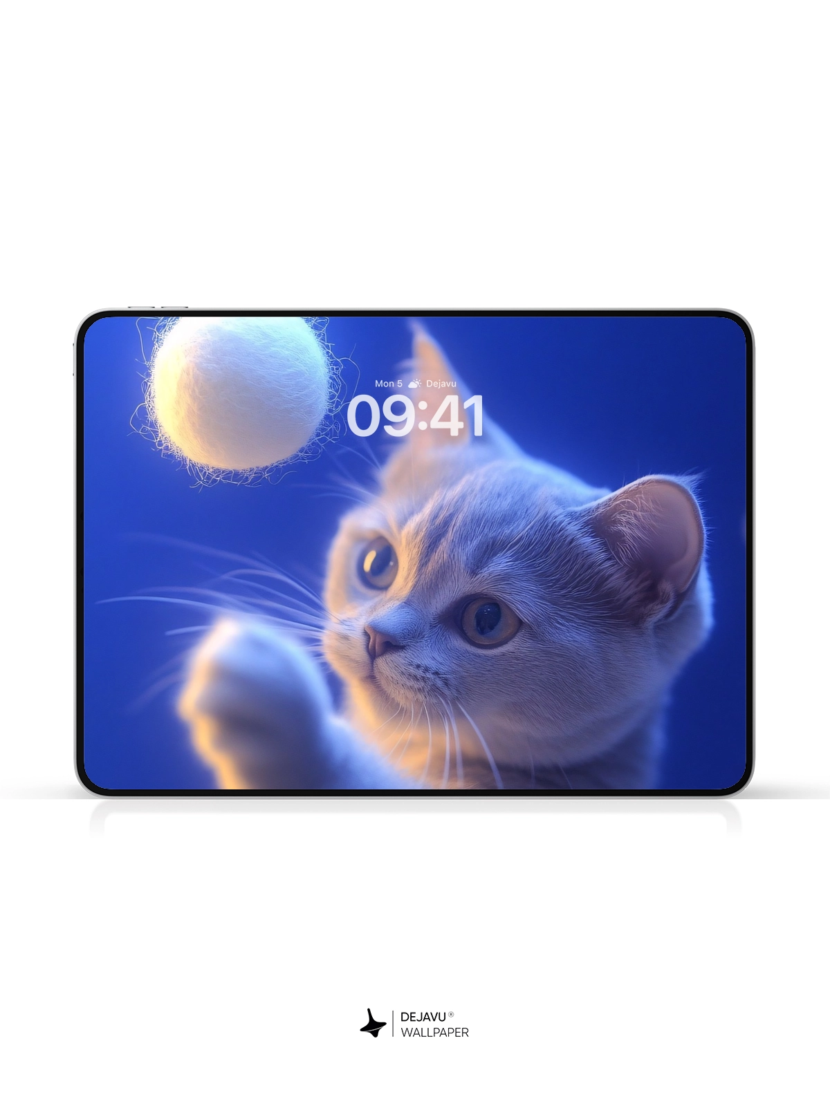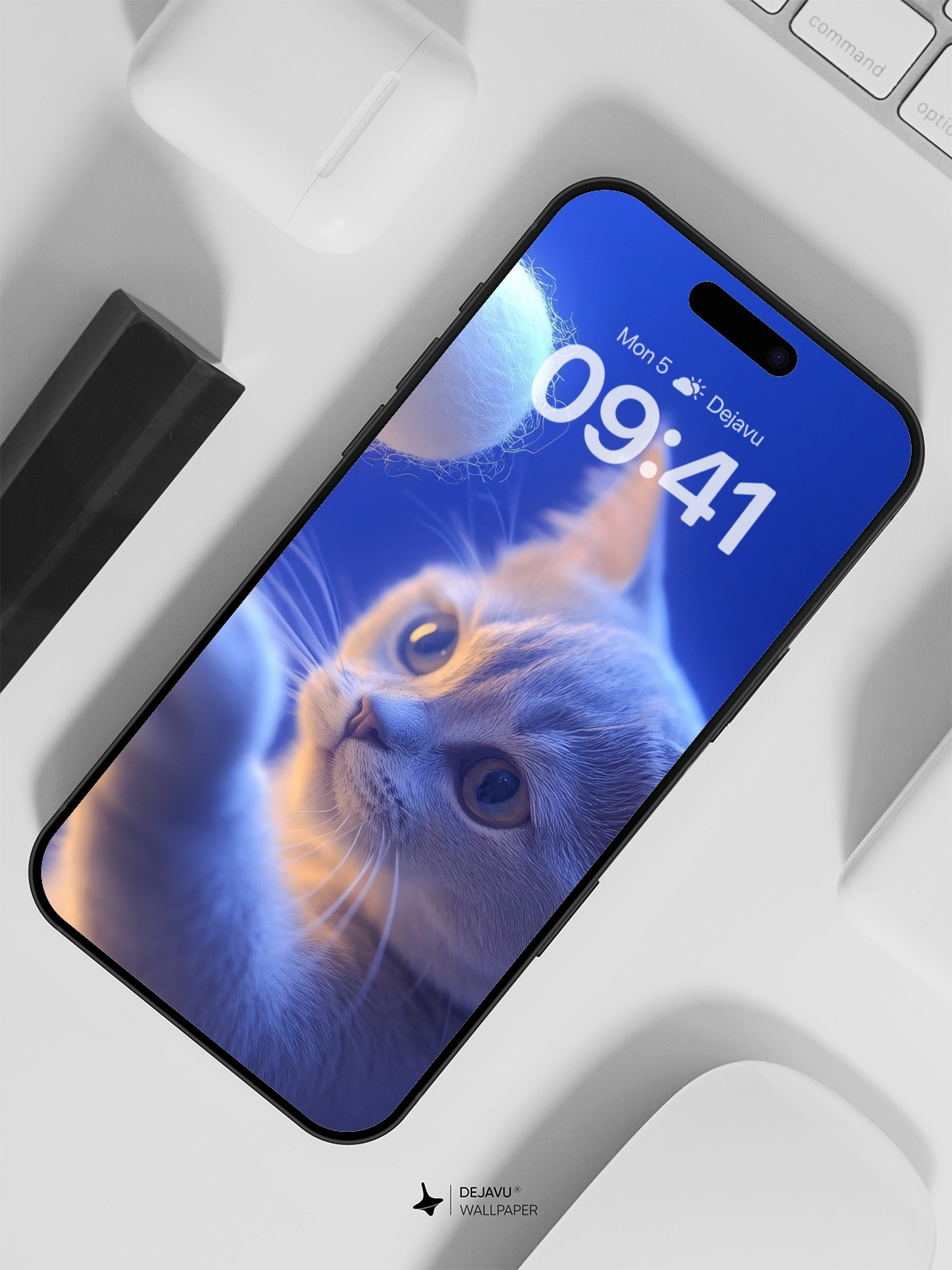 This wallpaper features a cute cat curiously reaching out to a hanging ball, set against a soft gradient background. The minimalistic design and adorable theme make it perfect for enhancing the look of your iPhone or Android device. The image captures a playful moment that is sure to bring joy and a touch of whimsy to your screen.