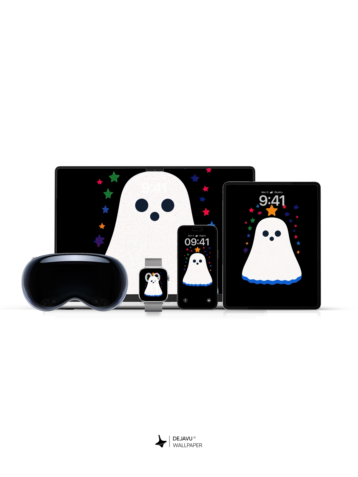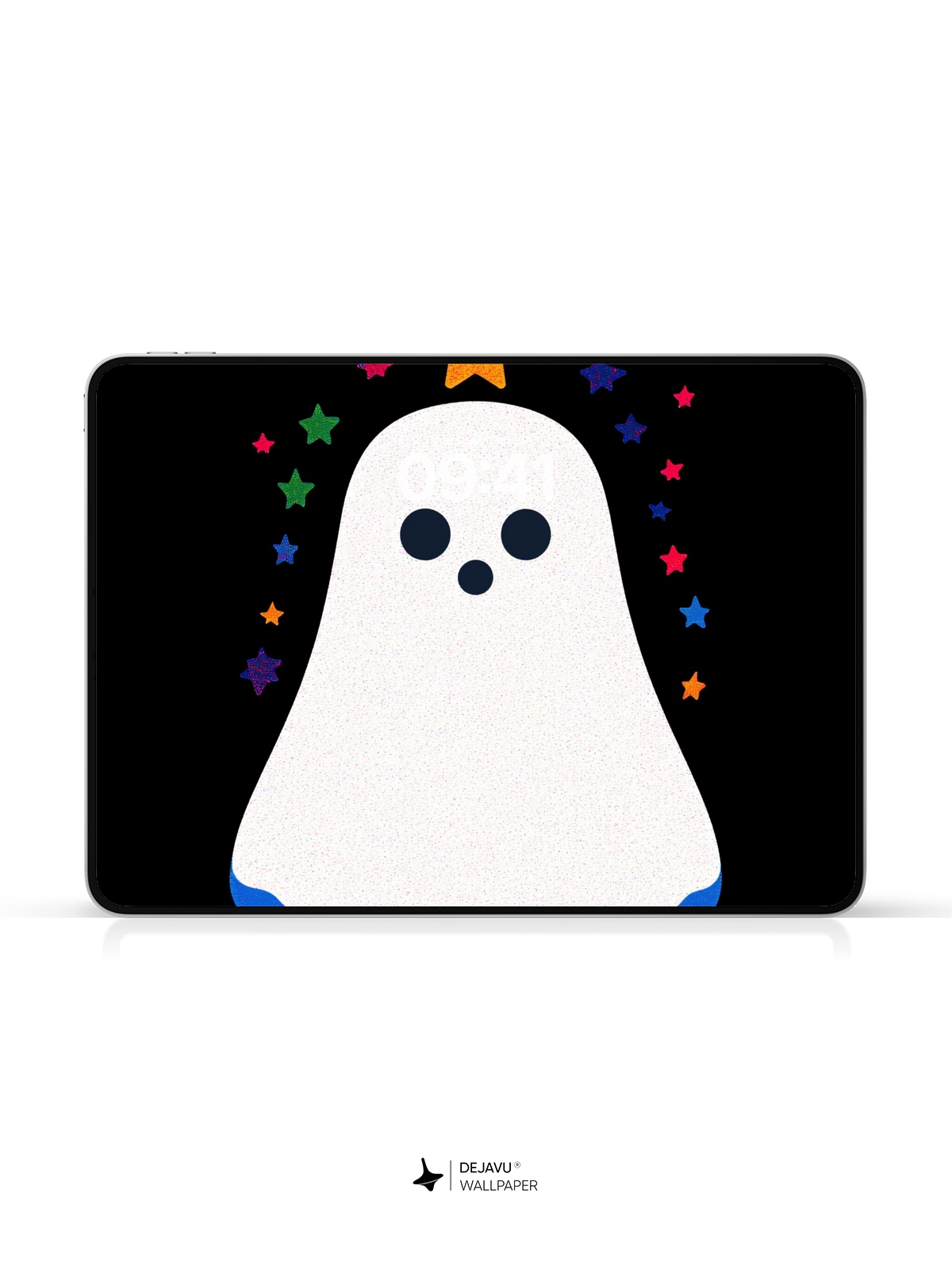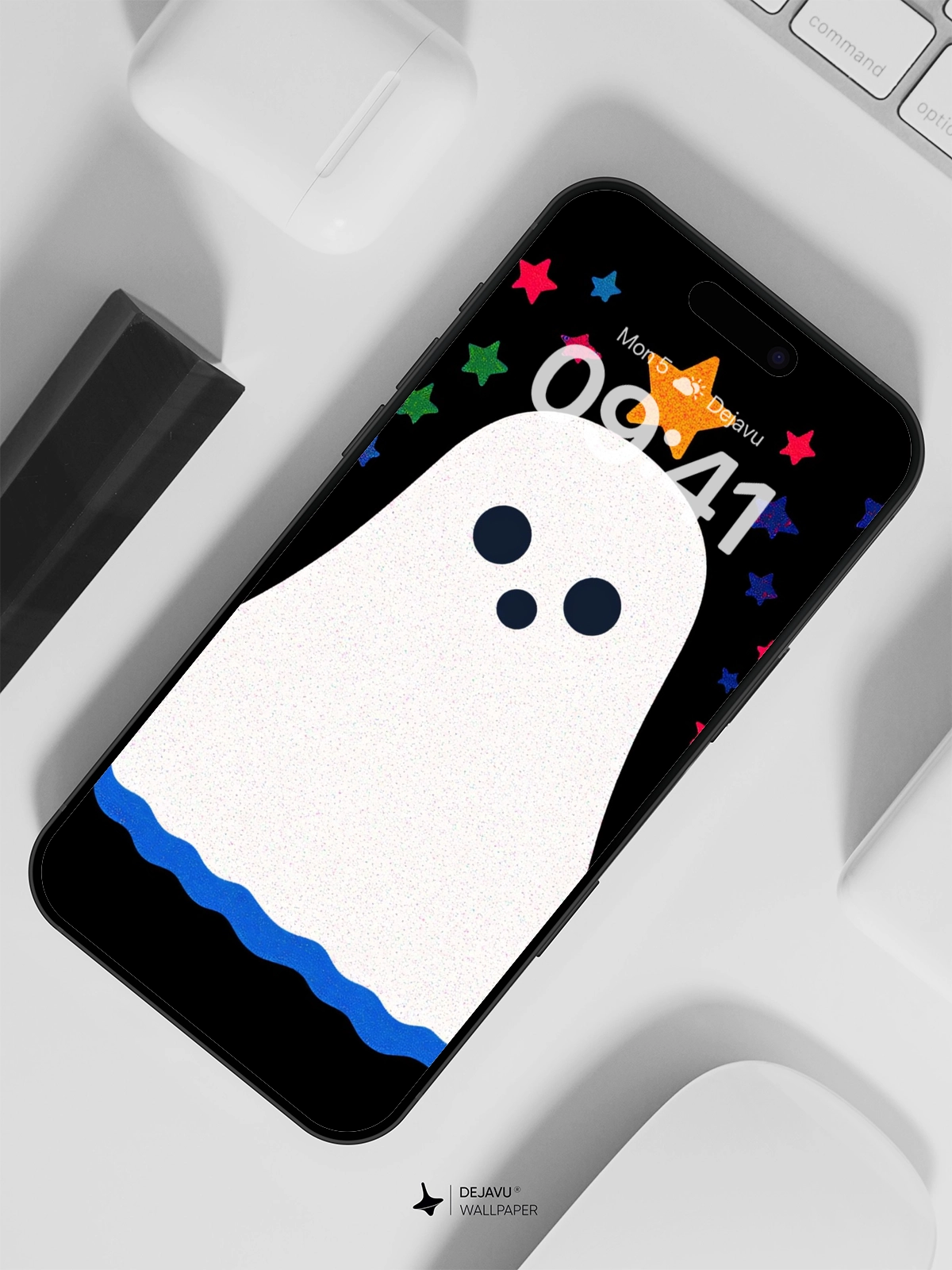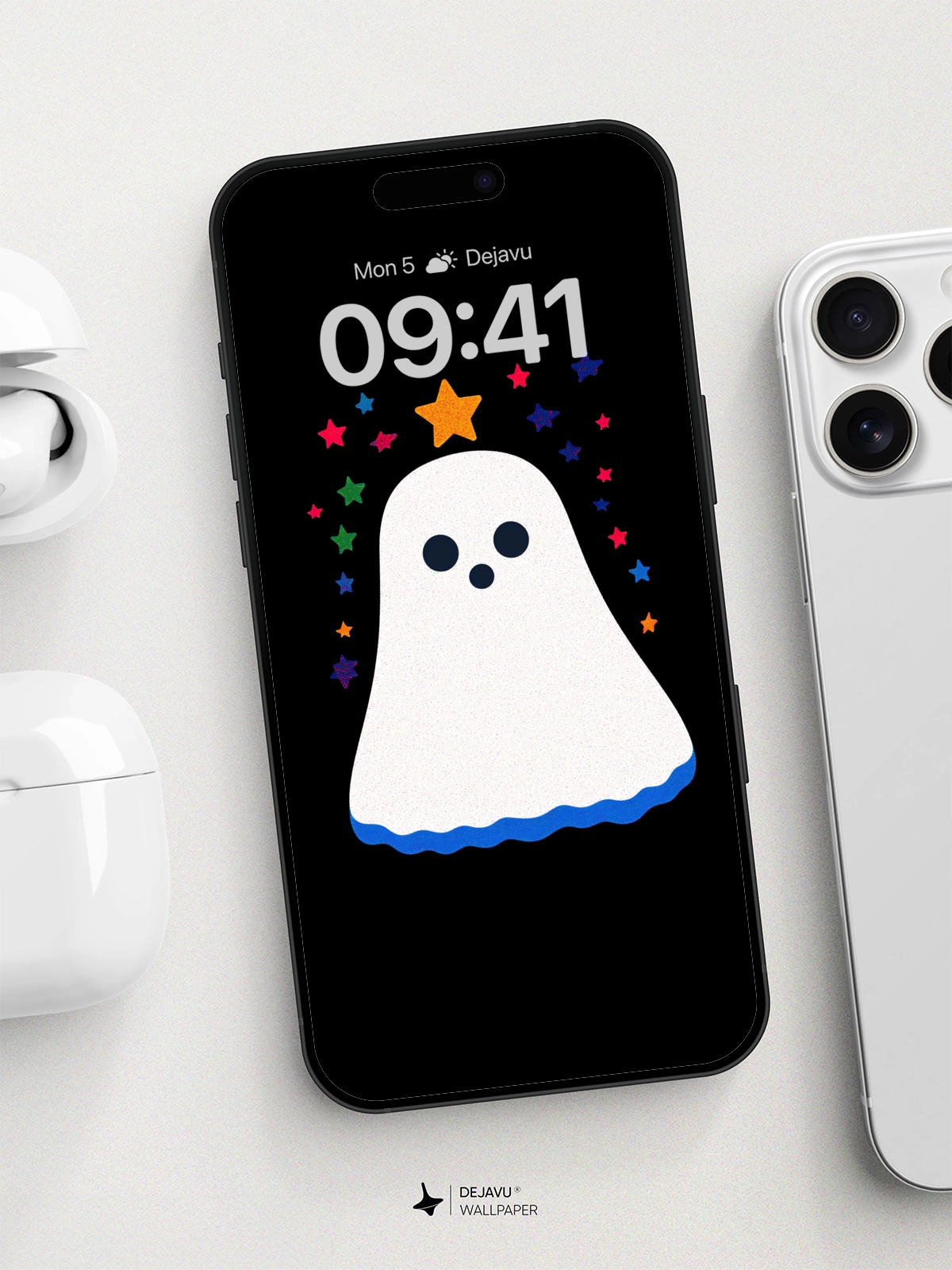 This charming 8K wallpaper features a cute ghost surrounded by vibrant stars, bringing a playful and whimsical vibe to your iPhone or Android screen. Perfect for adding a touch of fun and color to your device.