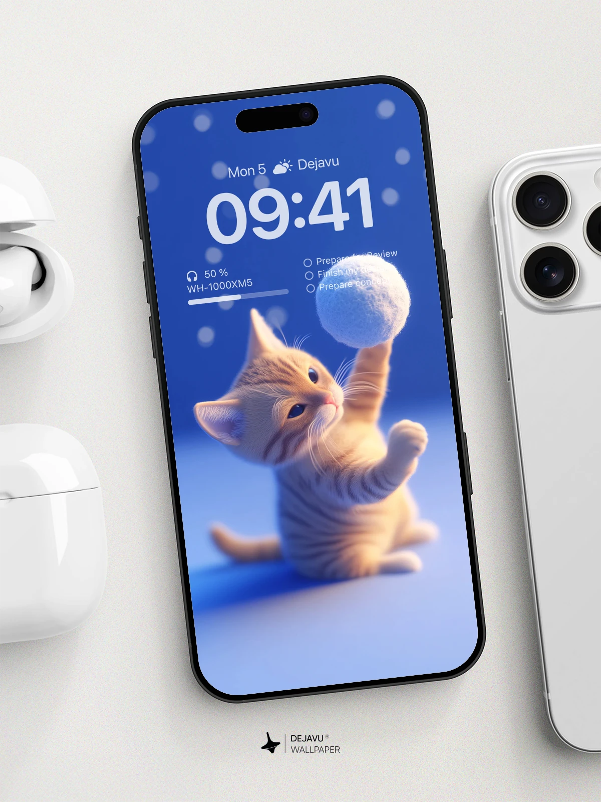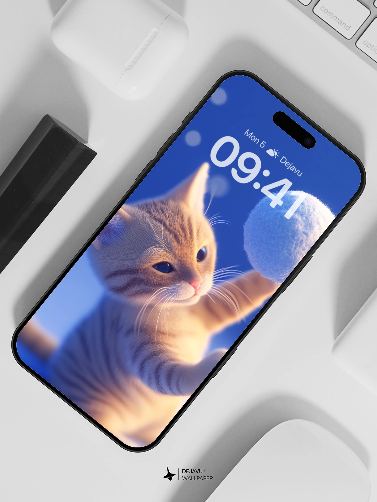 This charming 8K wallpaper features an adorable kitten playfully interacting with a fluffy snowball. Perfect for bringing a touch of whimsy and joy to your iPhone or Android screen. The high-resolution image captures every detail, making it a delightful addition to any device.