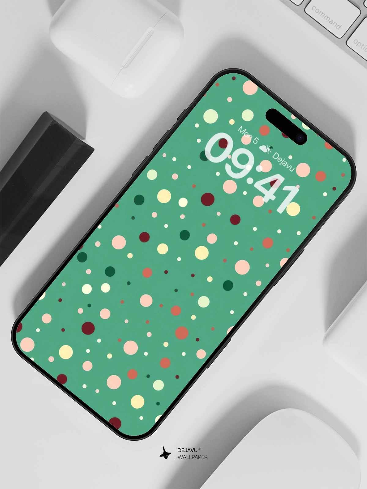 This cute minimal wallpaper features a playful pattern of colorful polka dots scattered across a soothing teal background. The design is simple yet engaging, making it ideal for both iPhone and Android devices. It adds a touch of whimsy and fun to your screen while maintaining a clean and modern aesthetic.