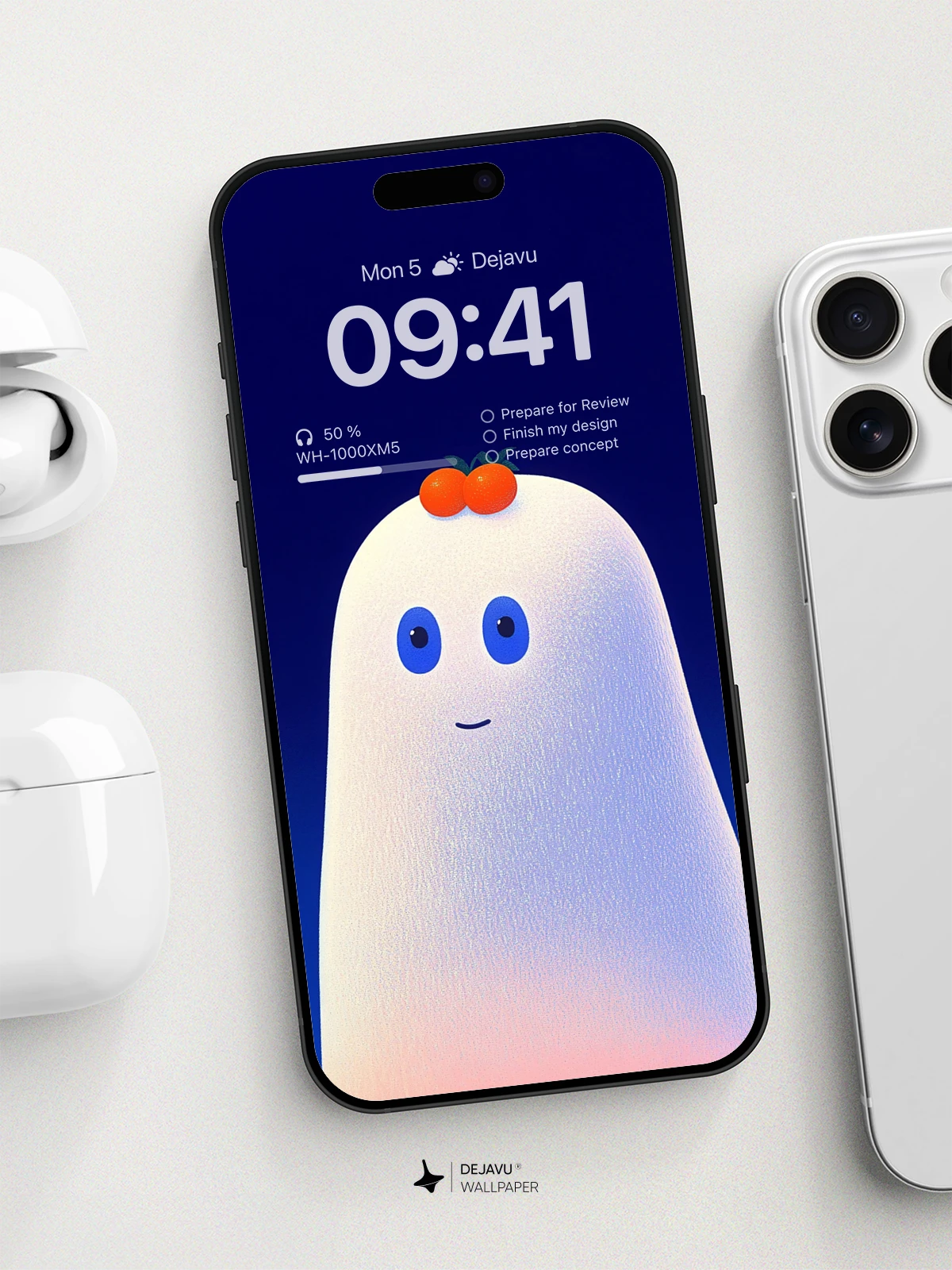 This 8K wallpaper features a cute, minimalist ghost with a playful touch of two bright oranges on its head. The design is simple yet engaging, evoking a sense of whimsy and fun. Perfect for adding a unique aesthetic to your iPhone or Android device, this wallpaper is sure to bring a smile to your face every time you unlock your screen.