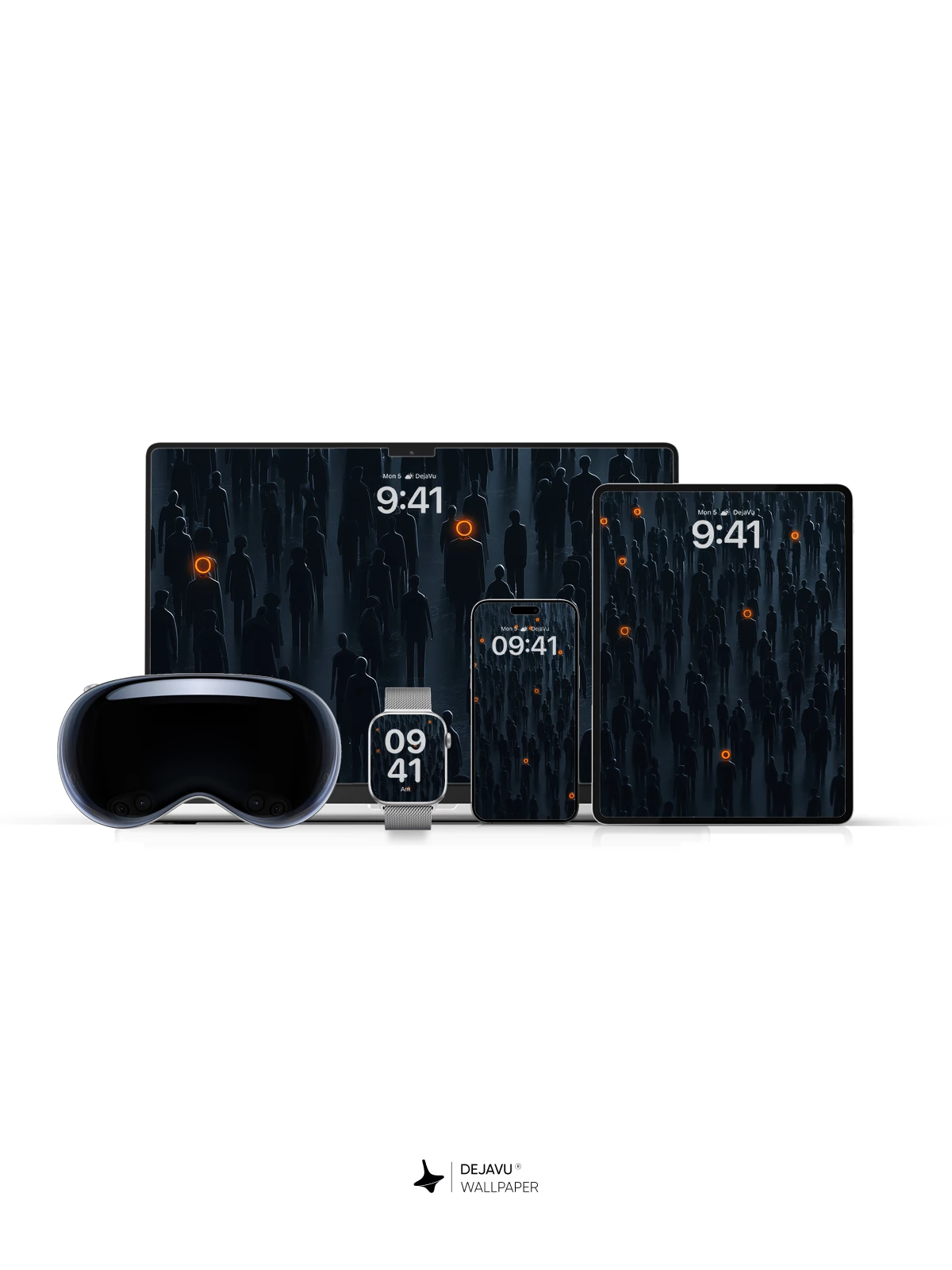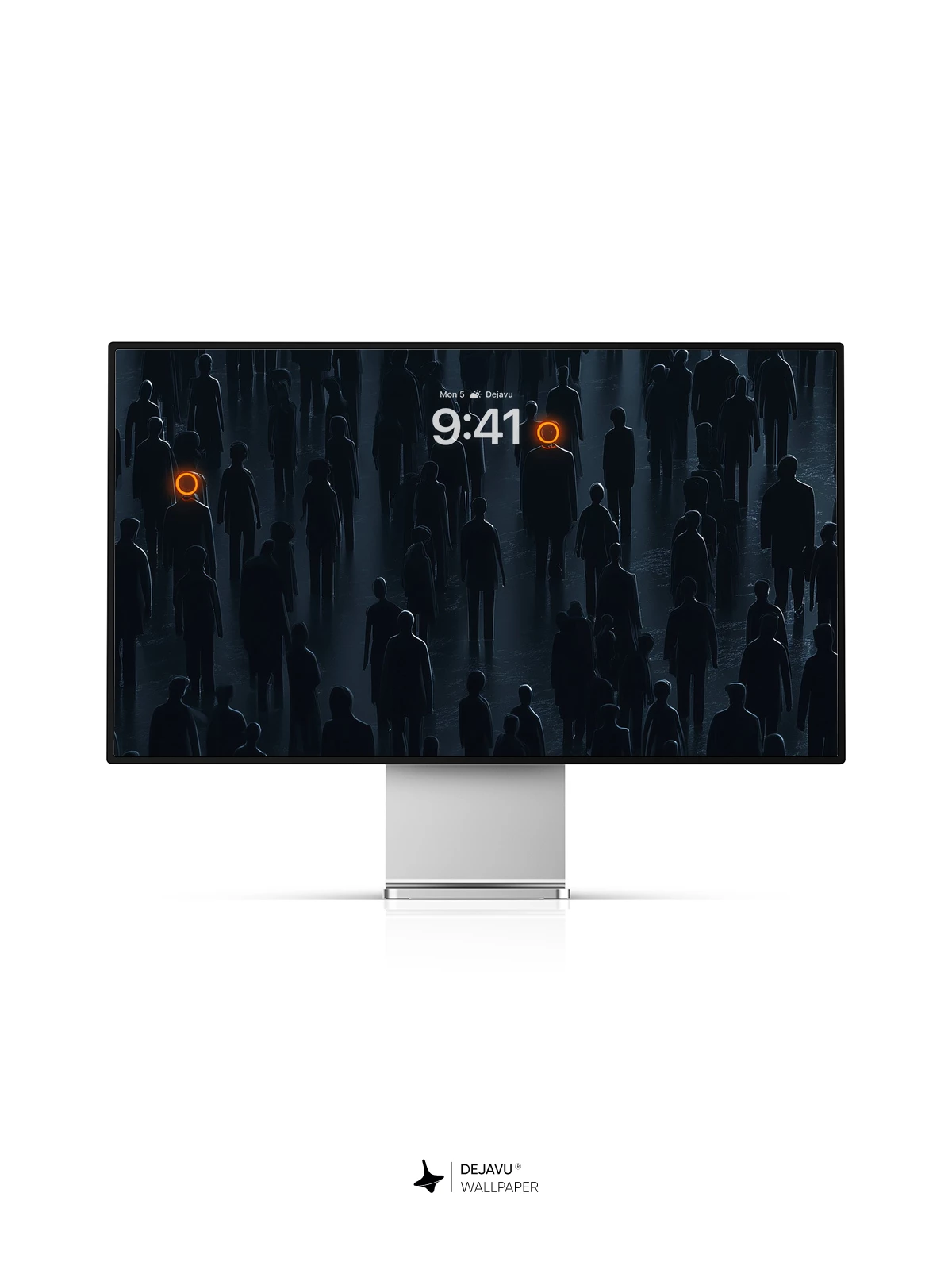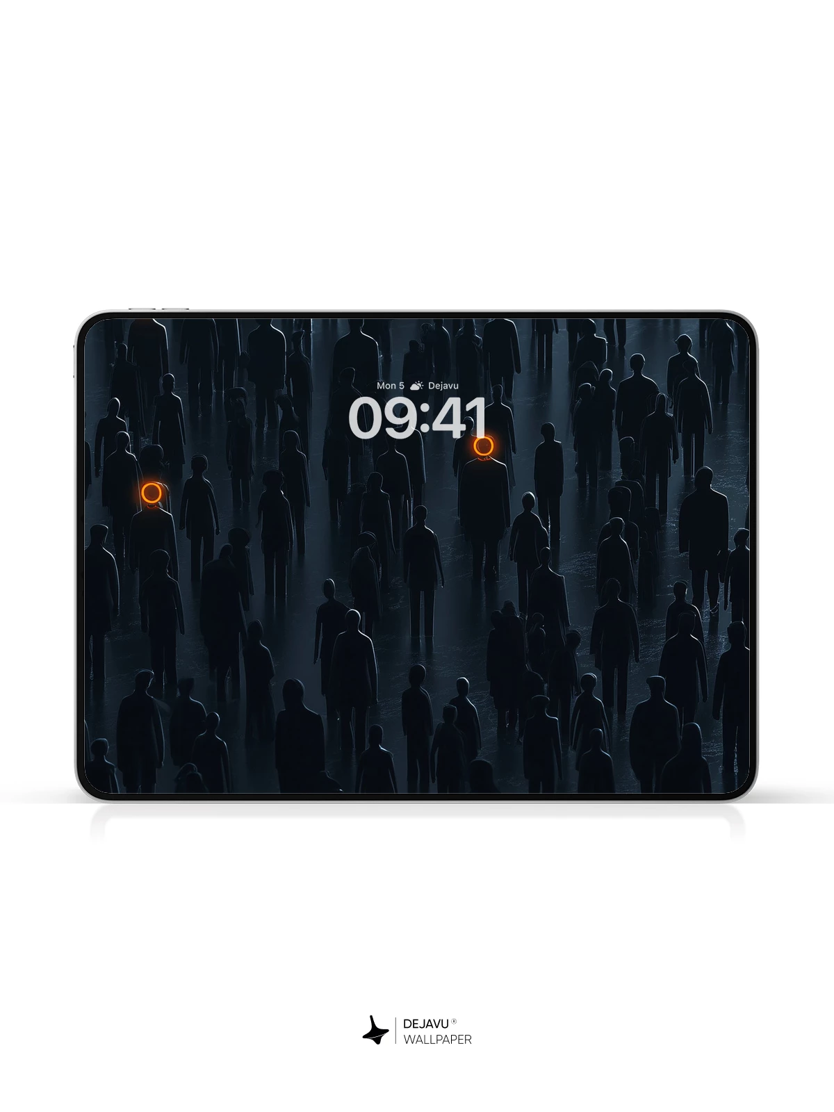 This 8K wallpaper features a crowd of dark silhouettes with striking orange halos, evoking a sense of mystery and depth. Perfect for iPhone, Android, and tablets, it transforms your screen into a captivating, moody scene.