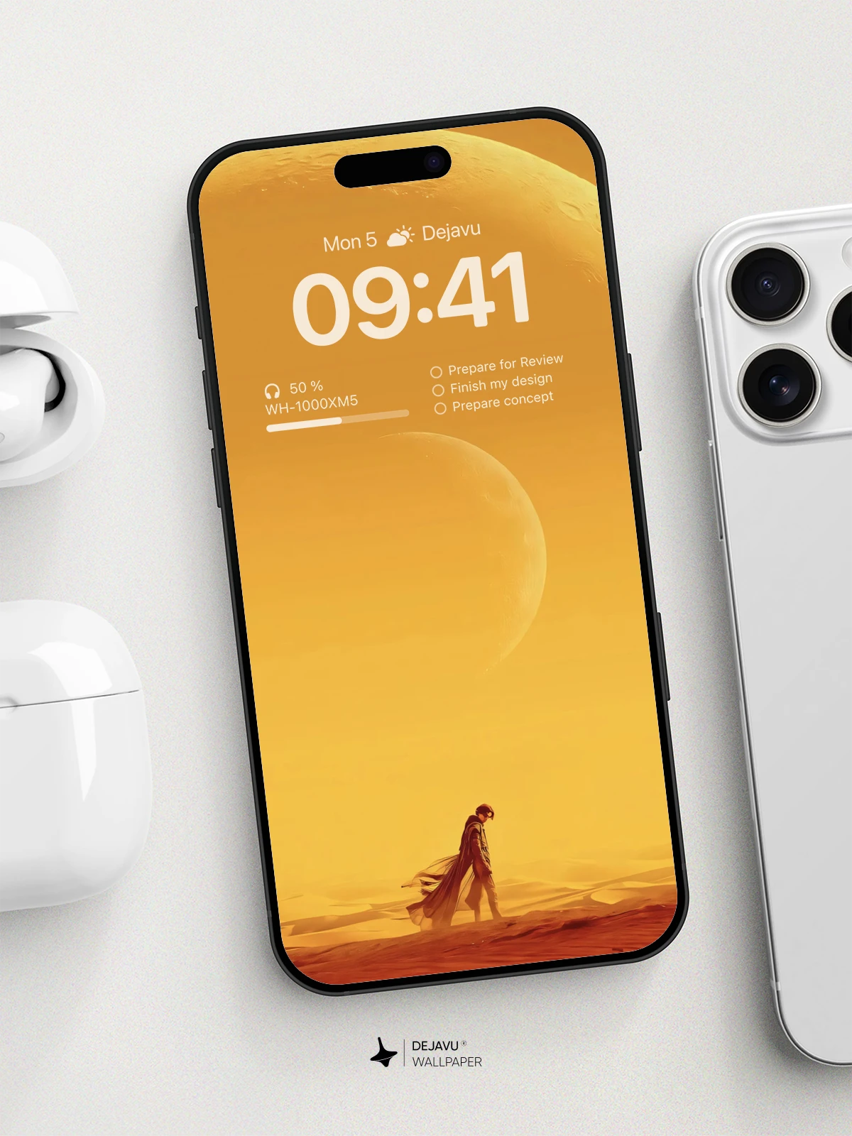 Immerse yourself in the tranquil expanse of a solitary figure journeying through a desolate desert, set against a backdrop of celestial bodies. This 8K wallpaper captures the essence of solitude and mysticism, ideal for enhancing the screens of your iPhone, Android, or any mobile device.