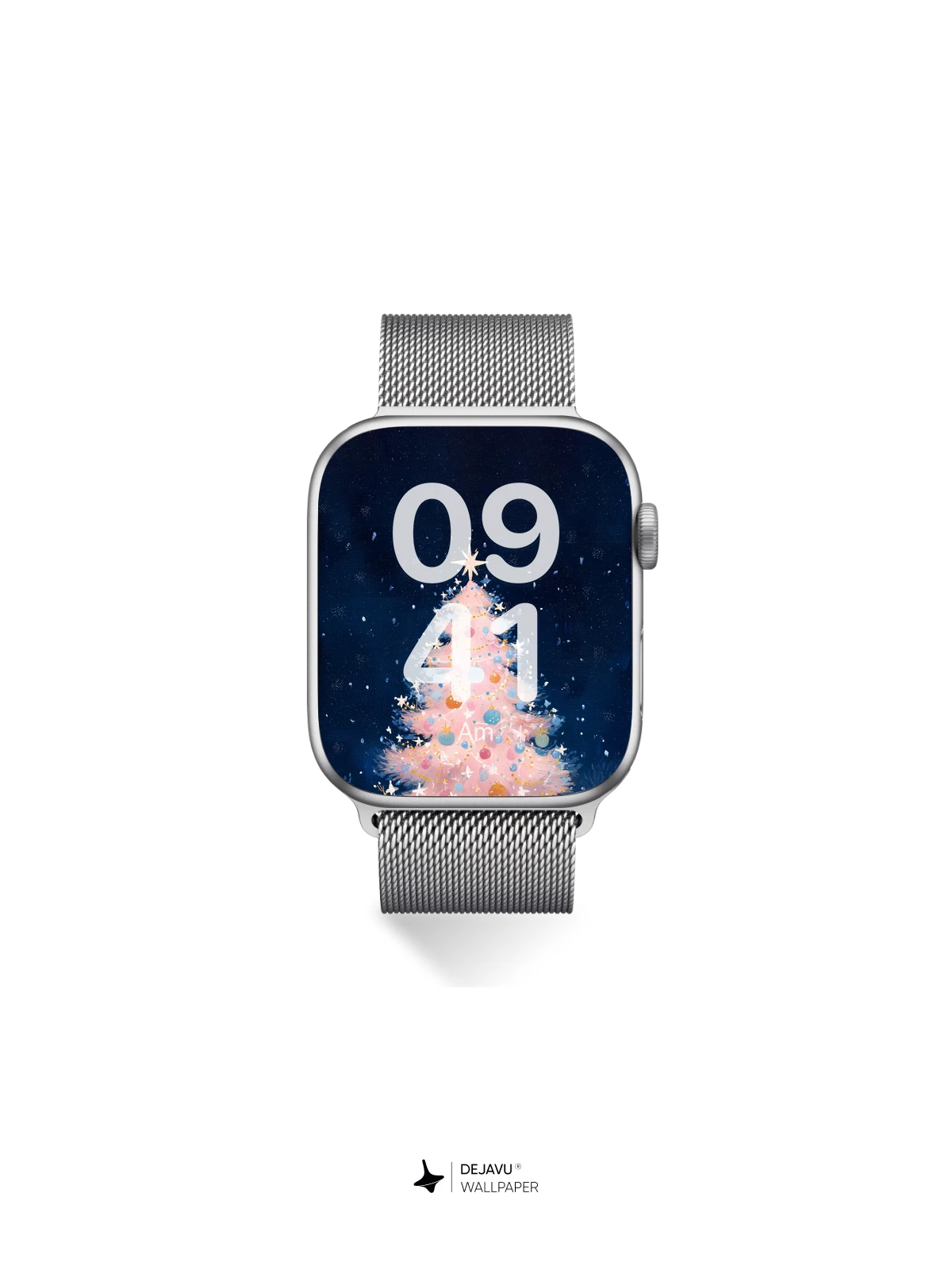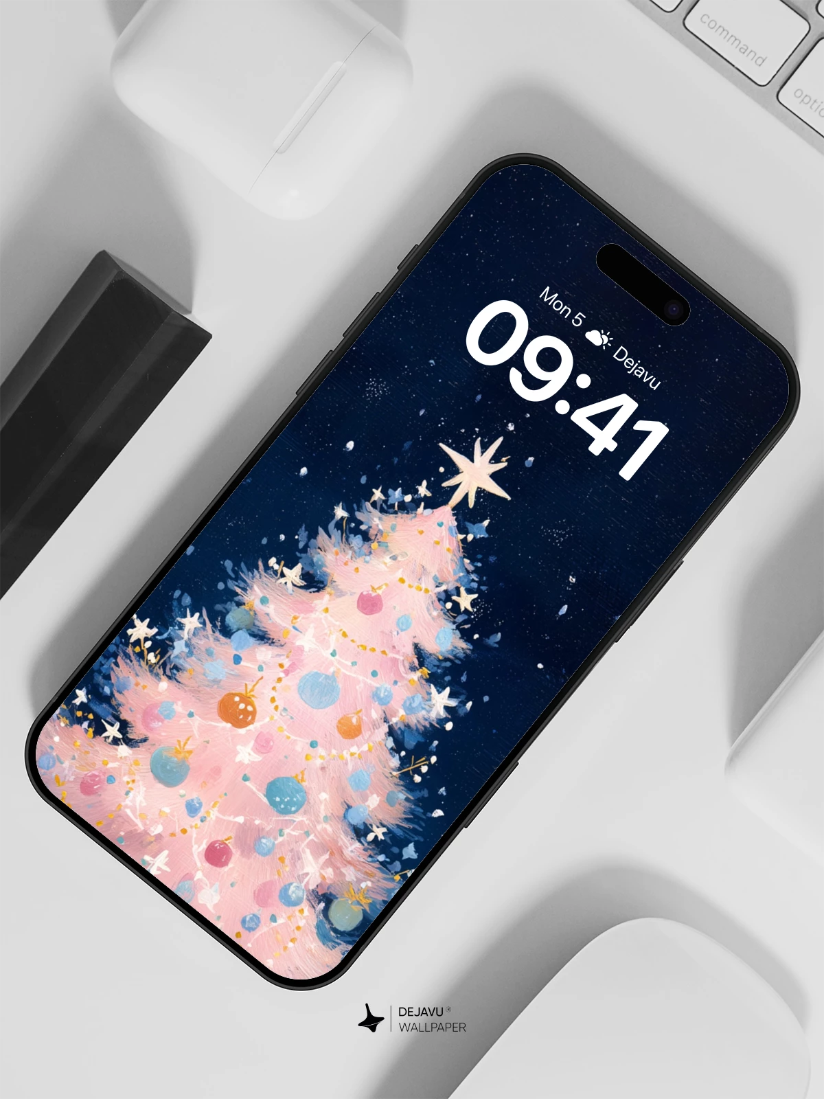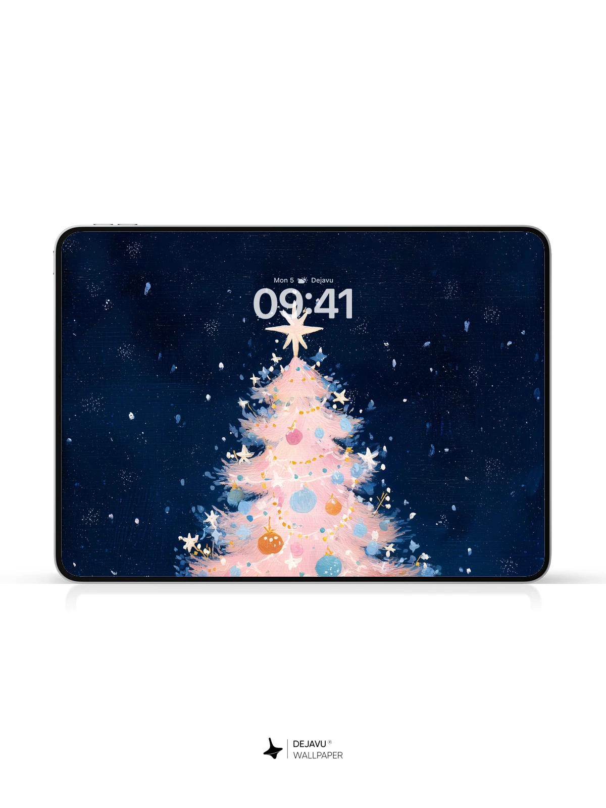 This enchanting illustration captures a whimsical pink Christmas tree illuminated by soft lights and festive baubles, standing alone in a snowy winter landscape beneath a deep blue, star-dusted sky. The dreamlike scene evokes warmth, wonder, and holiday magic, making it an ideal high-resolution 8K wallpaper for iPhone, Android, or any mobile device. Its delicate brushwork and ethereal glow bring a touch of fairy-tale charm to your screen.
