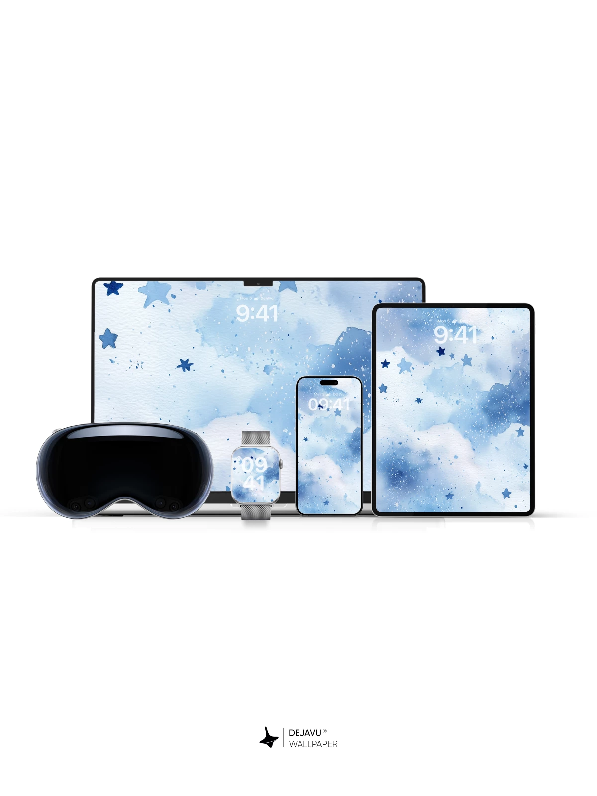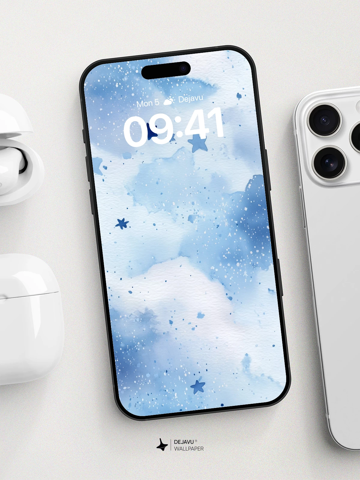 This enchanting 8K wallpaper captures a serene night sky painted in delicate watercolor strokes, where fluffy clouds drift beneath glowing stars and subtle snowflakes. Inspired by dreamlike celestial scenes, it evokes a sense of quiet magic and peaceful introspection—ideal for iPhone, Android, and tablet screens seeking a touch of cosmic beauty. Perfect for those who love tranquil, artistic backgrounds that elevate the everyday.