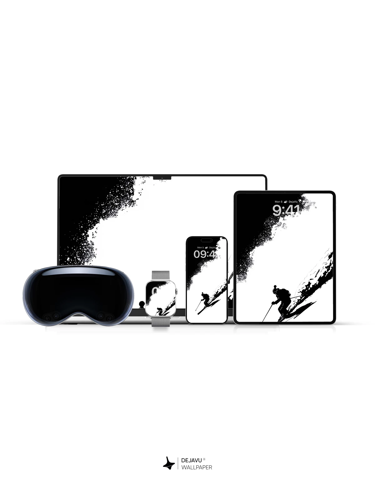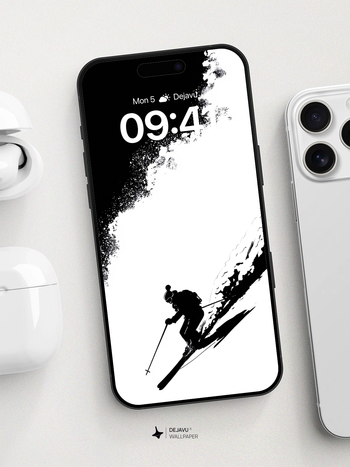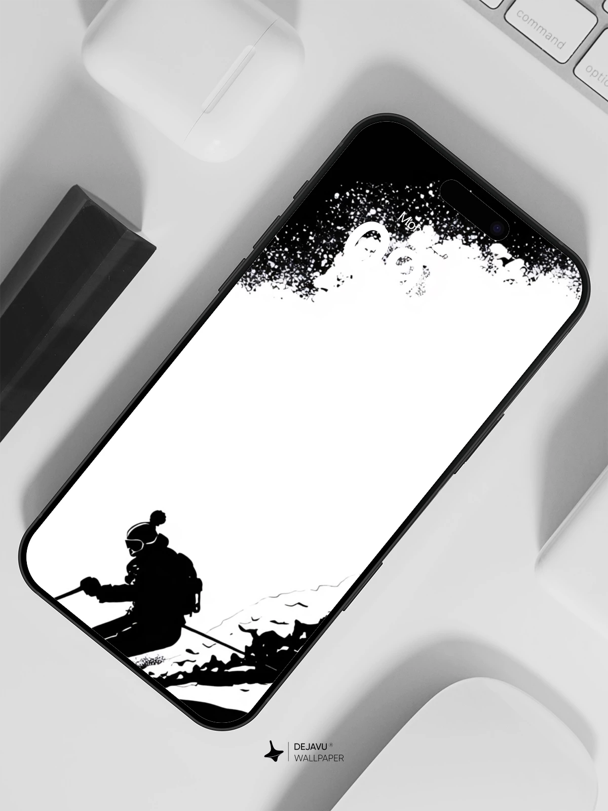 This captivating 8K wallpaper features a dynamic silhouette of a skier descending a slope, captured mid-action with expressive brushstroke-like textures that evoke speed and freedom. The high-contrast black-and-white design creates a powerful visual impact, blending modern minimalism with the raw energy of winter sports. Inspired by graphic art traditions, the composition uses negative space and motion trails to convey intensity and grace. Ideal for iPhone, Android, or tablet screens, this wallpaper brings a sense of adventure and artistic flair to your device’s home screen.