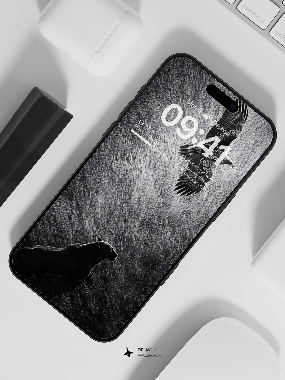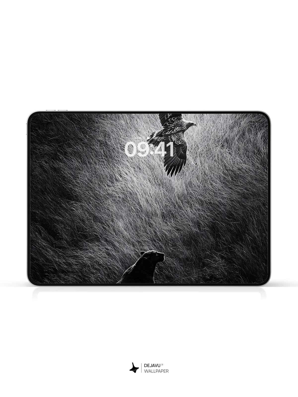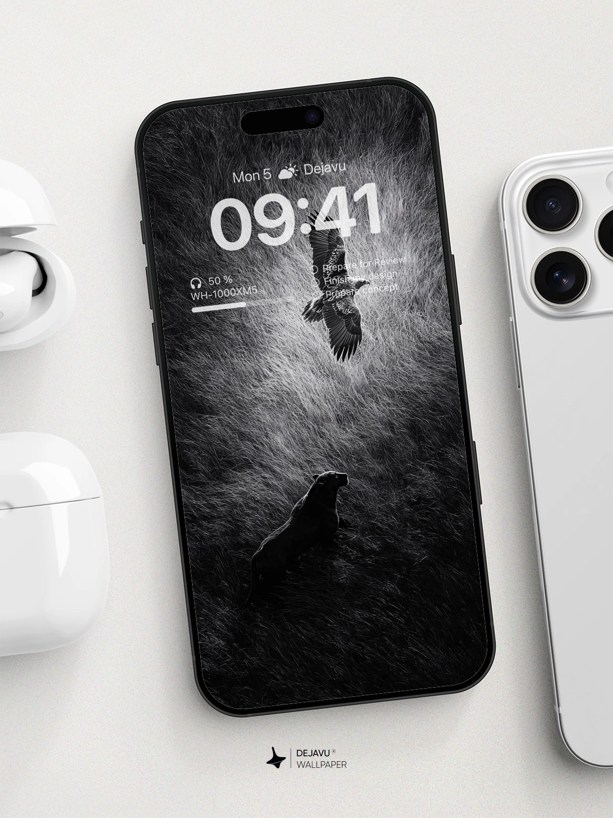 Immerse yourself in the captivating scene of an eagle gracefully soaring above a vigilant wolf, all set against a dramatic backdrop of light and shadow. This 8K wallpaper, ideal for both iPhone and Android devices, evokes a sense of timeless beauty and primal connection to nature. The high-contrast black-and-white design accentuates the intricate details of the eagle’s wings and the wolf’s stance, creating a visually striking and emotionally resonant image. Whether displayed on a phone, tablet, or desktop, this artwork transforms any screen into a portal to a world where strength, freedom, and mysticism converge.