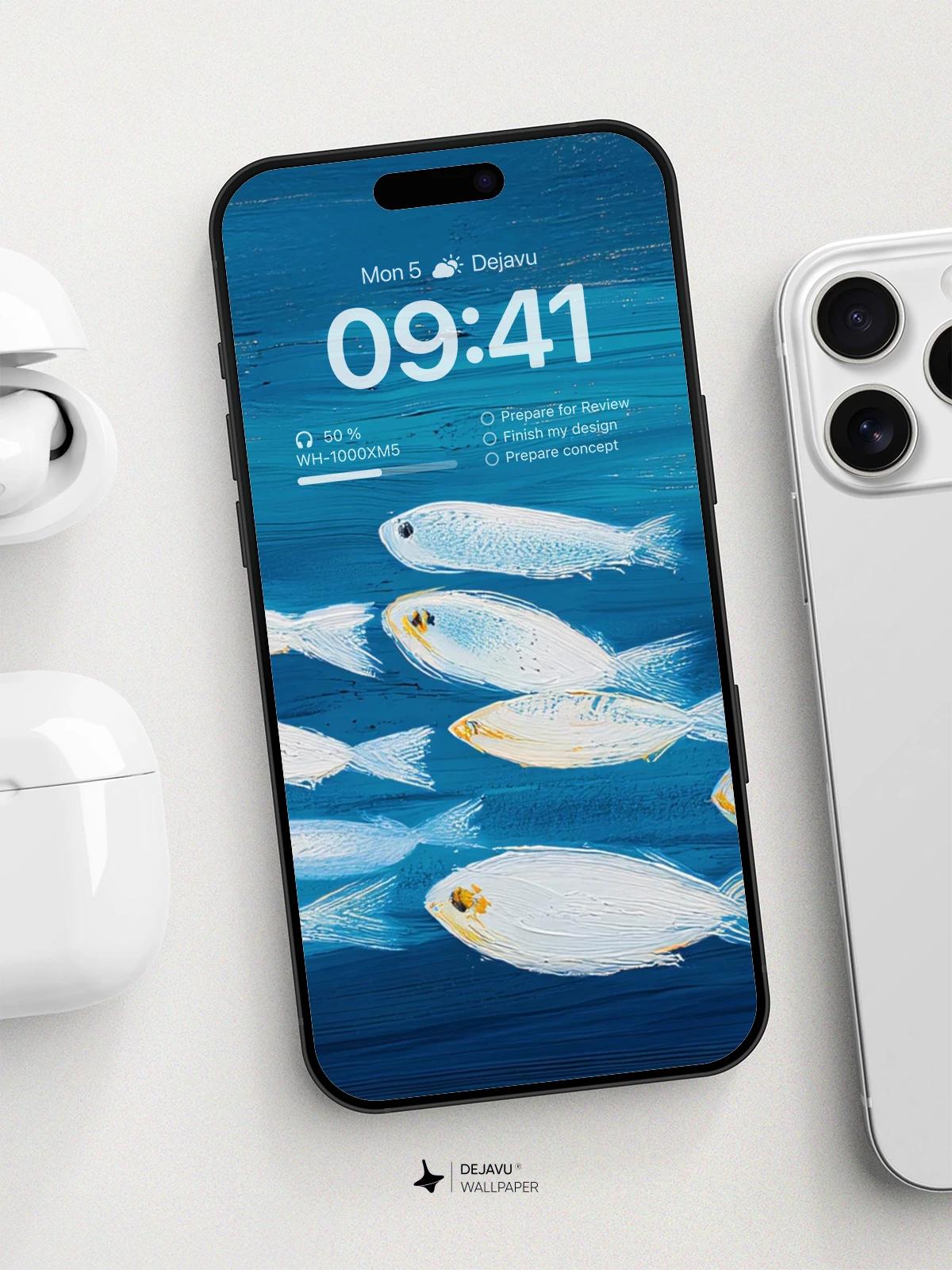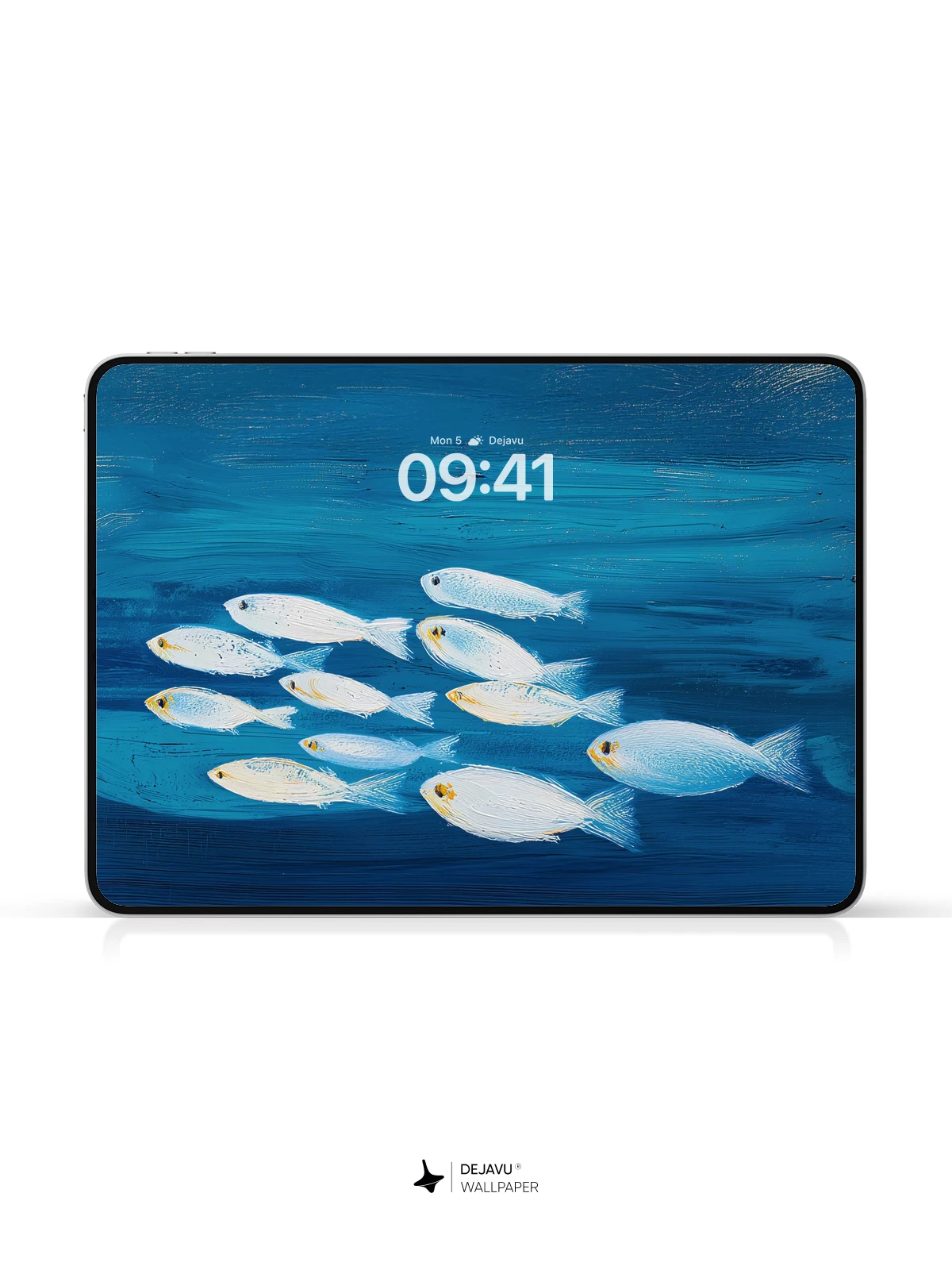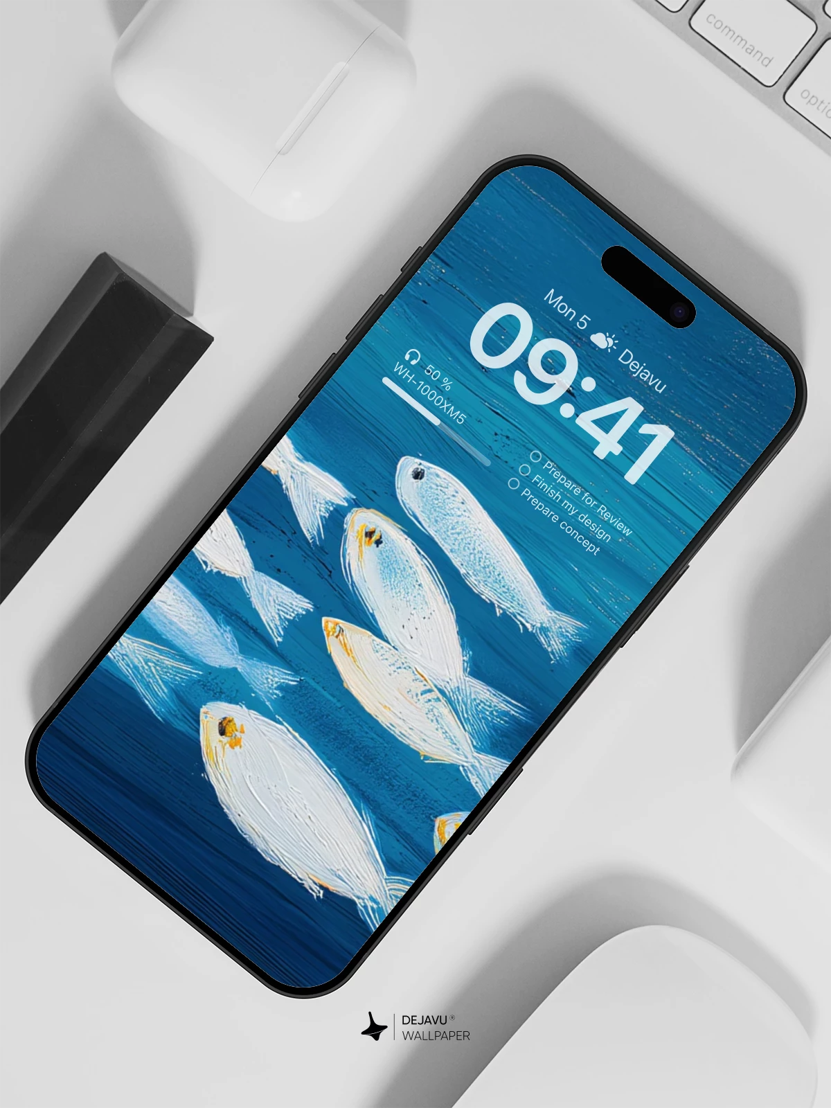 Immerse yourself in the tranquil beauty of the ‘Elegant Fish Swarm Wallpaper 8K,’ an exquisite digital artwork ideal for your iPhone. This visually stunning piece captures a school of fish gliding through deep blue waters, evoking a sense of peace and harmony. The minimalist yet detailed design highlights the fluid motion and unity of the fish, making it a captivating choice for anyone seeking a calming aesthetic. Whether you’re using an iPhone or Android, this wallpaper effortlessly enhances your device’s screen, transforming it into a portal to an underwater paradise. Perfect for those who appreciate nature-inspired art, this 8K resolution image ensures crisp, vivid visuals that bring the serene ocean scene to life, providing a daily dose of tranquility.