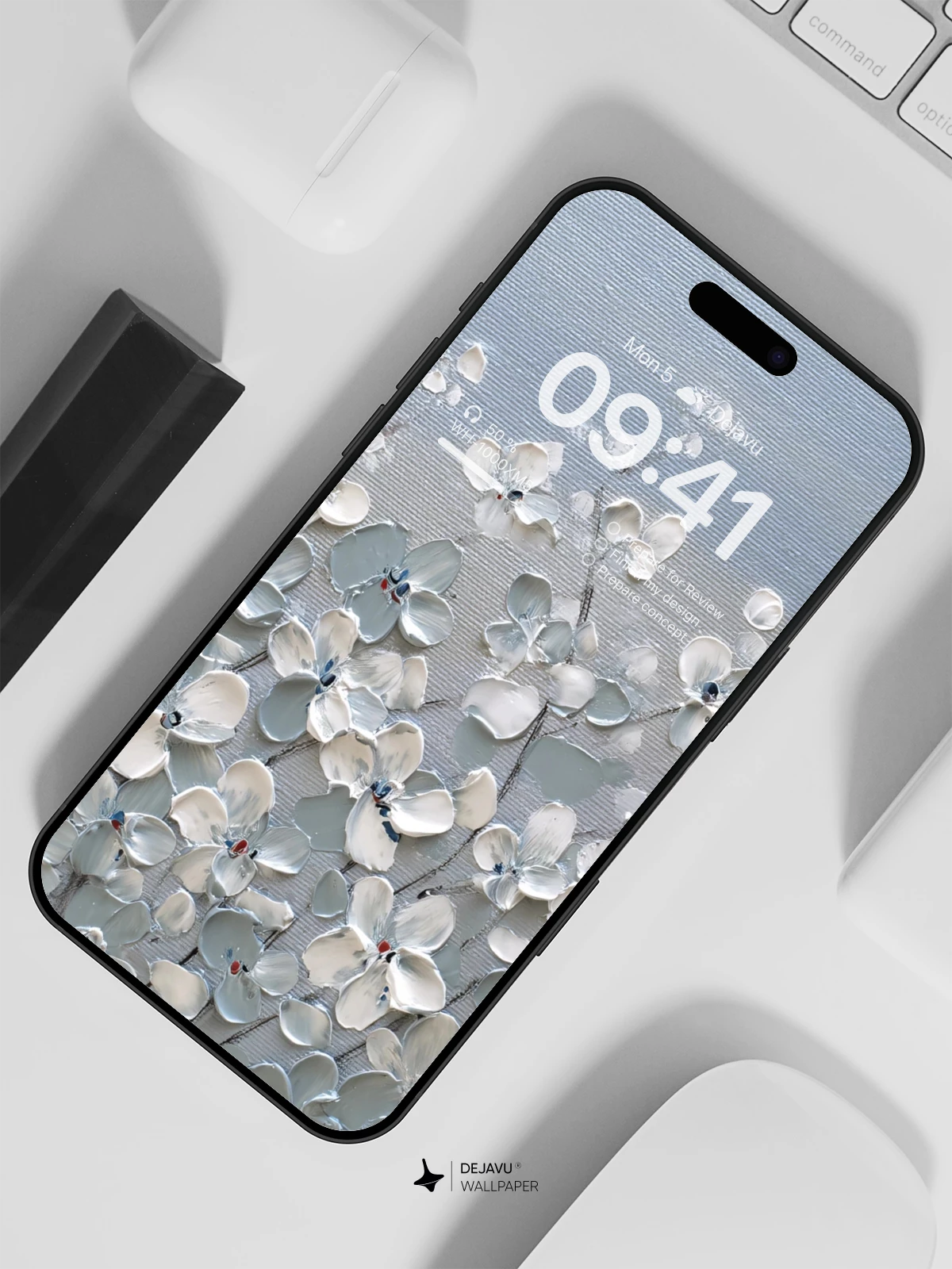 Immerse yourself in the tranquil elegance of this 8K floral wallpaper, ideal for your iPhone or Android. The delicate white flowers, accentuated with subtle red details, evoke a sense of calm and timeless beauty, making it a perfect backdrop for your device.