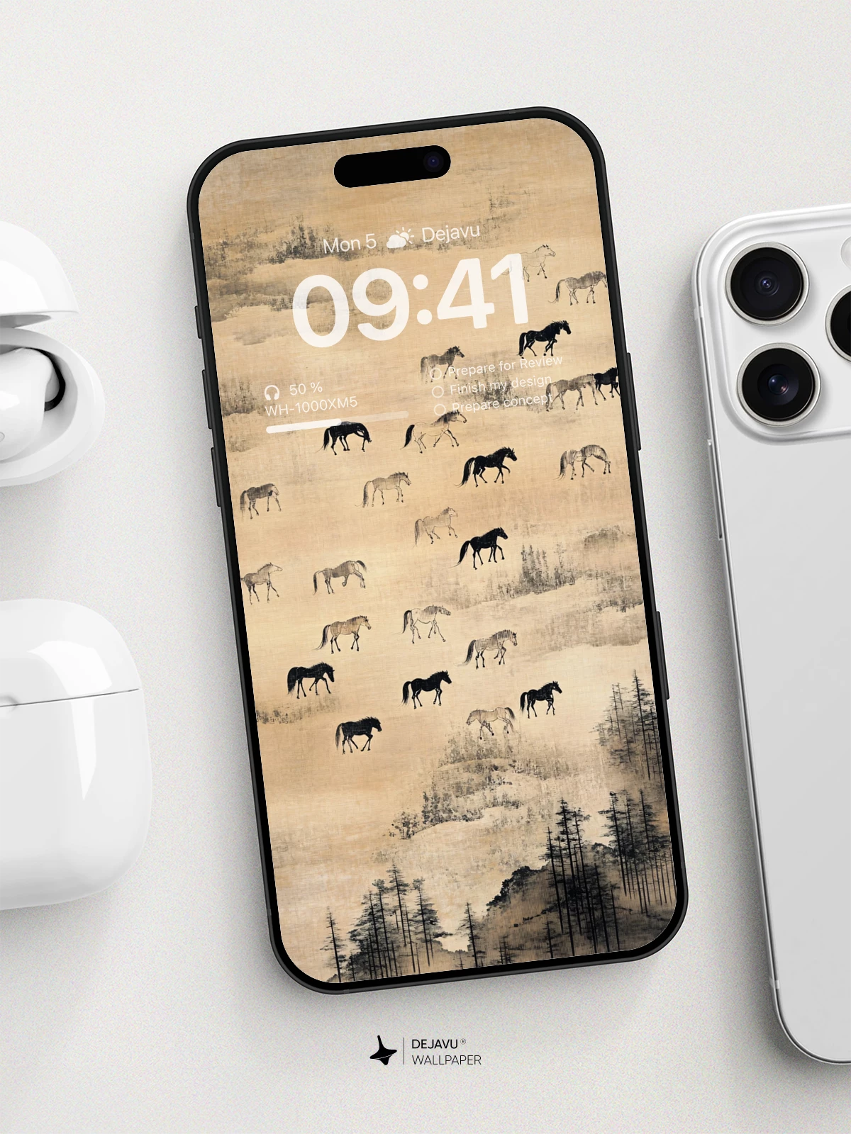 Immerse yourself in the tranquil elegance of ‘Elegant Horse Herd Wallpaper 8K,’ a masterpiece that captures the graceful movement of horses across a misty landscape. Inspired by traditional East Asian art, the image blends harmonious lines with soft, natural tones, evoking a sense of peace and timelessness. This high-resolution 8K wallpaper is ideal for enhancing the visual appeal of your iPhone, Android, or tablet, bringing a touch of artistic sophistication to your device. Whether you seek inspiration from nature or appreciate fine art, this wallpaper promises a calming and aesthetically pleasing experience, making it a perfect choice for those who value both beauty and clarity in their digital displays.