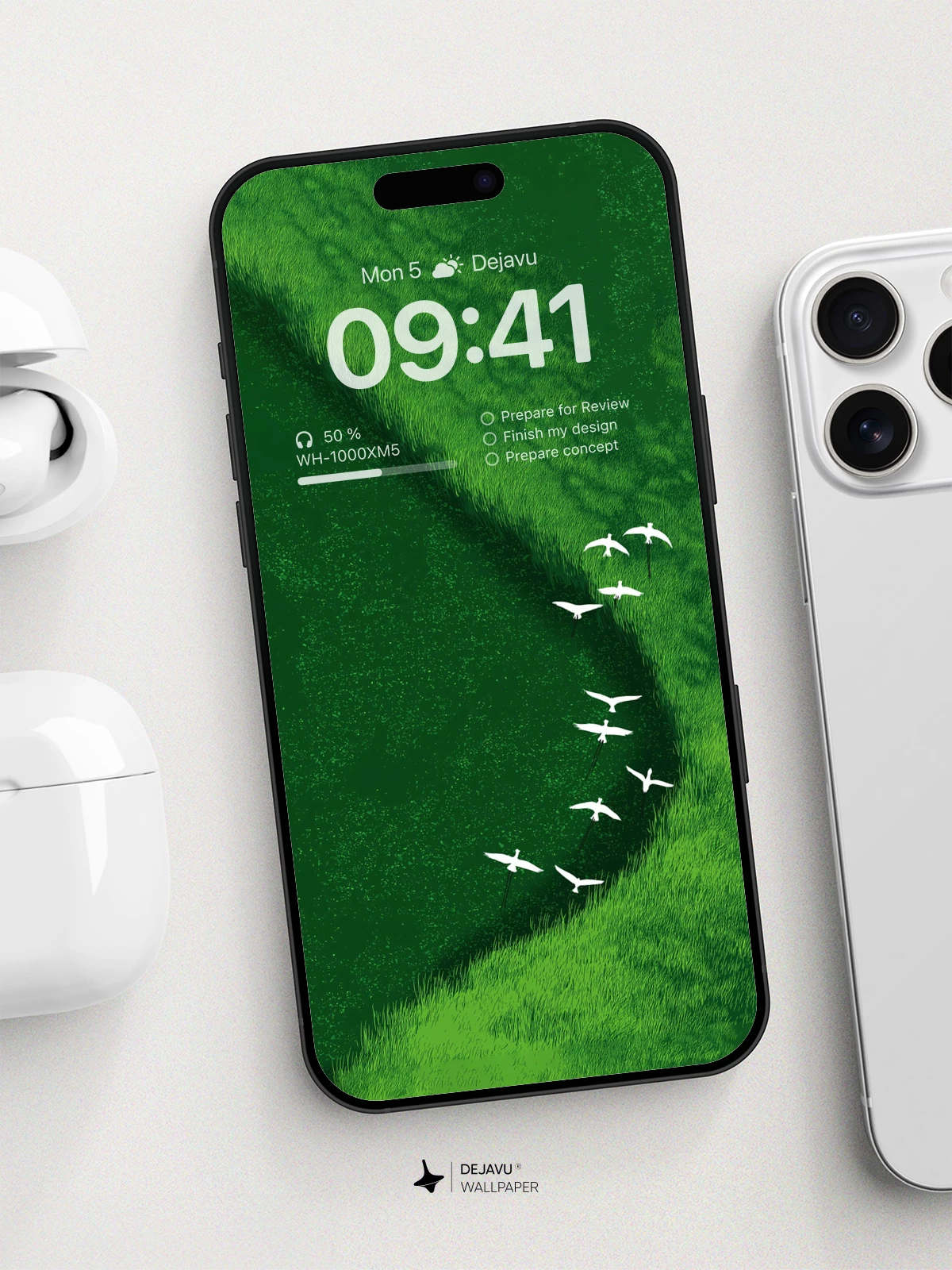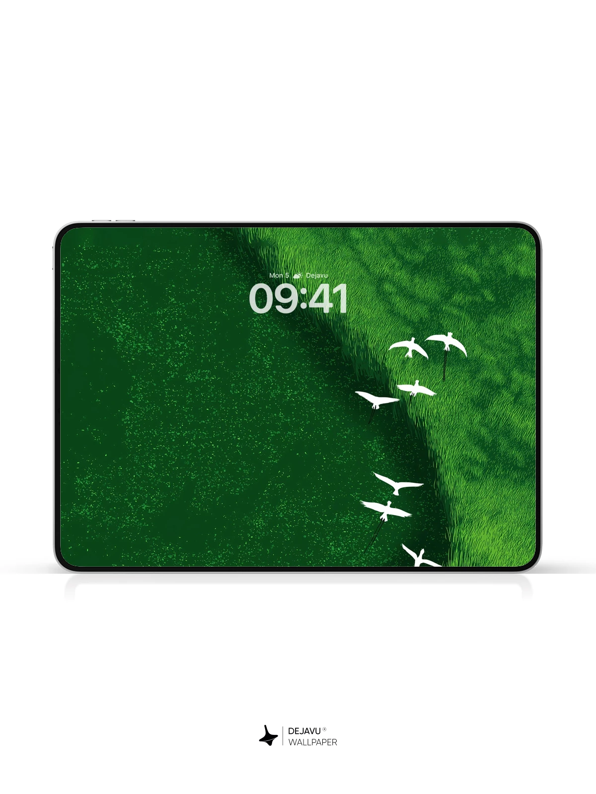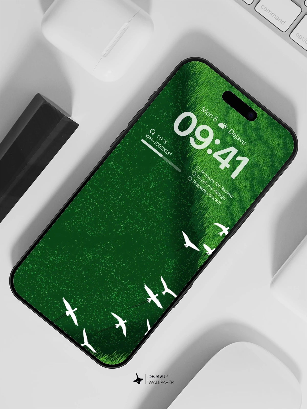 This stunning 8K wallpaper captures the tranquil beauty of nature with a flock of white birds flying in formation across a vibrant green landscape. The contrast between the crisp white silhouettes and the rich, textured greens evokes a sense of peace and harmony, ideal for enhancing any mobile device screen. Whether on an iPhone or Android phone, this nature-inspired design brings timeless elegance and visual serenity to your home screen or lock screen.