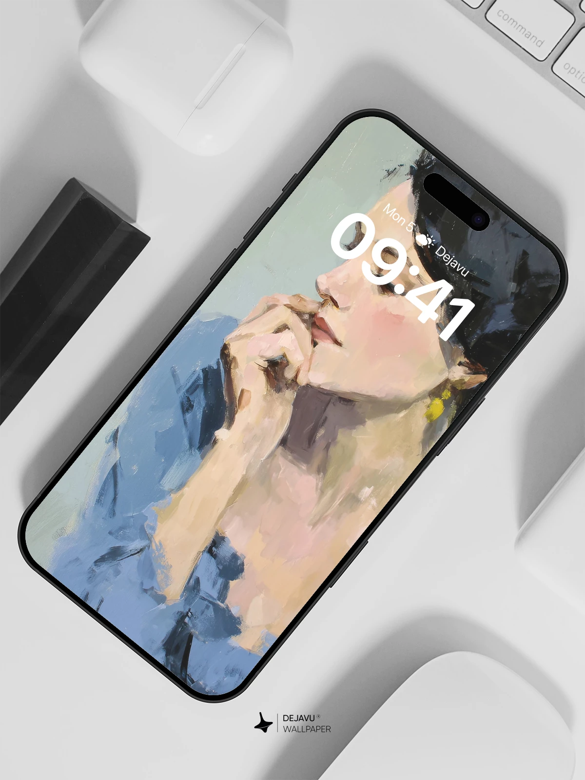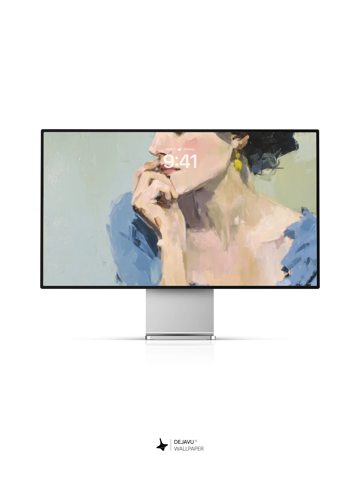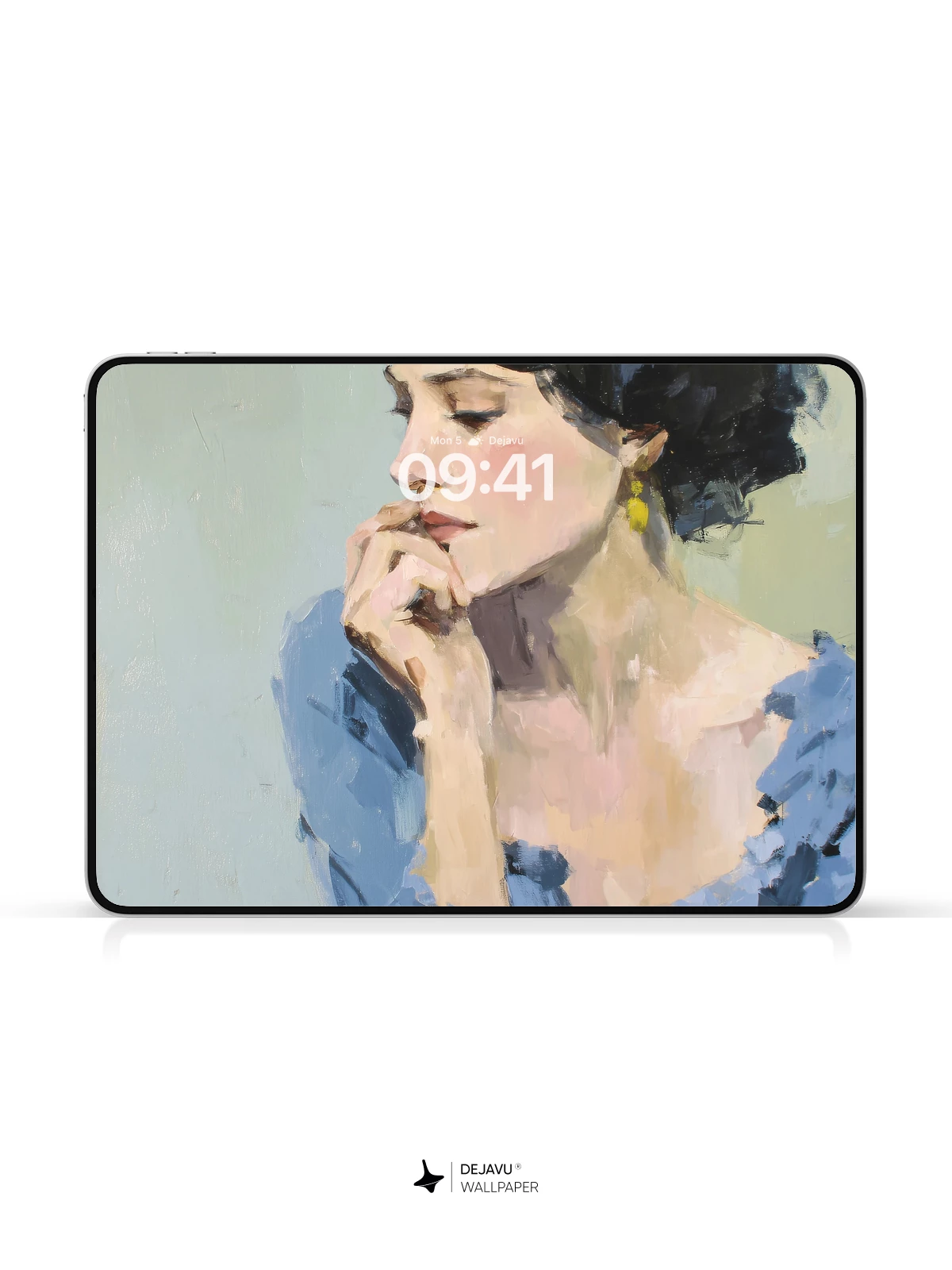This evocative portrait captures a moment of quiet contemplation, rendered in expressive brushwork reminiscent of modern impressionism. The subject, adorned in a flowing blue dress with delicate golden earrings, exudes timeless grace against a muted pastel backdrop. Ideal for those who appreciate artistic depth and emotional resonance, this 8K wallpaper brings a touch of refined beauty to any iPhone, Android, or tablet screen.
