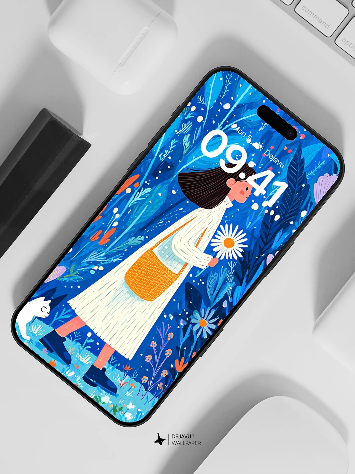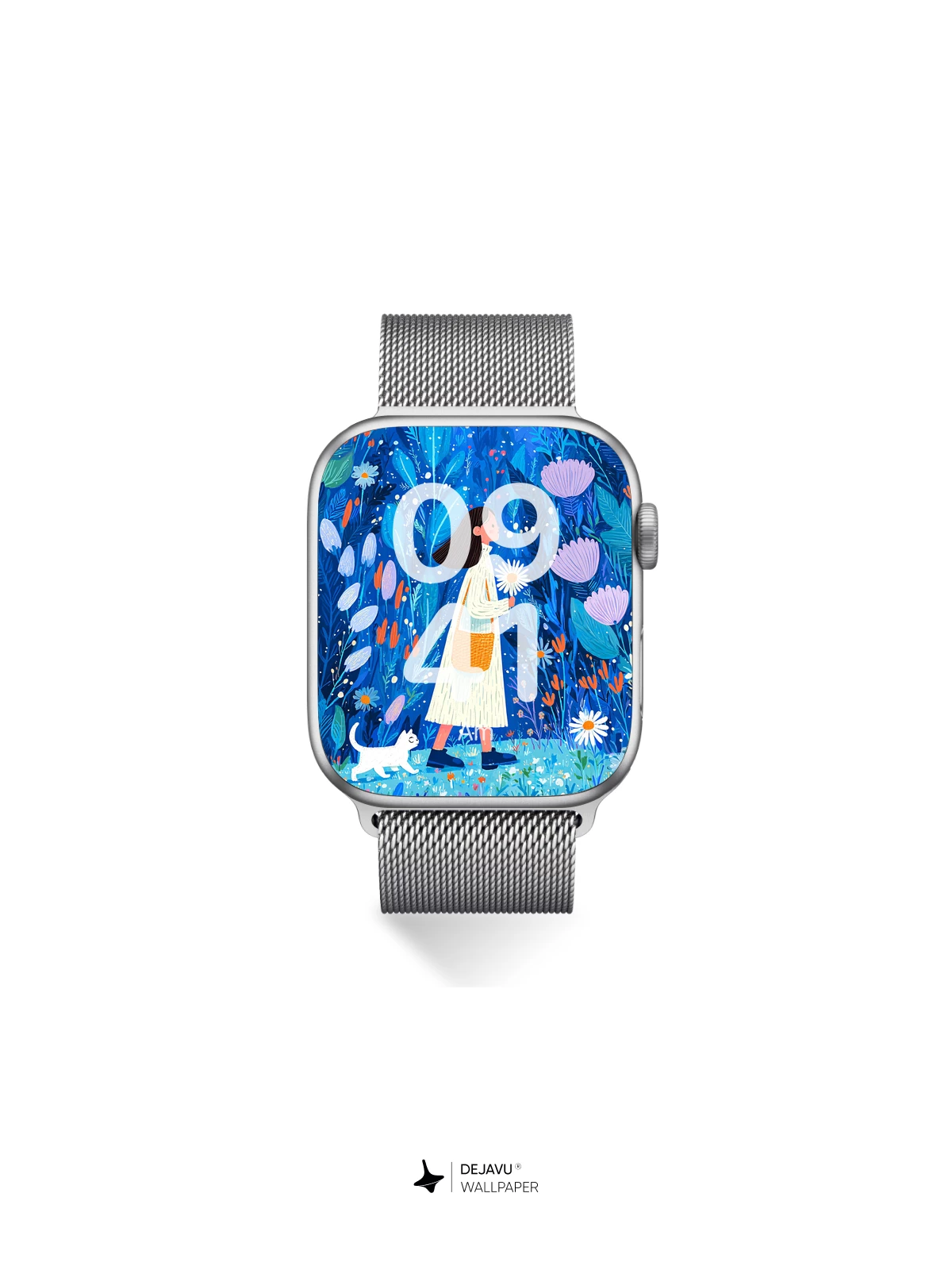 Step into a magical realm where nature sings in shades of deep blue and electric violet. This 8K wallpaper captures a serene moment of a young woman strolling through an enchanted garden, accompanied by a curious white cat. Inspired by whimsical illustration styles, the scene blends delicate florals, surreal lighting, and dreamlike depth—ideal for iPhone, Android, or tablet users seeking a tranquil yet vibrant background. Let every glance transport you to a world of wonder and quiet beauty.”.