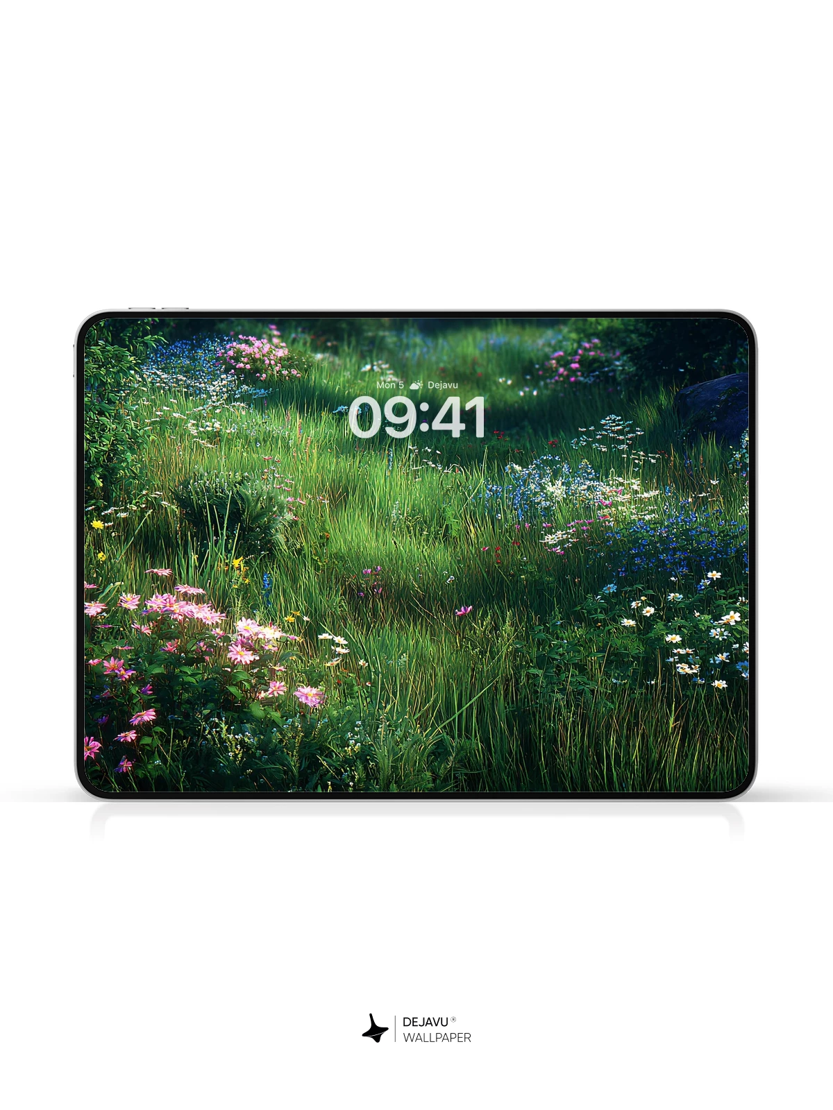 This stunning 8K wallpaper captures a lush, vibrant meadow where sunlight filters through trees, illuminating a tapestry of pink, purple, and white wildflowers. The rich textures of grass and blooms evoke a sense of quiet wonder and natural harmony, making it ideal for iPhone, Android, or tablet backgrounds. Immerse yourself in the tranquility of untouched wilderness with every glance.