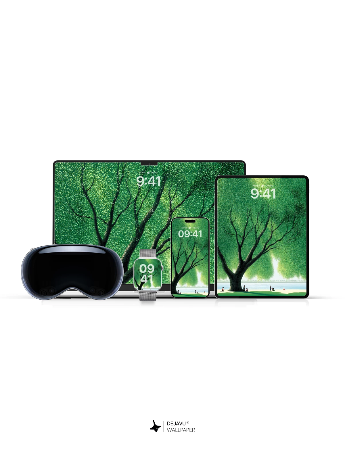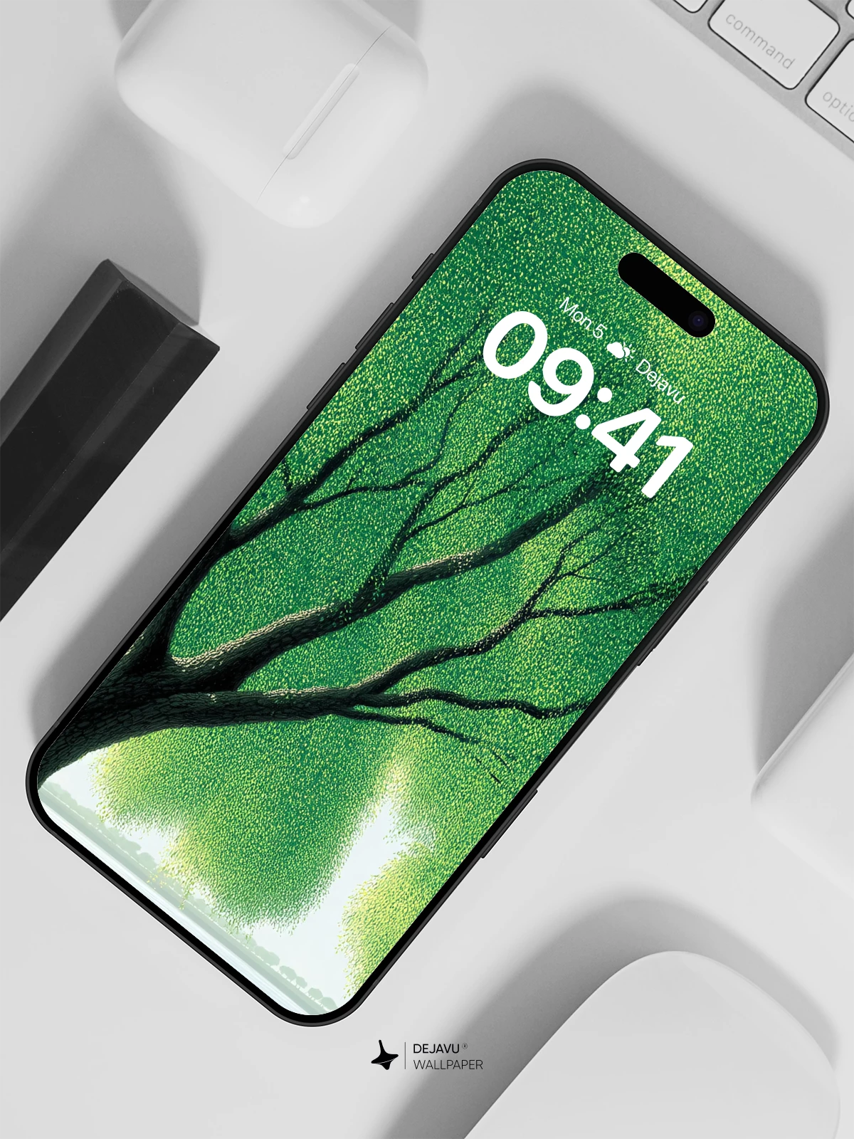 Beneath a colossal tree whose branches stretch into a glowing emerald canopy, families gather in quiet harmony beside a serene lake. This surreal and poetic landscape evokes a sense of timeless peace, blending natural wonder with ethereal beauty. Perfect as an 8K wallpaper for iPhone, Android, or tablets, the image captures the magic of nature in high-definition clarity, making it ideal for those who seek serenity and visual depth on their mobile devices.