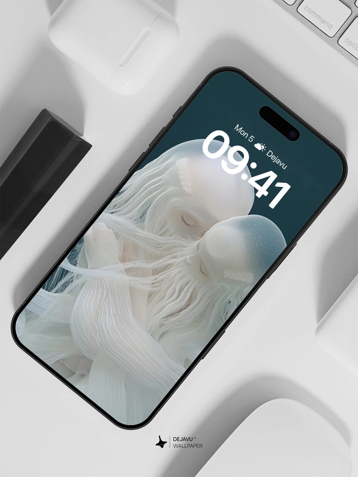 This mesmerizing 8K wallpaper captures a tender, surreal moment between two translucent jellyfish-like figures, their flowing tendrils merging like whispers in the deep sea. Inspired by ethereal marine life and modern digital sculpture, the artwork evokes a sense of quiet intimacy and timeless connection. With its delicate textures and hypnotic motion, it’s ideal for iPhone, Android, and tablet screens seeking a touch of poetic wonder. Perfect for those who appreciate dreamlike aesthetics and immersive visual storytelling.