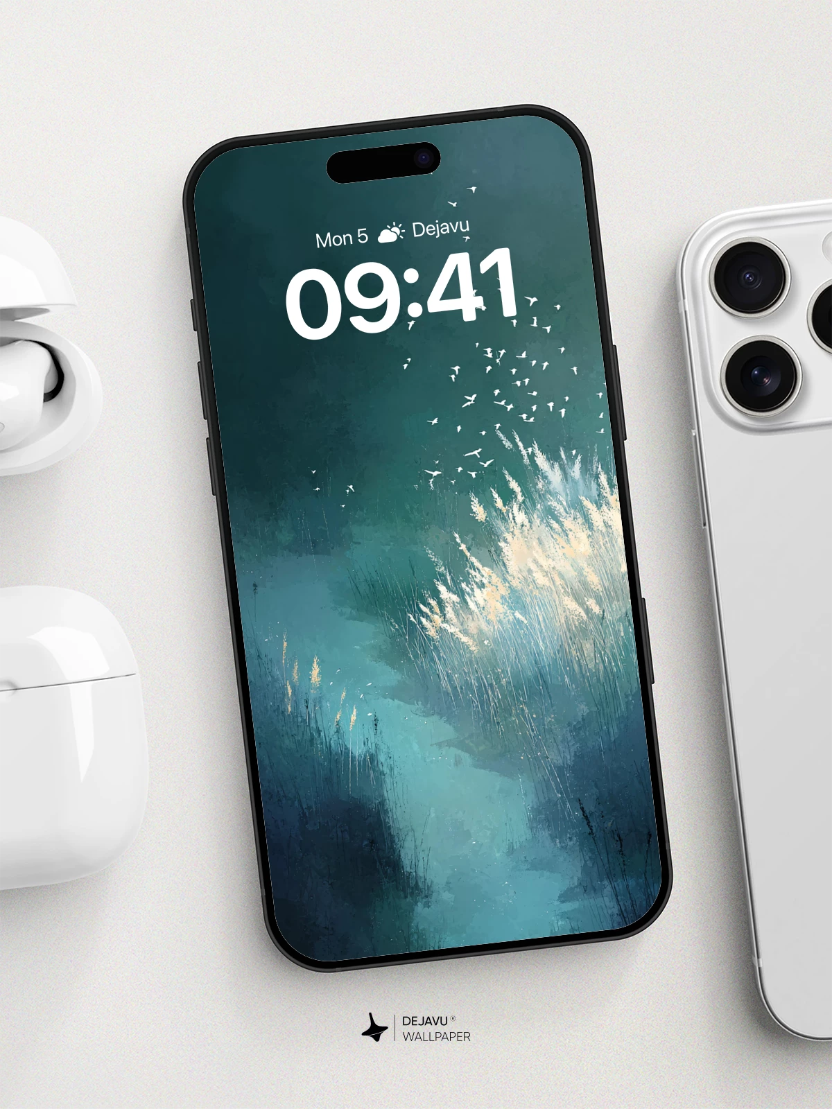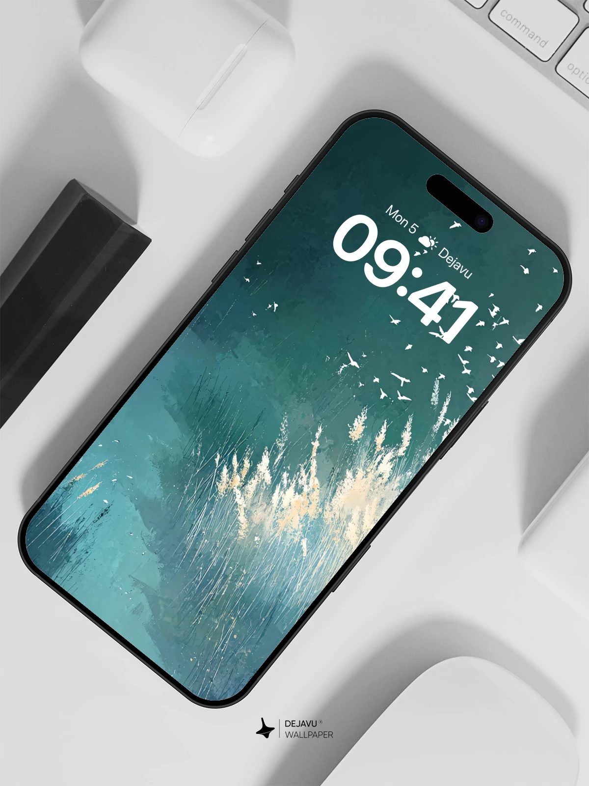 This 8K wallpaper features a tranquil night path flanked by glowing grasses and a flock of birds soaring above. Its ethereal design creates a calming atmosphere, perfect for enhancing your iPhone, Android, or tablet screen.