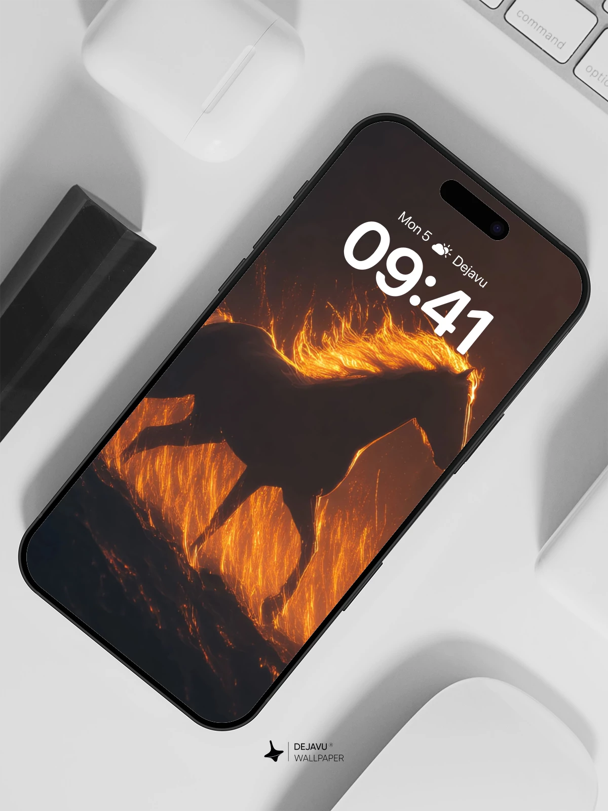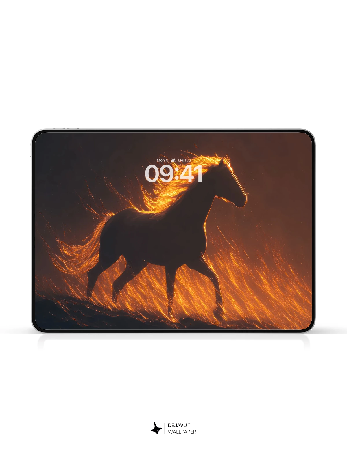 This stunning 8K wallpaper captures a powerful horse in mid-stride, its mane and tail ablaze with golden fire against a dark, dramatic sky. The surreal interplay of light and shadow evokes a sense of freedom and mysticism, making it an ideal choice for iPhone, Android, and tablet screens. With its dynamic composition and cinematic quality, this fiery silhouette transforms any device into a portal of imagination and elegance.