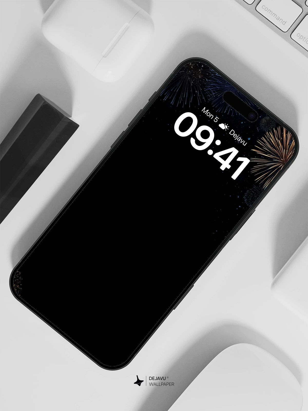 This 8K wallpaper features a breathtaking frame of colorful fireworks bursting across the corners of a deep black night sky, leaving a central space for text or personalization. The dynamic bursts of gold, red, blue, and purple create a celebratory and magical atmosphere, ideal for festive occasions or as a stylish background. Designed with high resolution for crisp detail on iPhone, Android, and tablets, it brings the brilliance of a real fireworks display to your device’s screen.