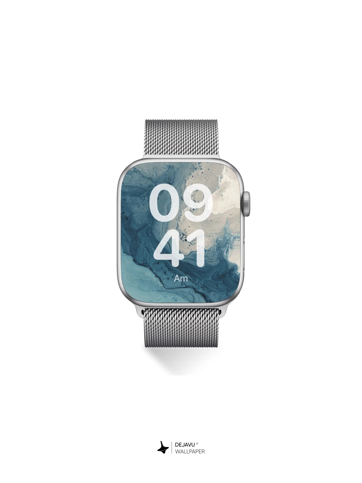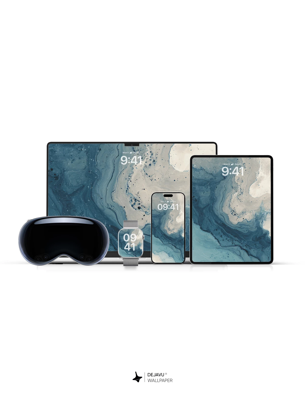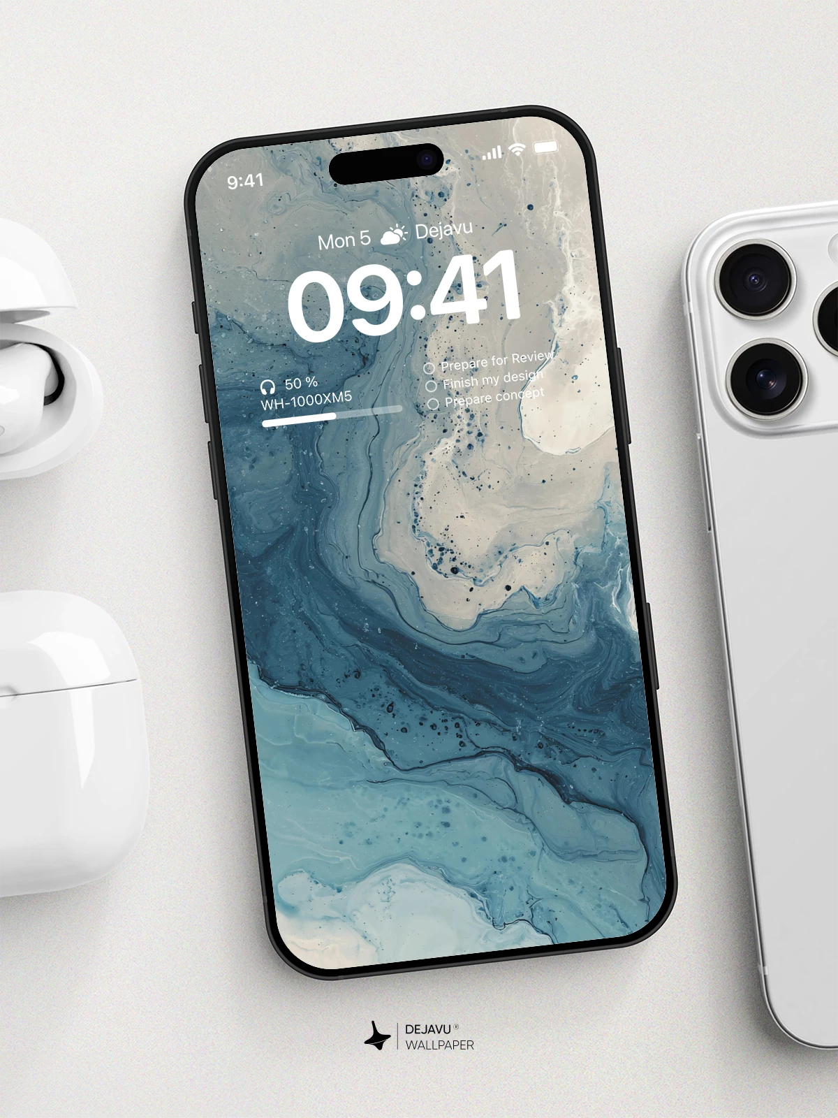 Deep and light blues swirl together with creamy whites, creating a dynamic yet calming abstract composition. The marble-inspired flow and scattered speckles evoke a sense of movement, perfect for adding a sophisticated touch to any device. Compatible with iPhone, Android, and tablets in crisp 8K resolution.