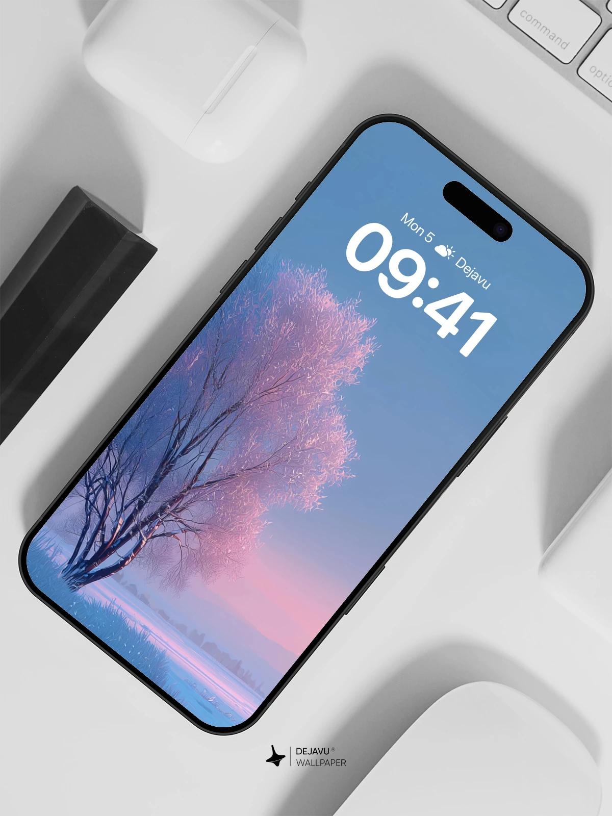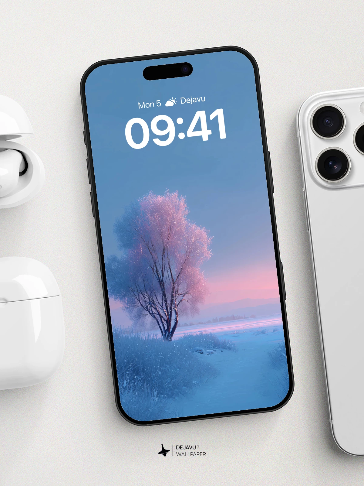 This ethereal winter scene captures a lone willow tree dusted in frost, its branches glowing with delicate pink hues under a tranquil sunrise sky. The icy field and distant horizon evoke a sense of quiet solitude and timeless beauty. Ideal as an 8K wallpaper for iPhone, Android, or any mobile device seeking poetic, nature-inspired design.